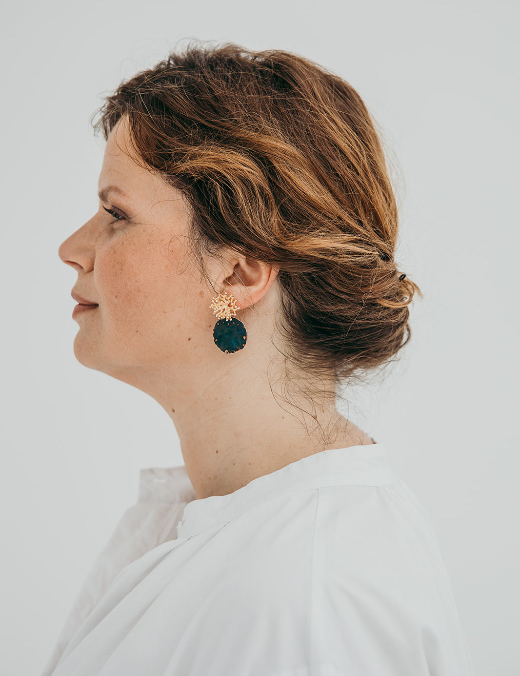 Espuma de Mar nasce das memórias das praias por onde passámos — o cheiro a sal, a areia que se cola aos pés, o brilho fugaz na crista da onda — e transforma esses instantes em brincos e colares que são pequenas lembranças vestíveis.