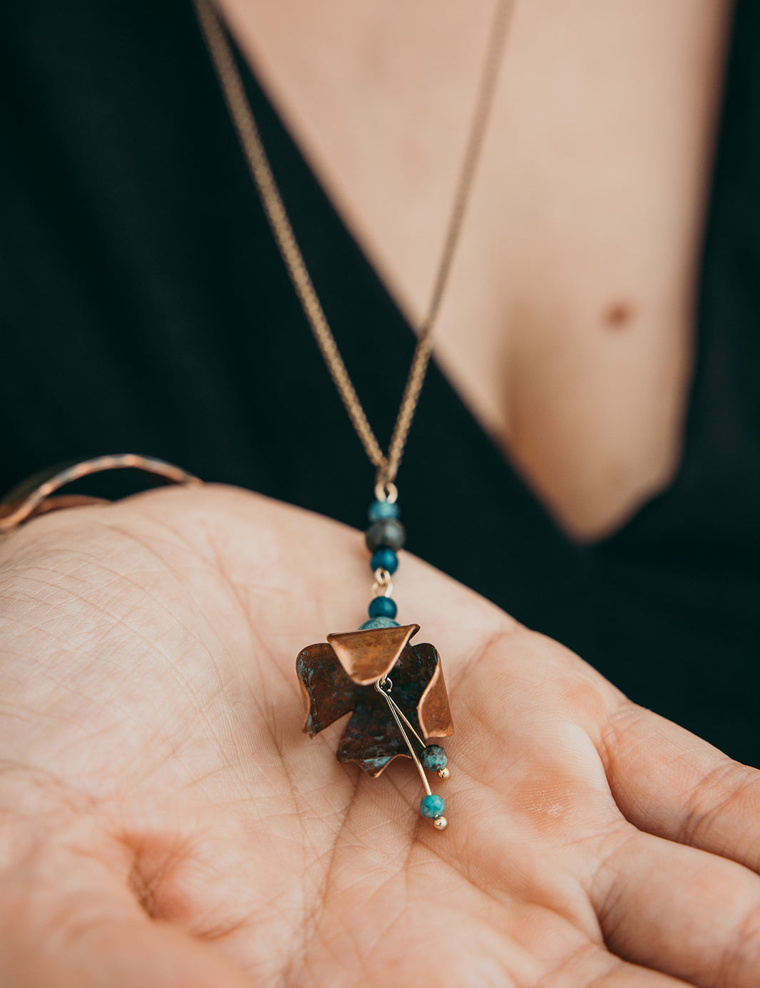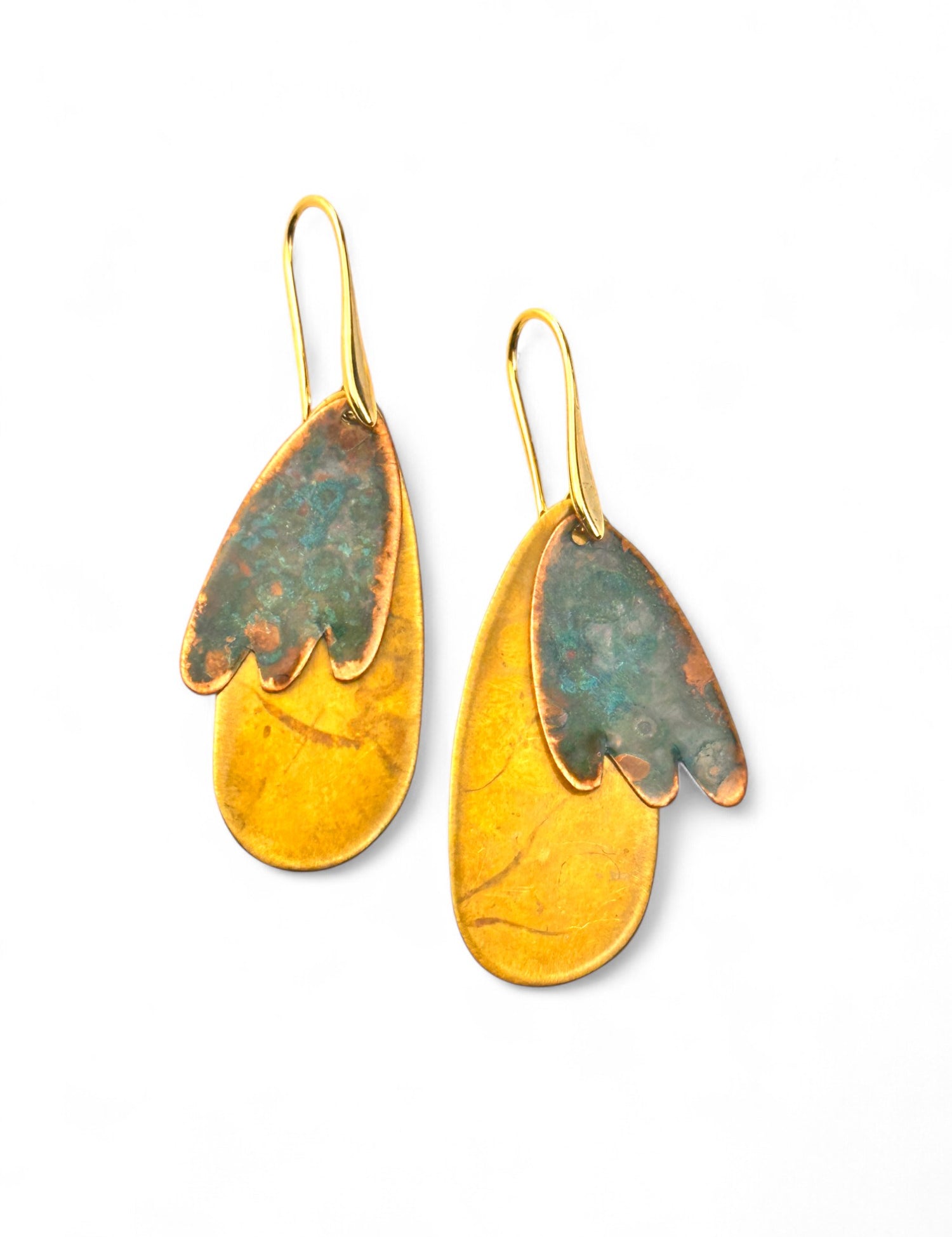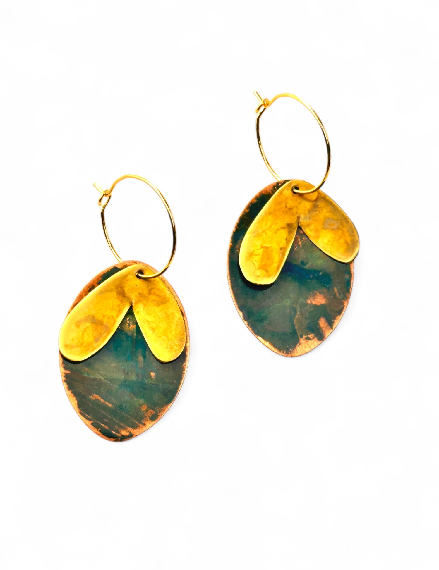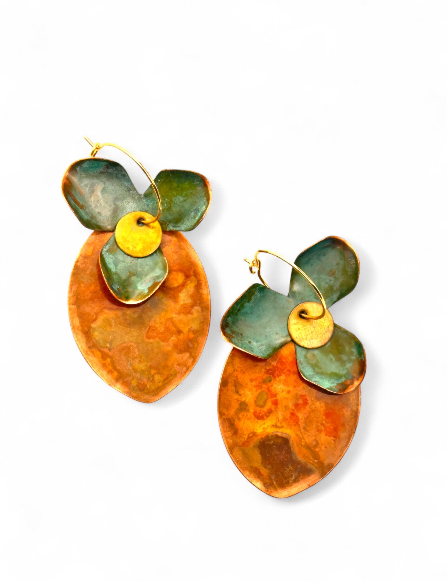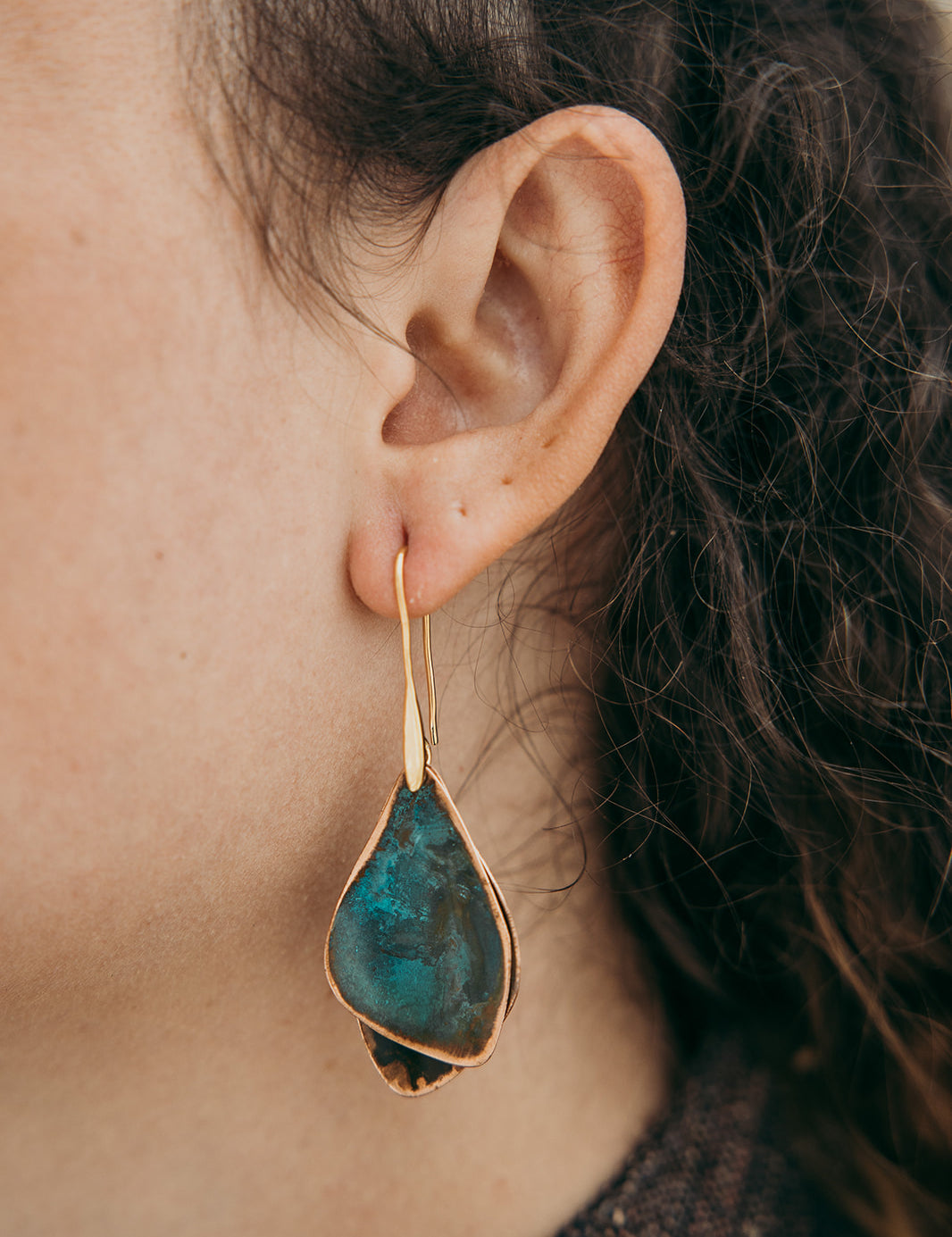 A coleção Petal da Marca Hoiko é uma homenagem delicada e poética às pétalas de uma flor, capturando a sua essência de fragilidade, beleza e movimento. Cada peça é artesanalmente recortada em cobre e latão oxidado, com a forma moldada manualmente, resultando em deformações e marcas que evidenciam a autenticidade e o carácter único do processo artesanal.