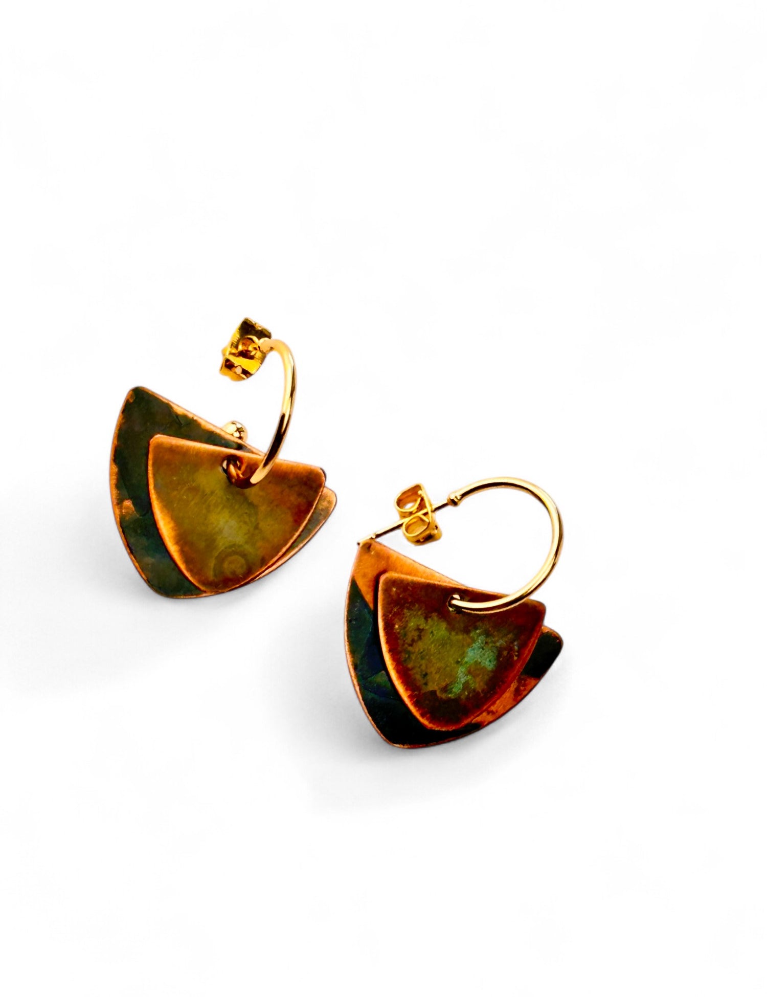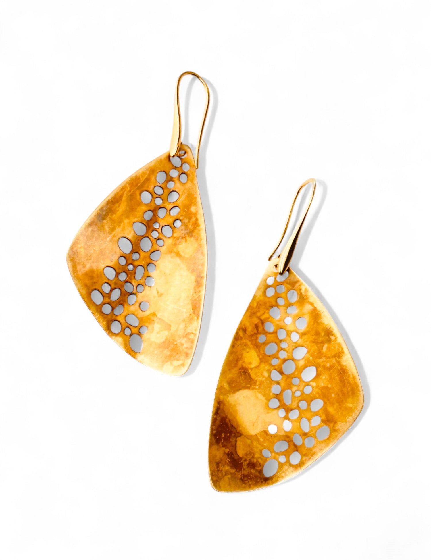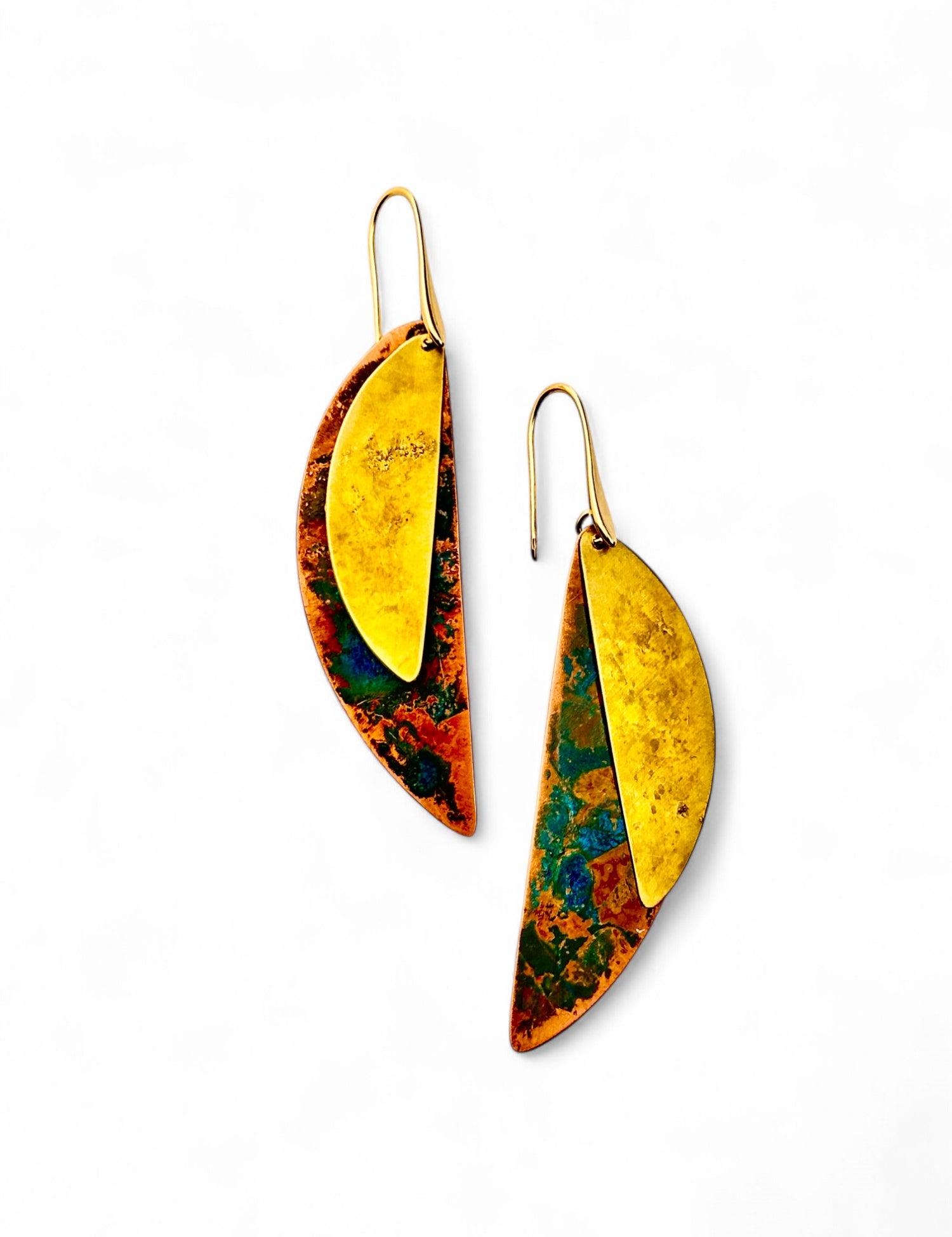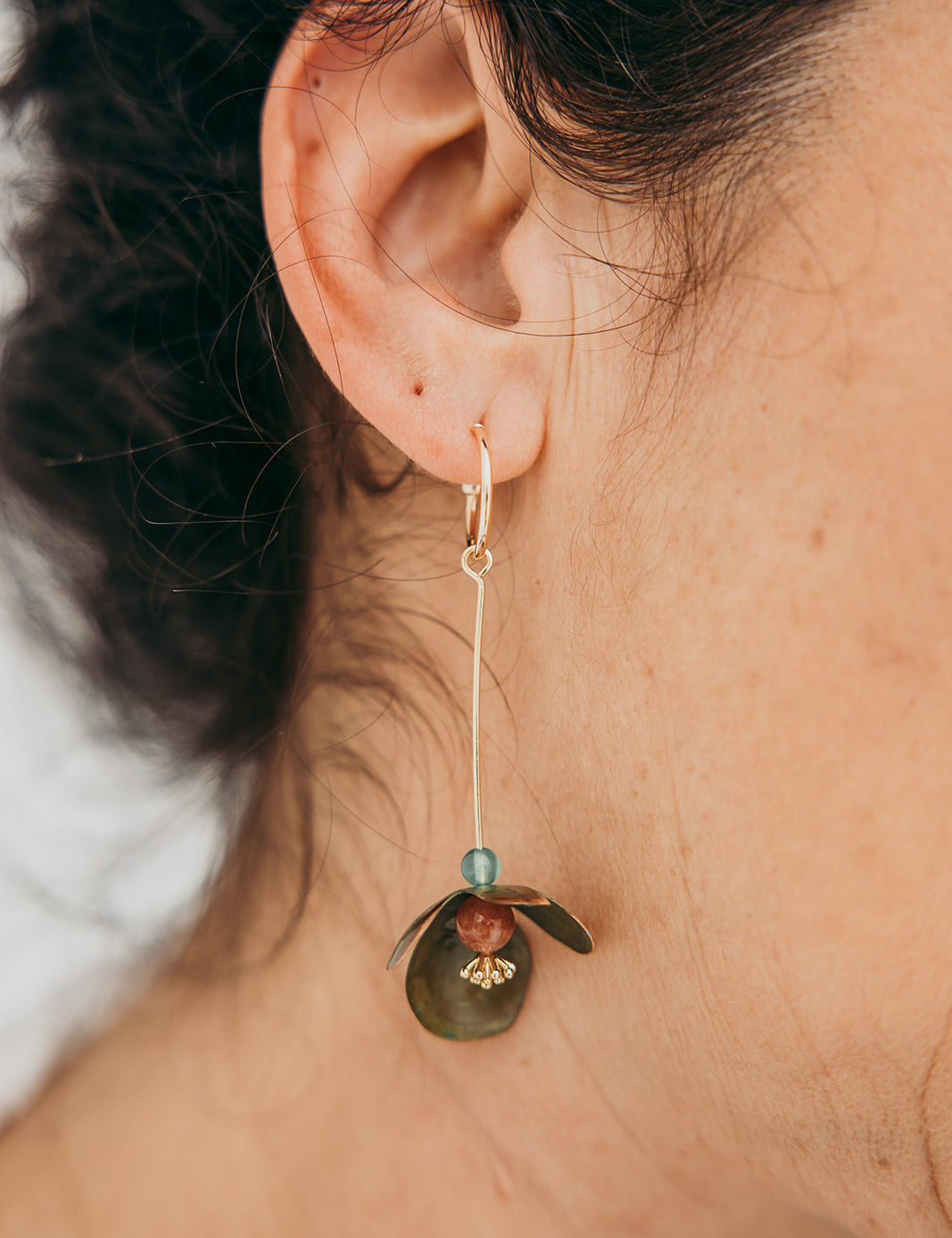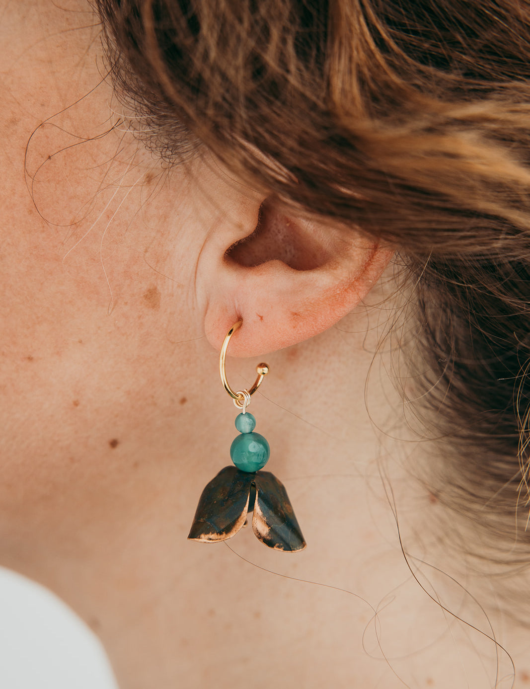 A coleção Petal da Marca Hoiko é uma homenagem delicada e poética às pétalas de uma flor, capturando a sua essência de fragilidade, beleza e movimento. Cada peça é artesanalmente recortada em cobre e latão oxidado, com a forma moldada manualmente, resultando em deformações e marcas que evidenciam a autenticidade e o carácter único do processo artesanal.