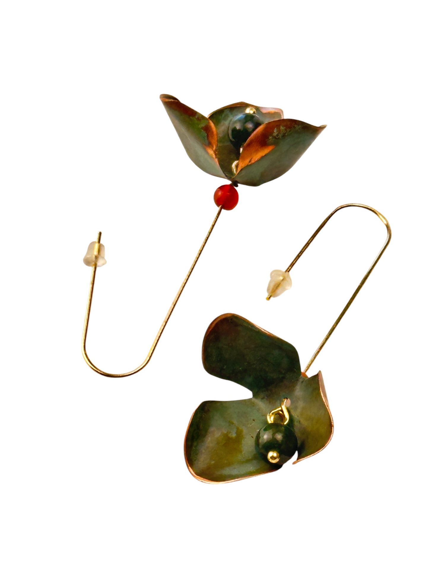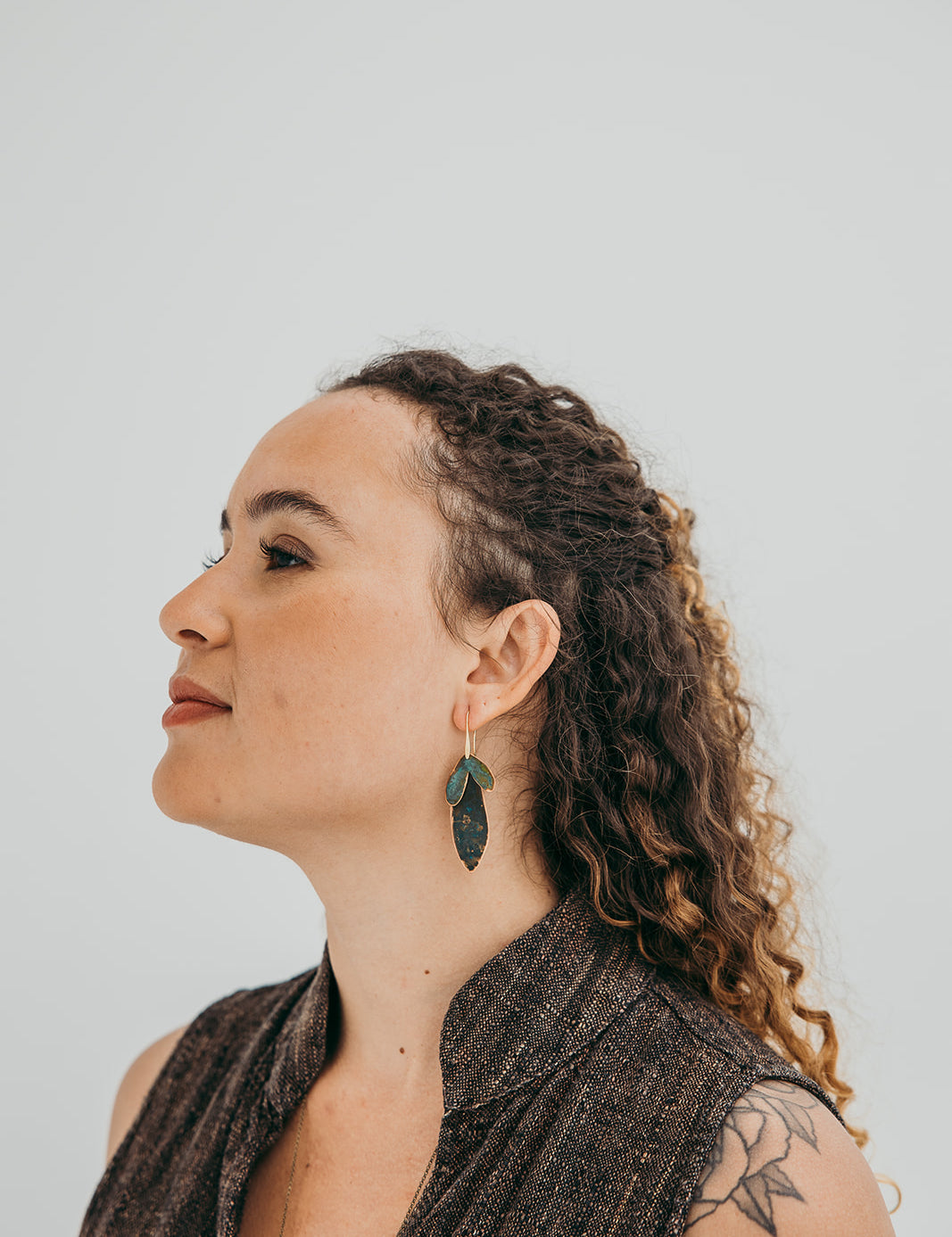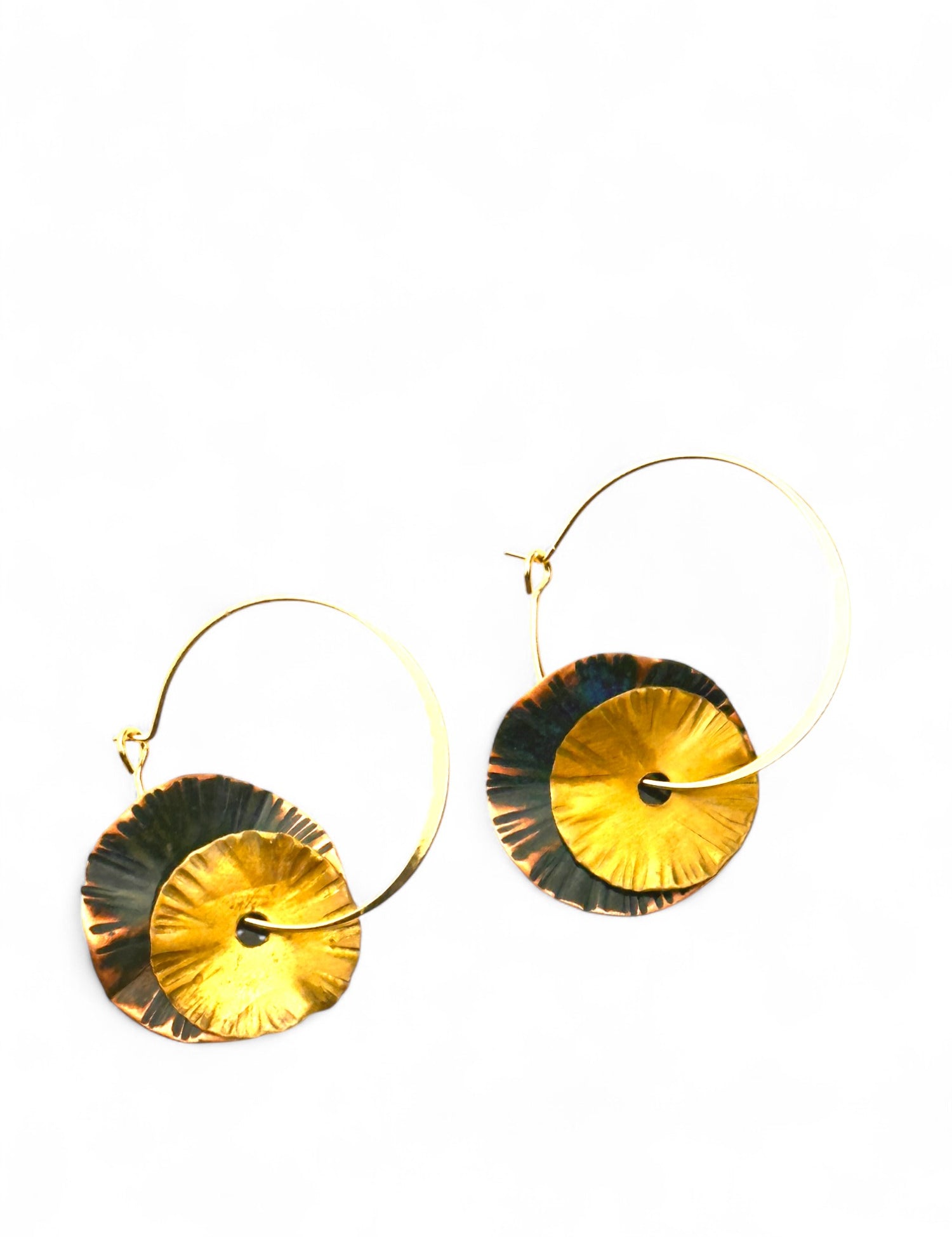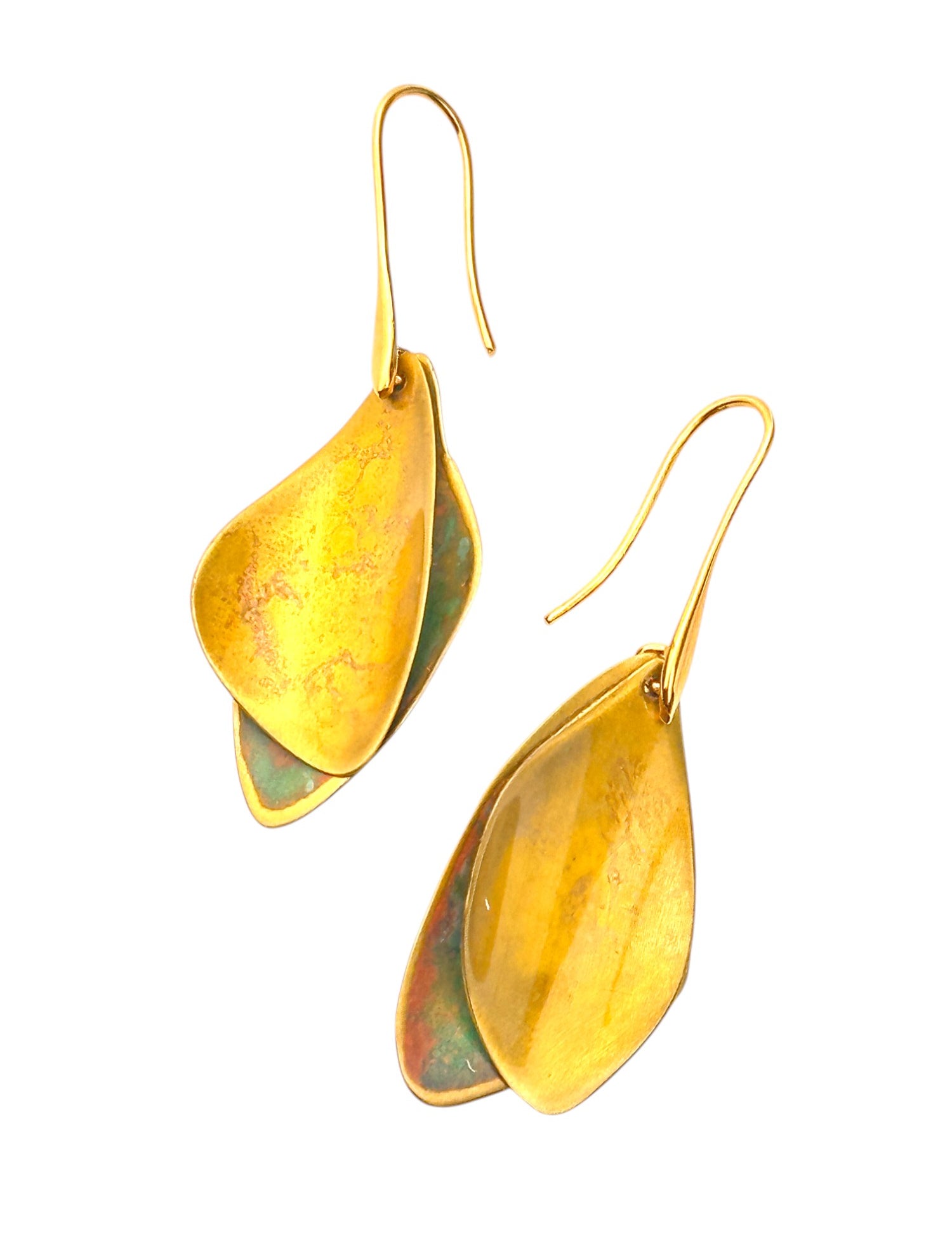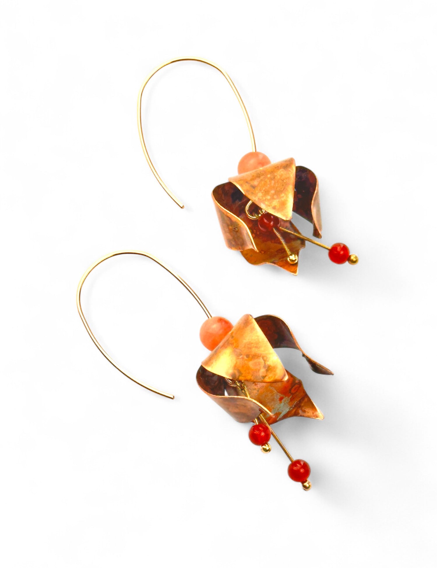 A coleção Petal da Marca Hoiko é uma homenagem delicada e poética às pétalas de uma flor, capturando a sua essência de fragilidade, beleza e movimento. Cada peça é artesanalmente recortada em cobre e latão oxidado, com a forma moldada manualmente, resultando em deformações e marcas que evidenciam a autenticidade e o carácter único do processo artesanal.