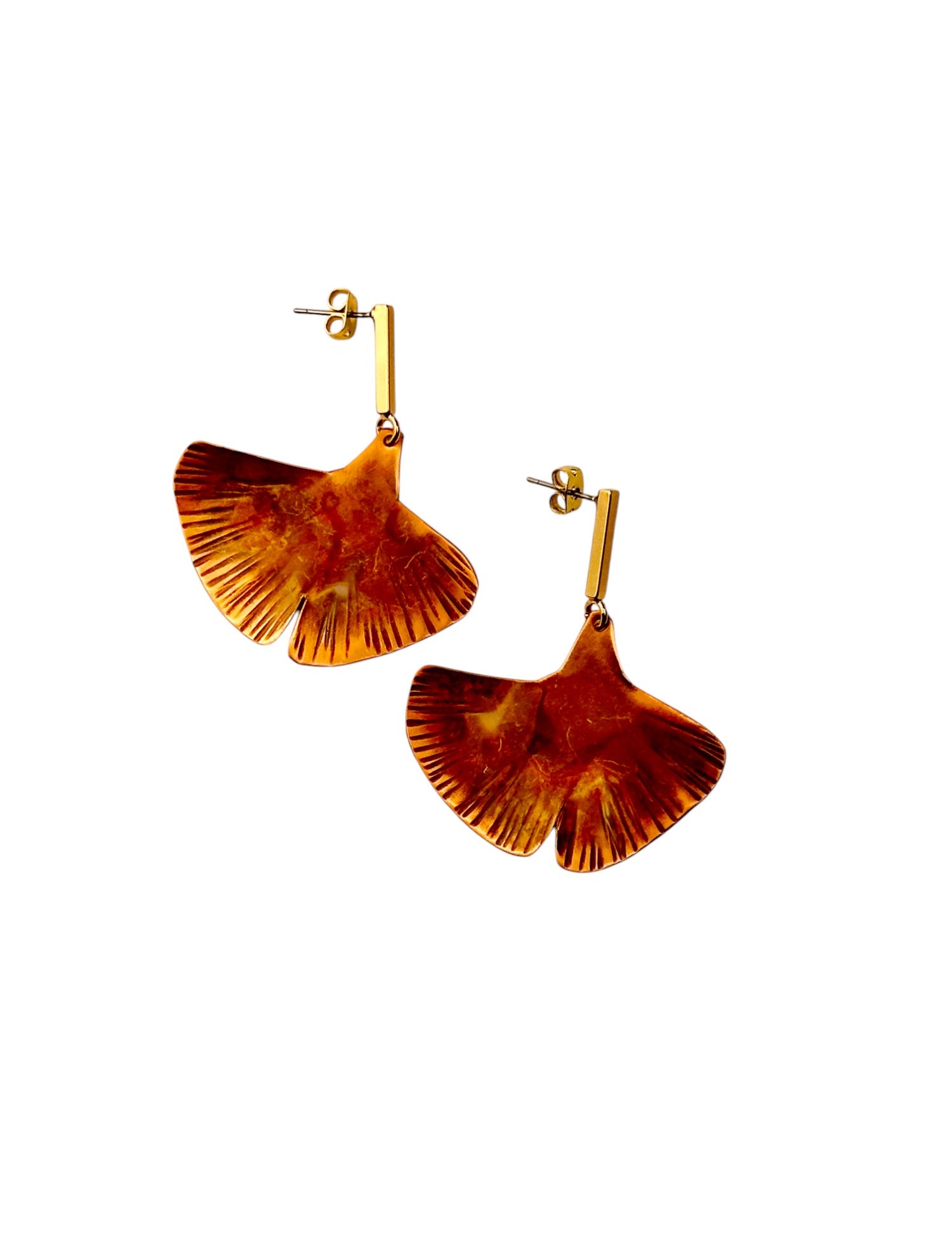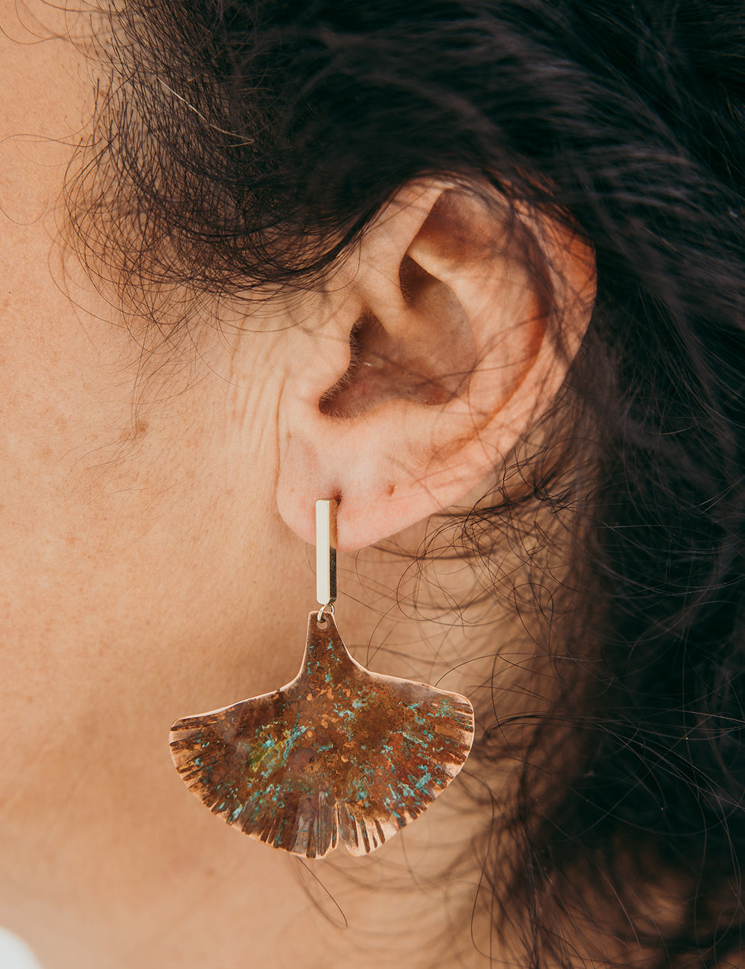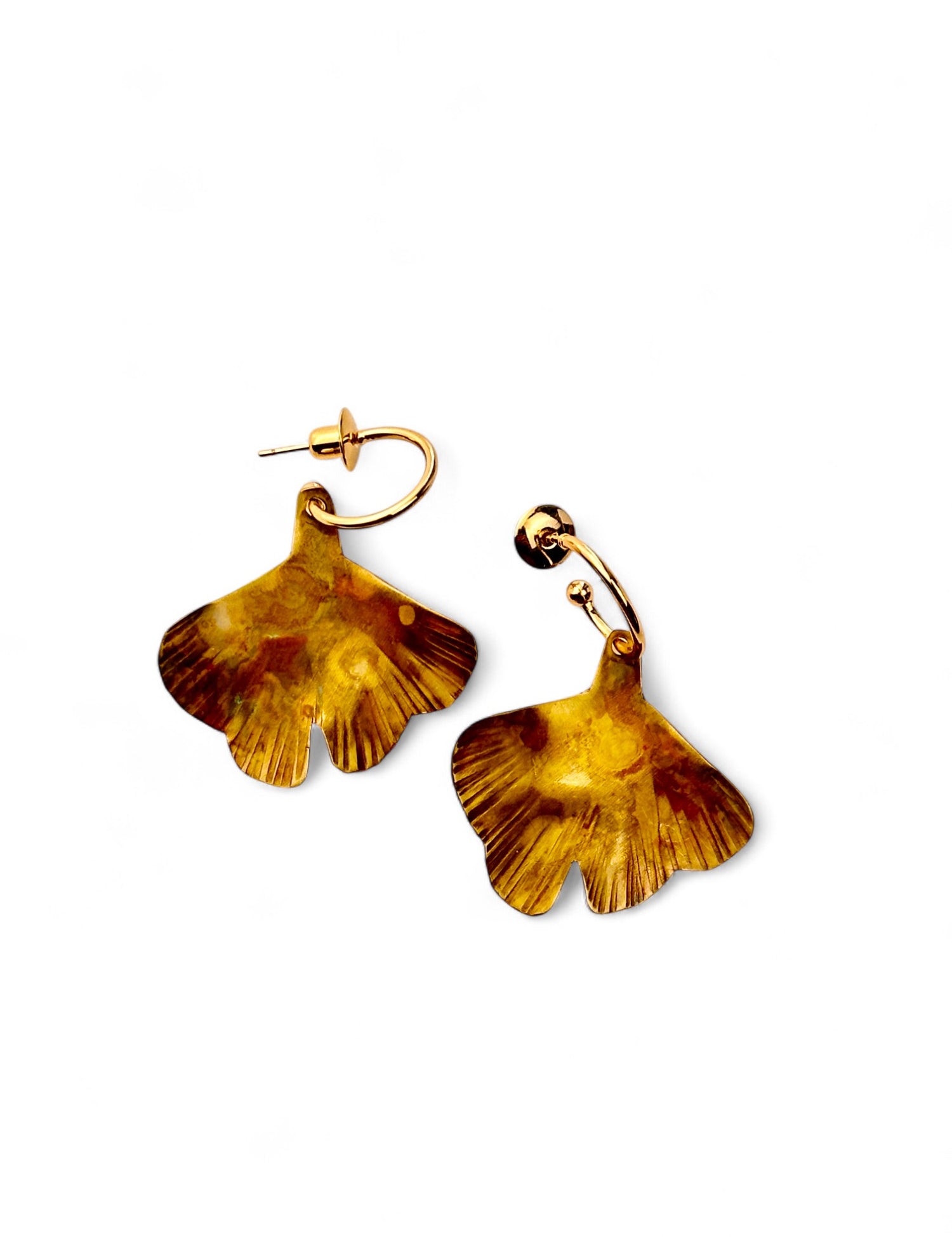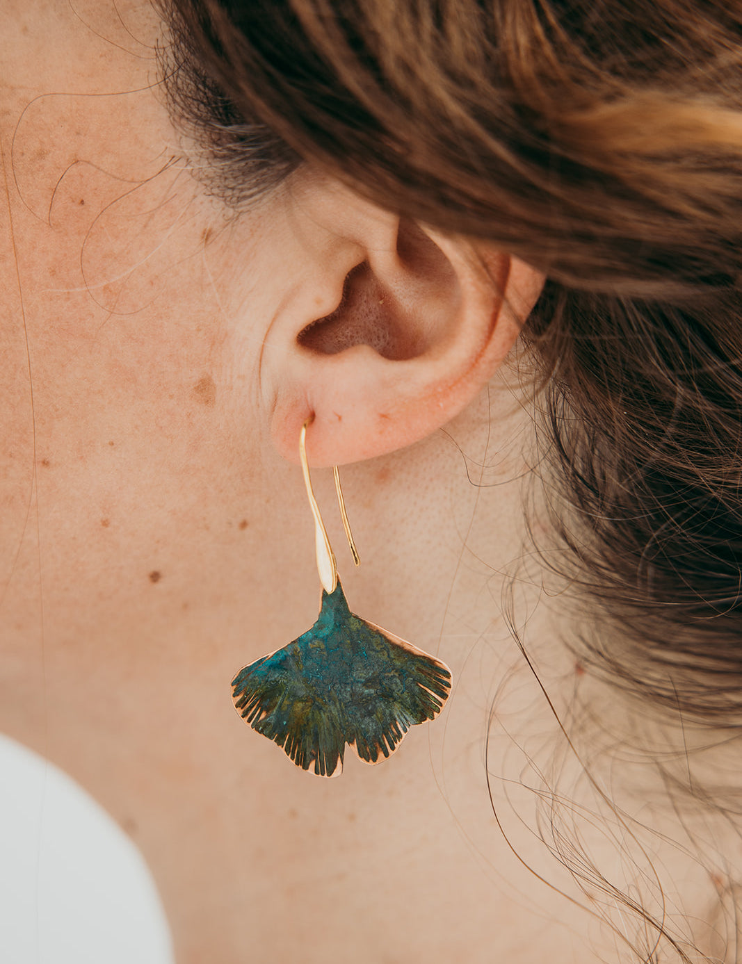 A coleção Gingko da Marca Hoiko é uma homenagem à beleza singular e à simbologia ancestral da árvore de Ginkgo, uma espécie que atravessa séculos e representa resistência, esperança e renovação. Criada artesanalmente em cobre e latão oxidado, cada peça captura a delicadeza das folhas desta planta única, com um trabalho minucioso de recorte manual e martelado, que resulta em peças com estrias e ondulações que refletem a textura natural e o movimento das folhas ao vento.