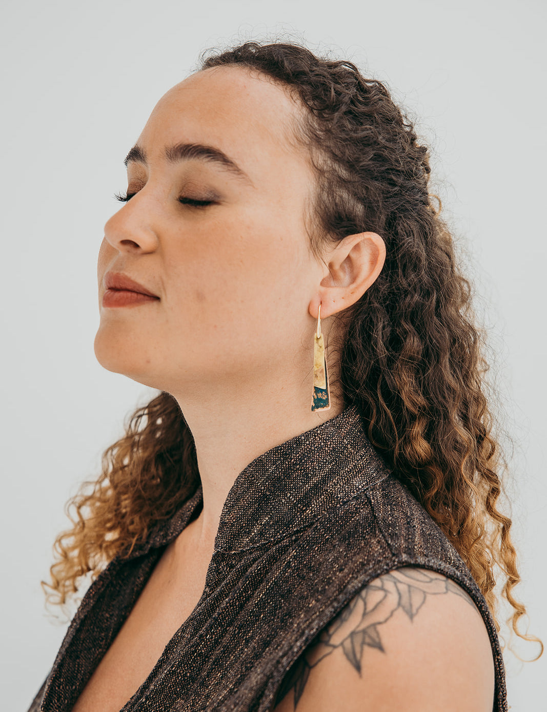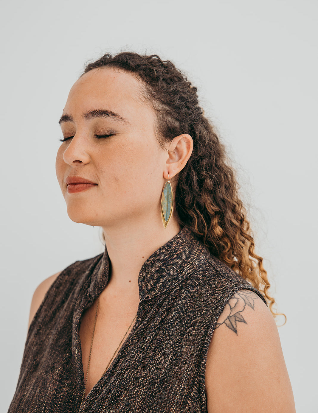 A coleção Olive da Marca Hoiko é uma homenagem à beleza e à simplicidade das folhas de oliveira, uma árvore símbolo de paz, resistência e esperança no imaginário mediterrânico. Criada artesanalmente em cobre e latão oxidado, cada peça é cuidadosamente recortada e dobrada uma a uma, tornando-se única, tal como cada folha de uma oliveira.