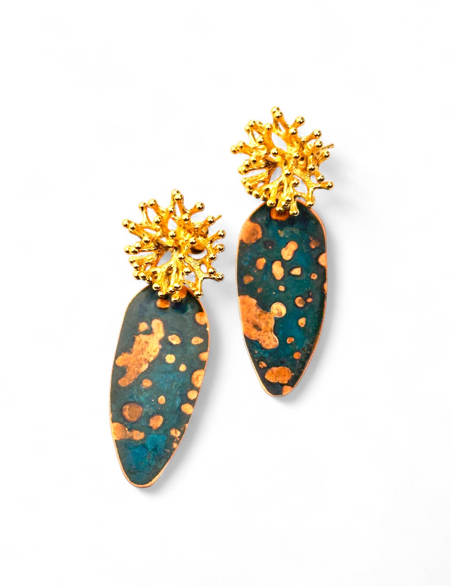 A coleção Coral da Marca Hoiko é uma ode à beleza misteriosa e vibrante do mundo marinho. Criada artesanalmente em cobre e latão oxidado, cada peça busca captar a essência e a riqueza das formas que encontramos nos corais, águas, correntes, rochas e nas espécies que nidificam e vivem neste vasto universo subaquático.