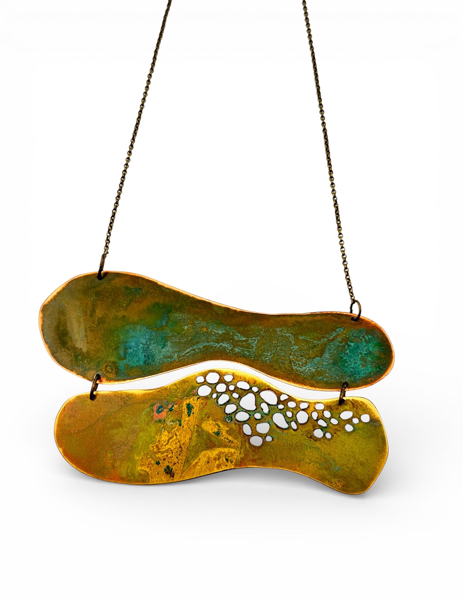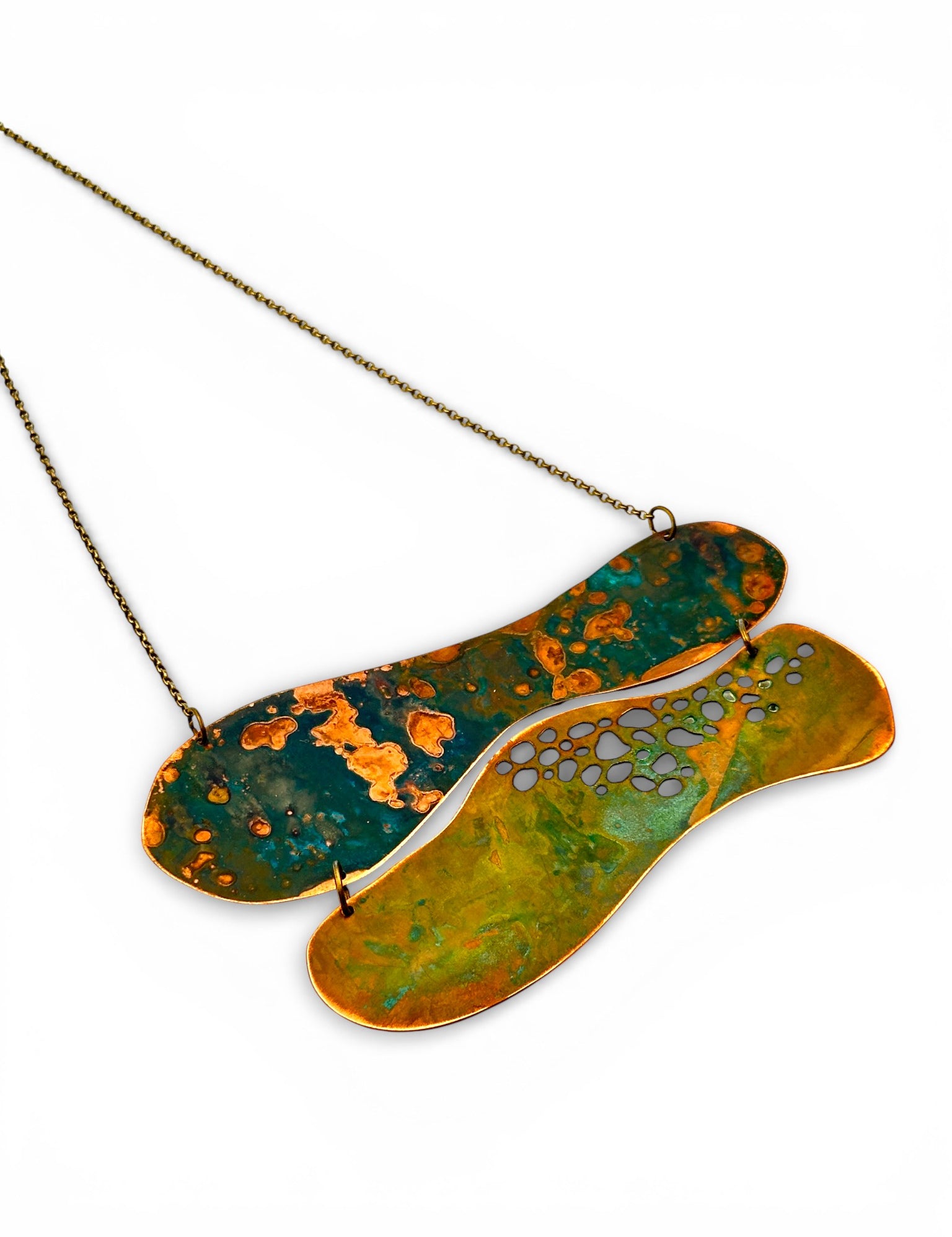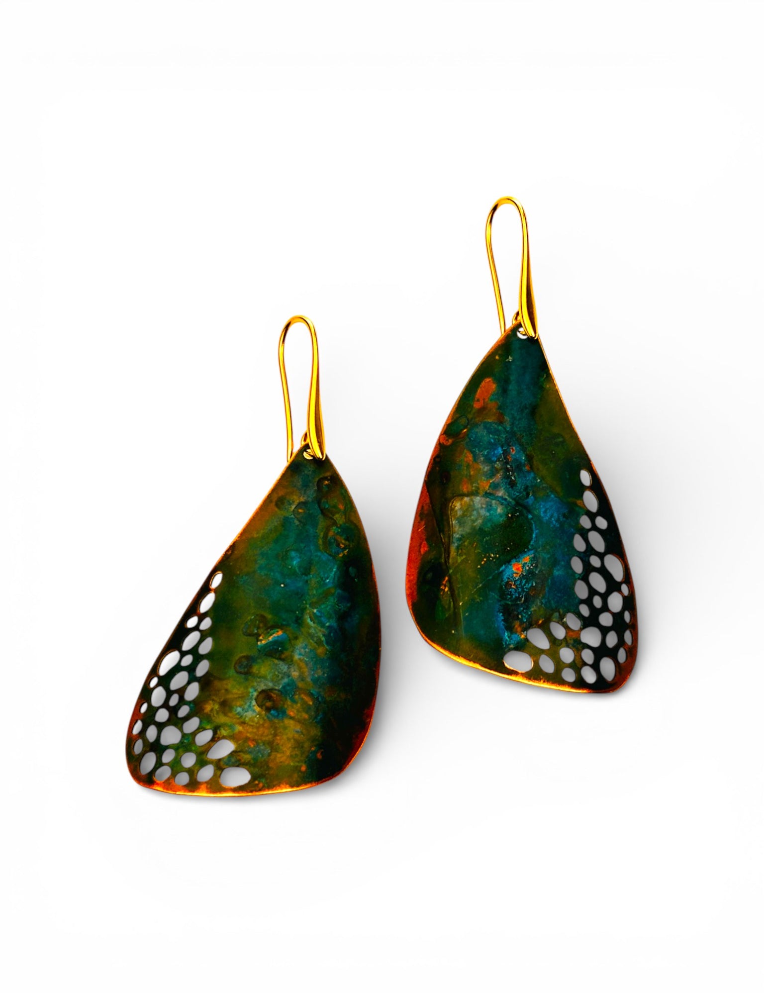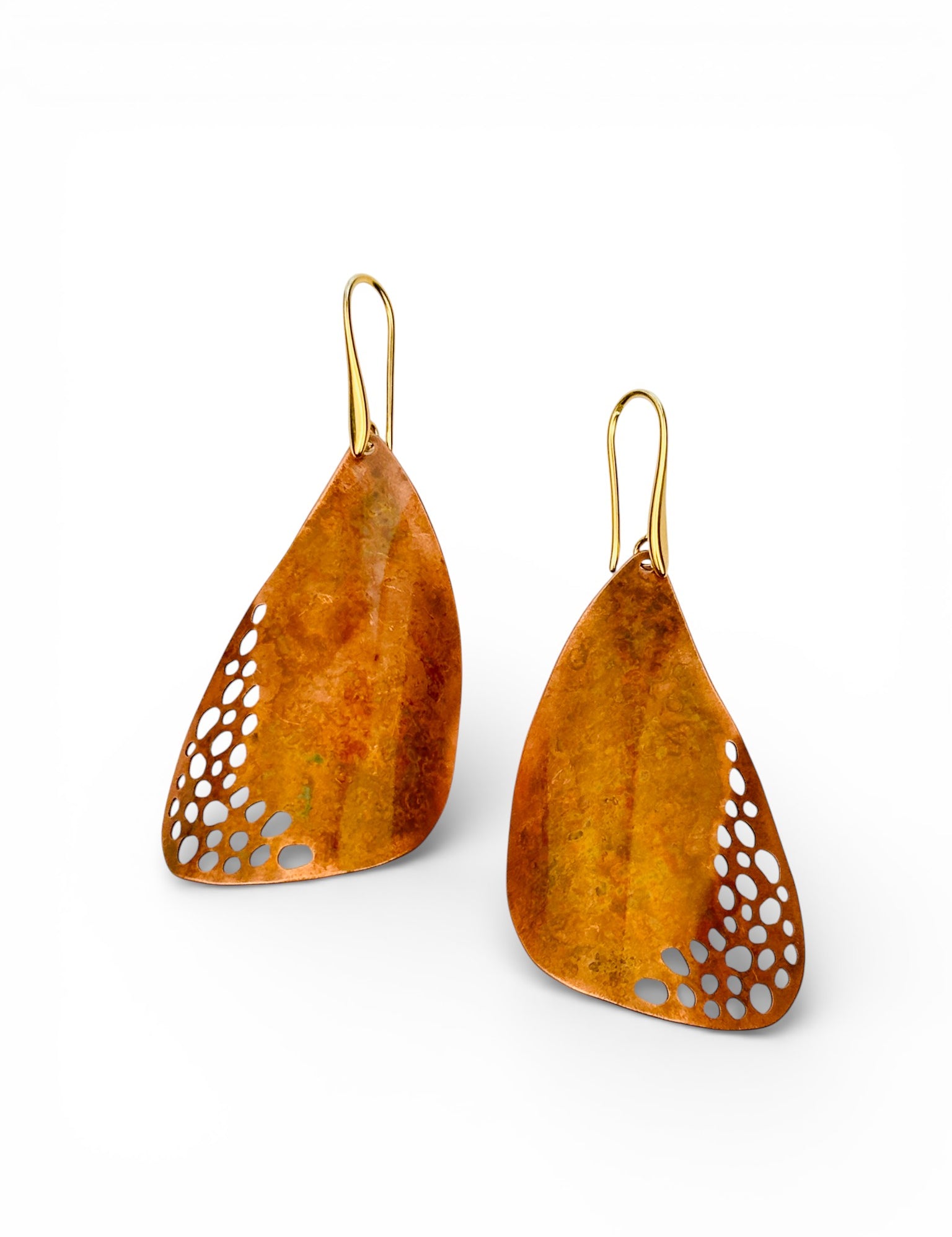 A coleção Wing da Marca Hoiko é uma celebração da leveza, liberdade e transformação, inspirada nos delicados fragmentos de asas de libélula. Cada peça é artesanalmente recortada e sobreposta em cobre e latão oxidado, criando uma estética de movimento e transparência que evoca a graça e a agilidade dessas criaturas voadoras.