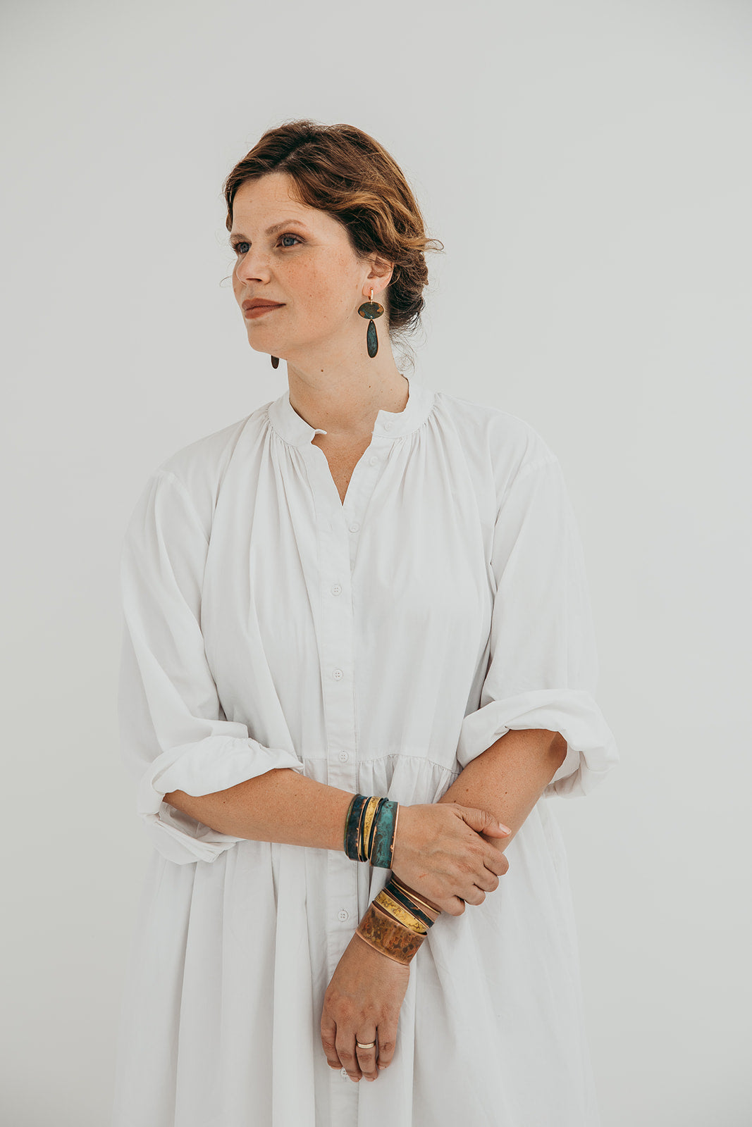 A imagem principal do produto mostra a peça disponível para compra, mas procuramos sempre incluir uma fotografia de contexto, com a peça usada por uma modelo ou em cenário. Essa foto pode não corresponder exatamente à peça que que receberá, podendo ser de outro metal ou de uma tonalidade diferente de oxidação; serve apenas como exemplo de como a peça fica no uso.