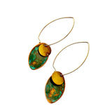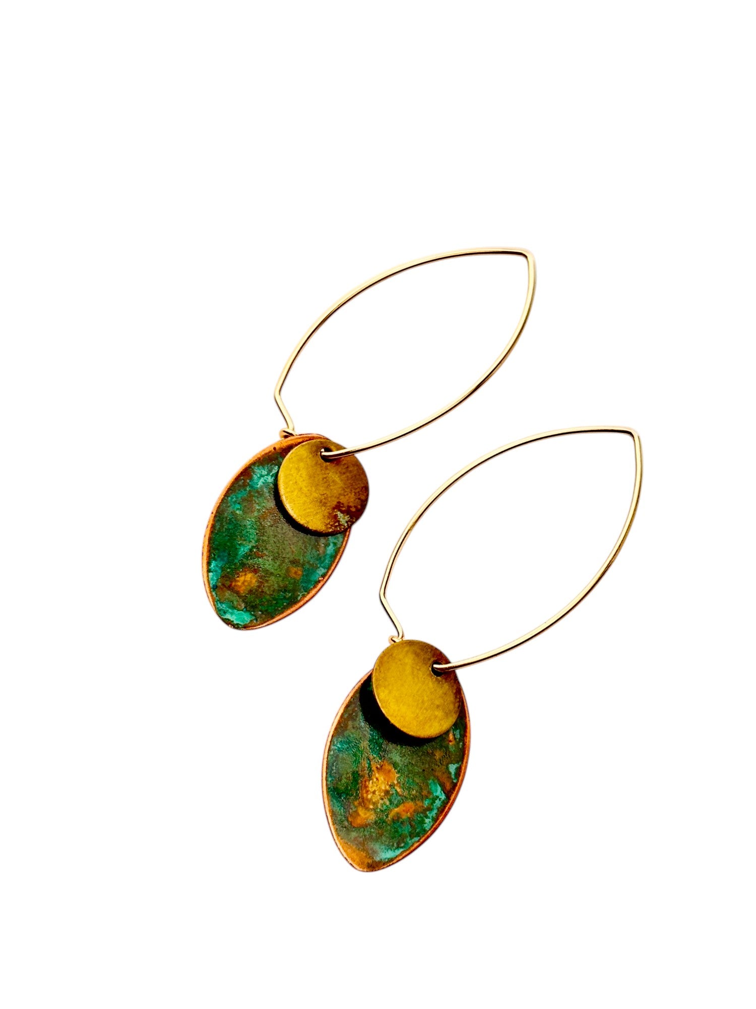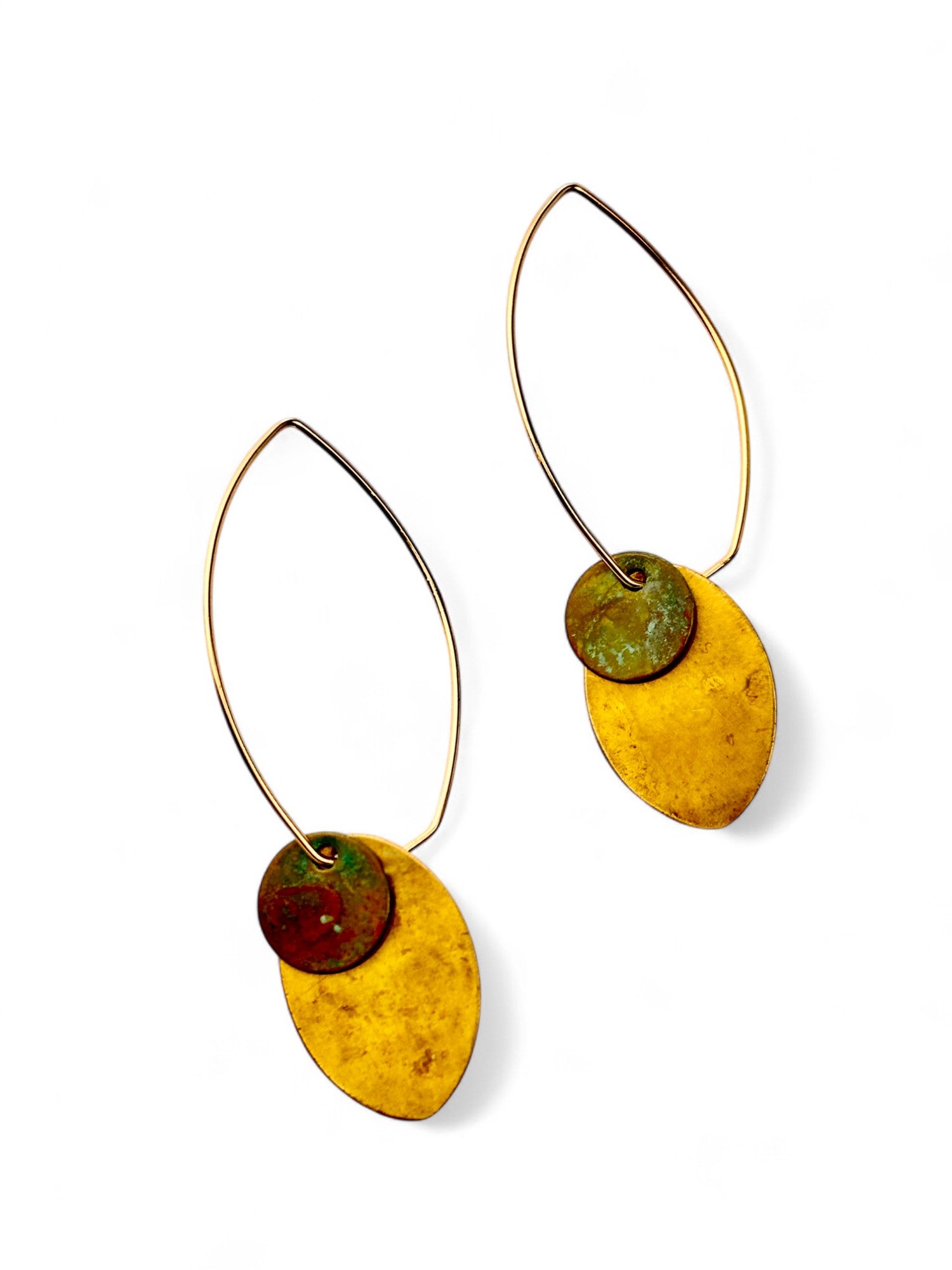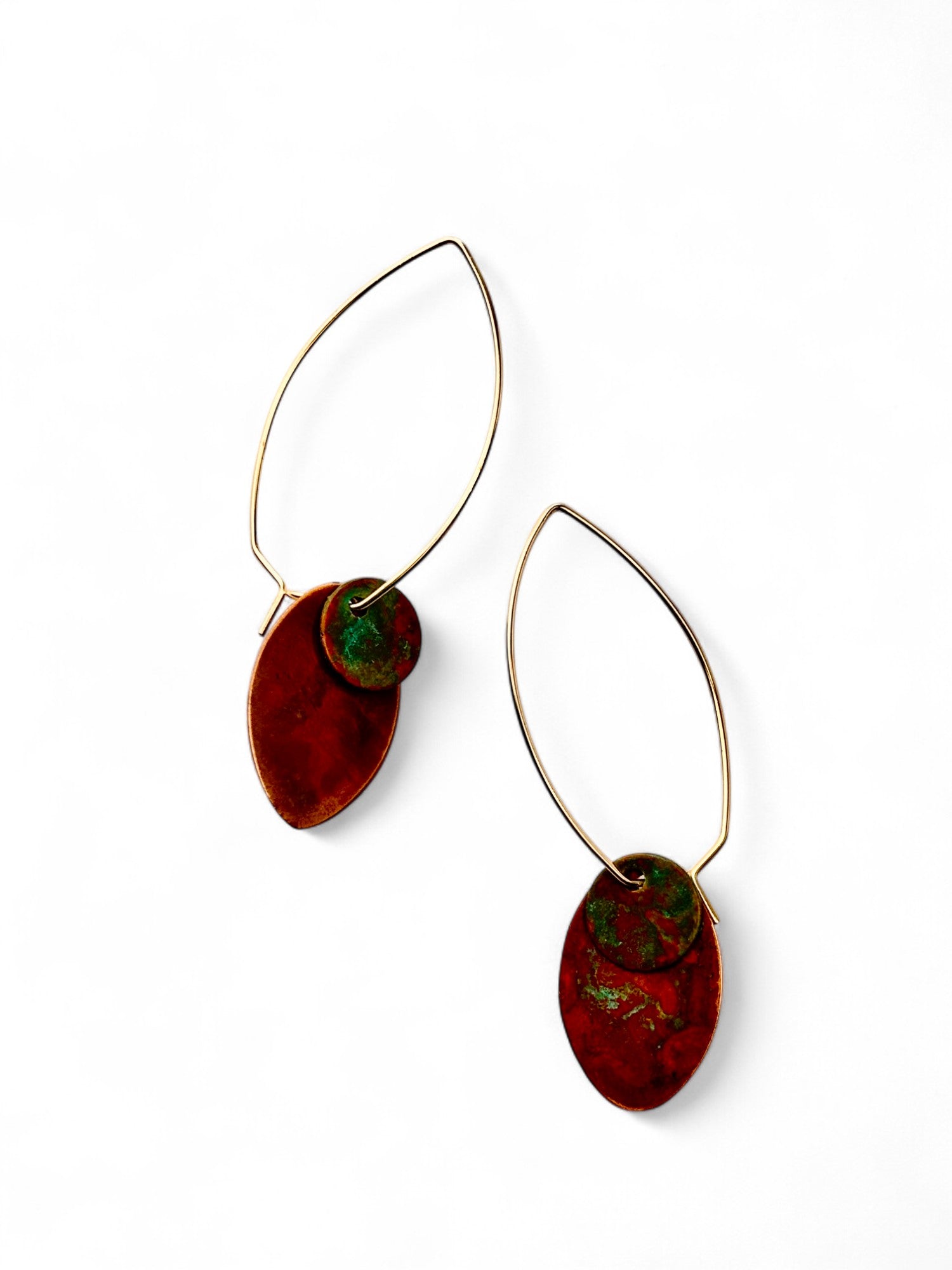 Brincos Kandinsky nano, cortados e oxidados manualmente. Gancho comprido fechado com banho de ouro.