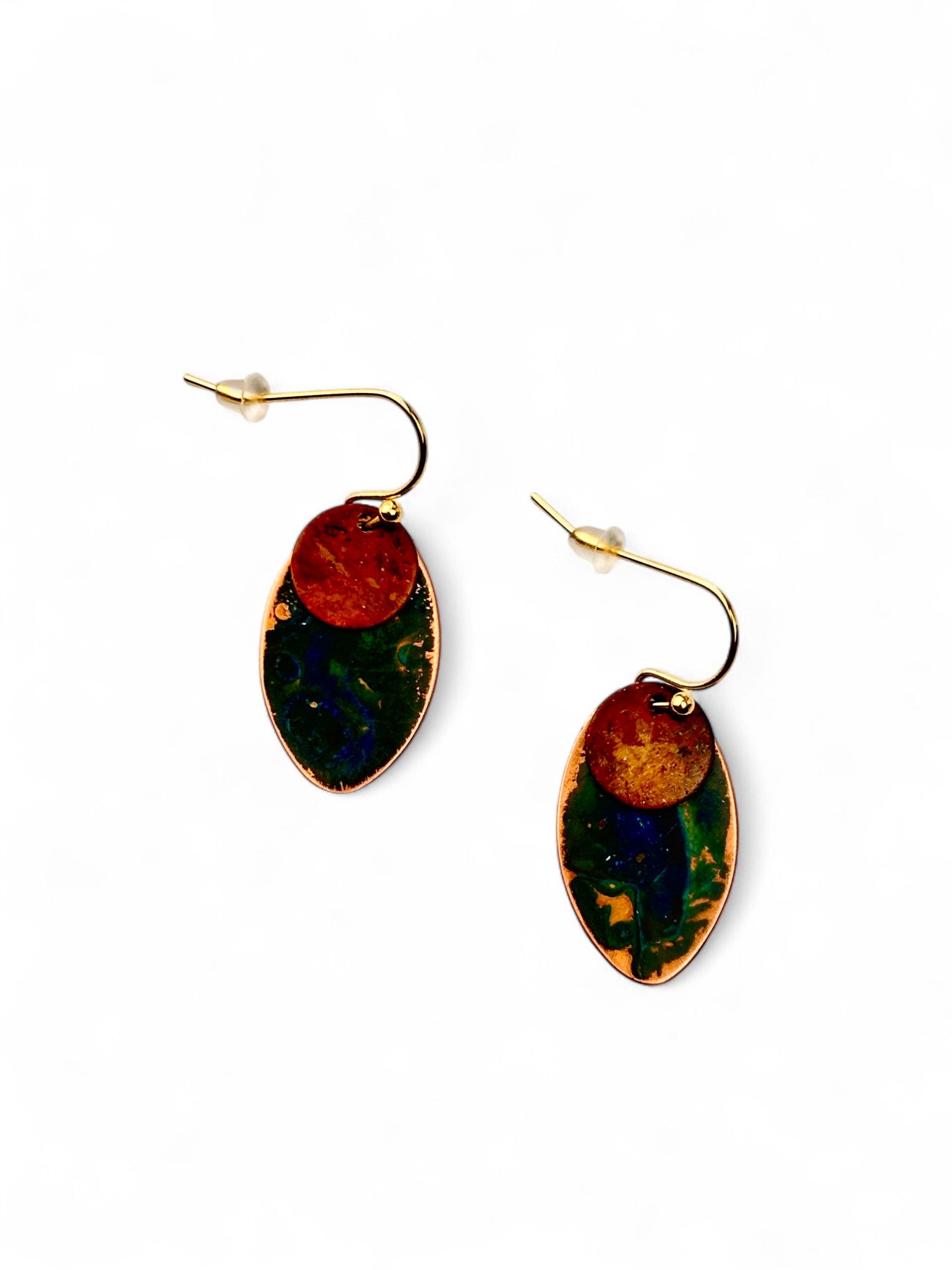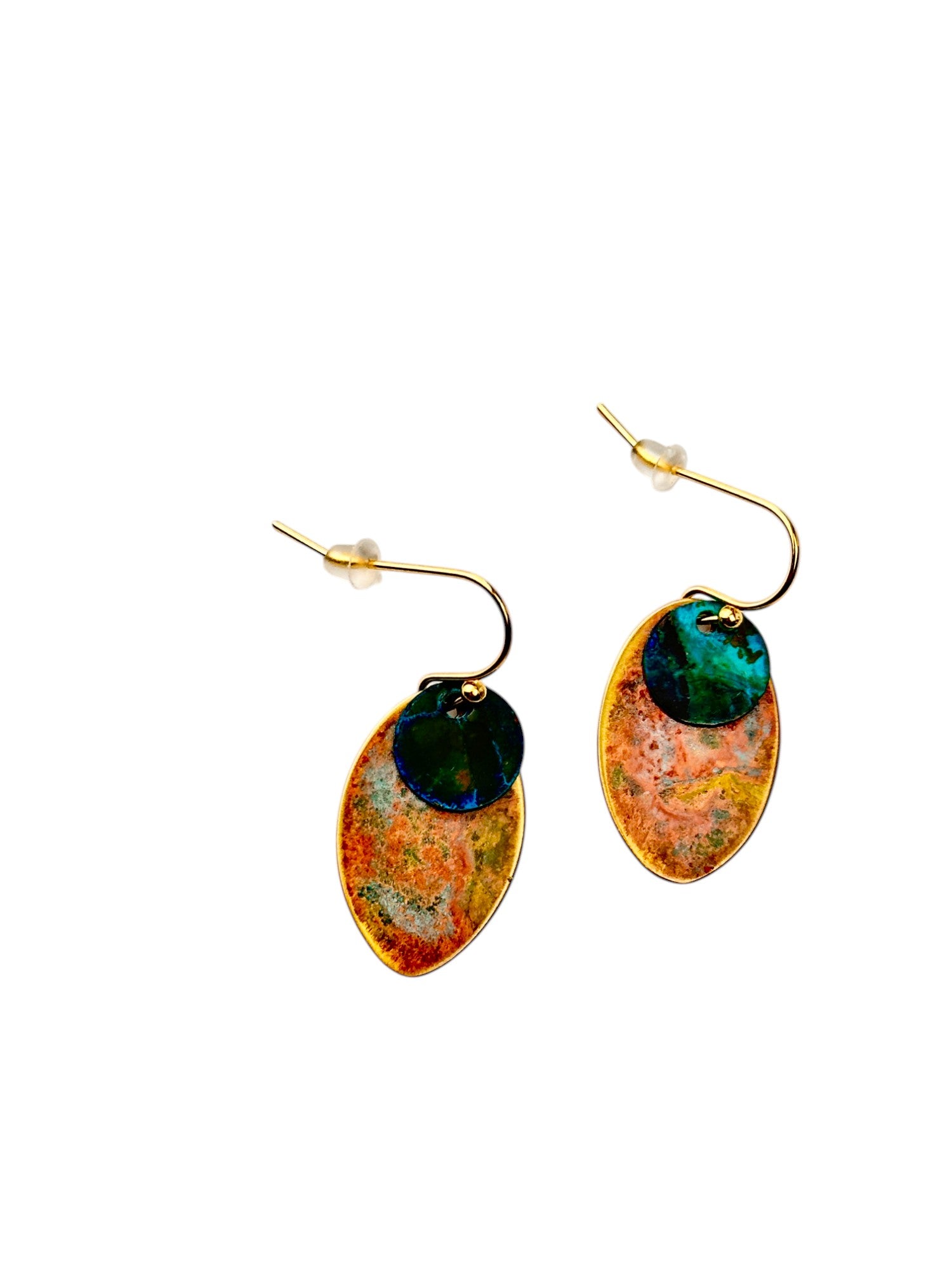 Brincos Kandinsky nano, cortados e oxidados manualmente. Gancho aberto com banho de ouro.