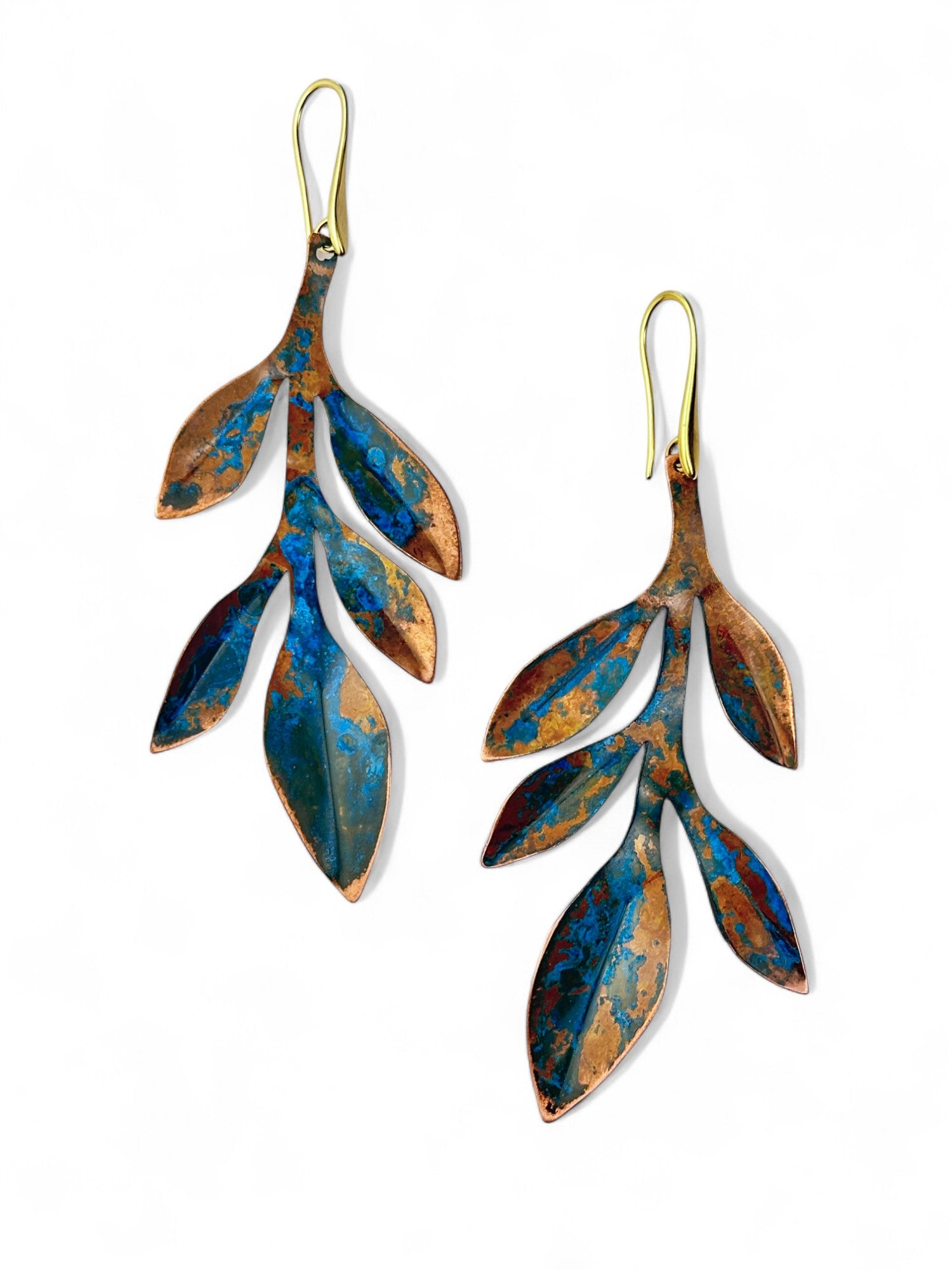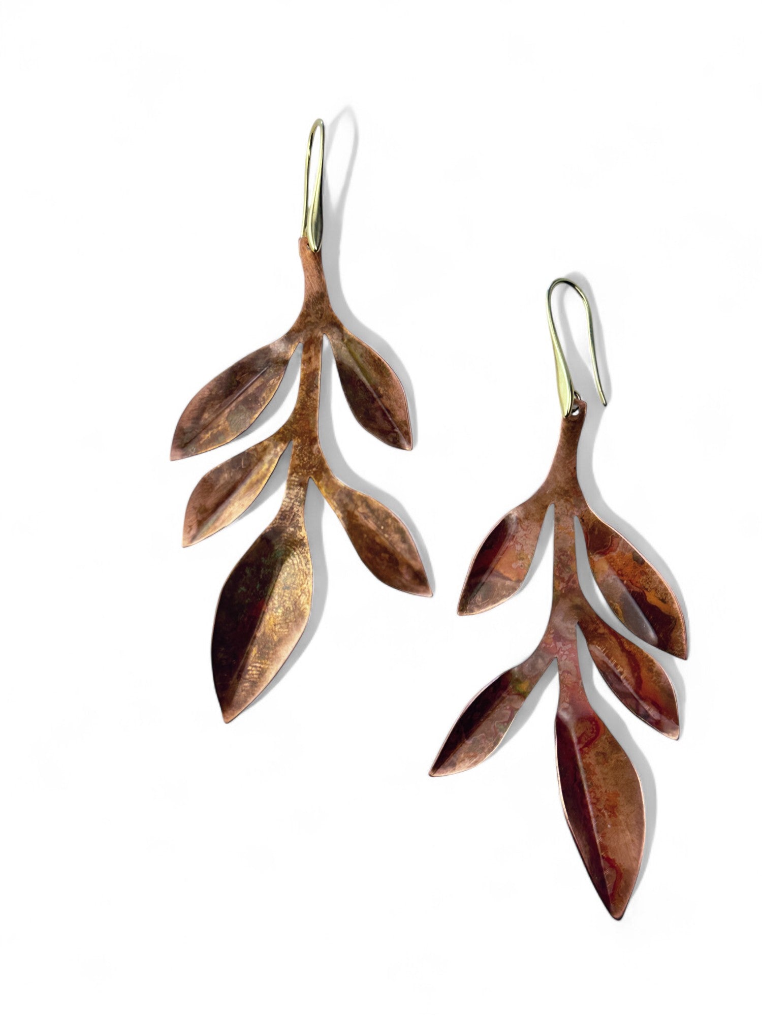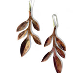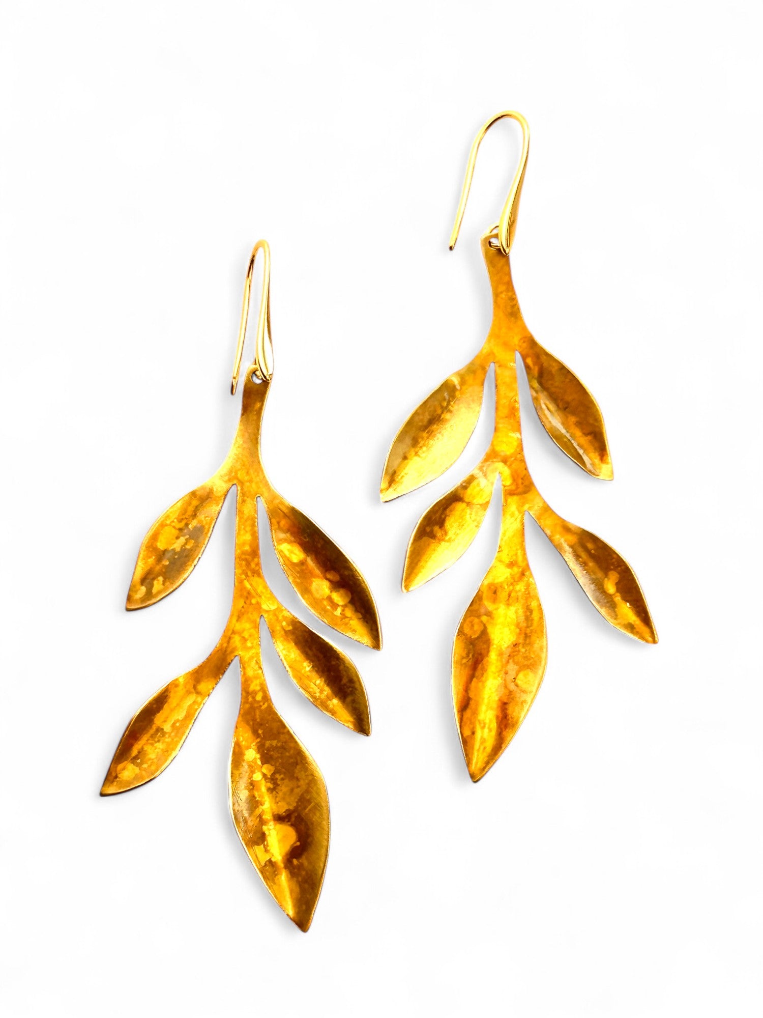 Brincos grandes Lilly Pilly, de forma orgânica, dobrados e oxidados manualmente o que origina peças únicas. Gancho aberto com banho de ouro.