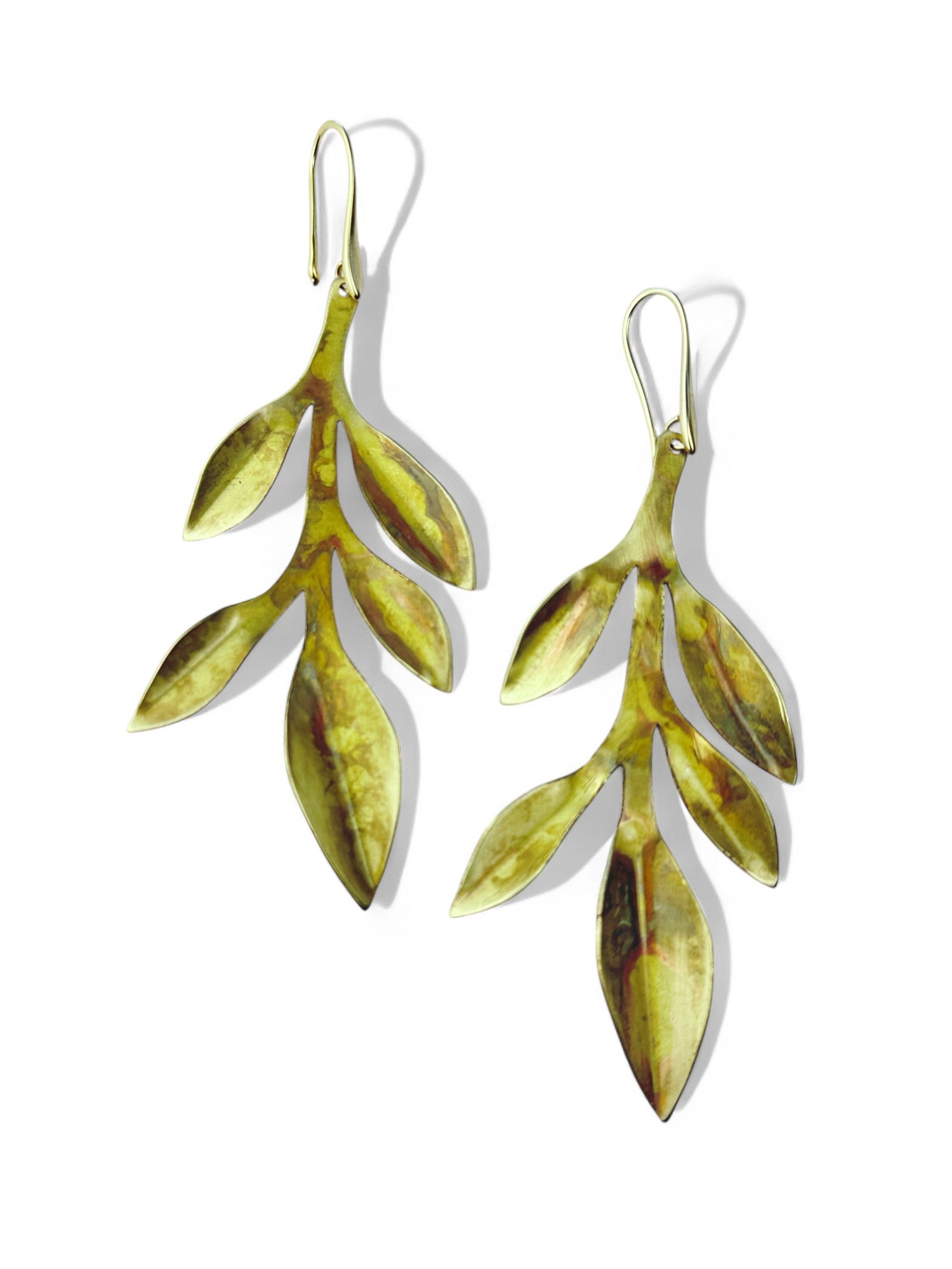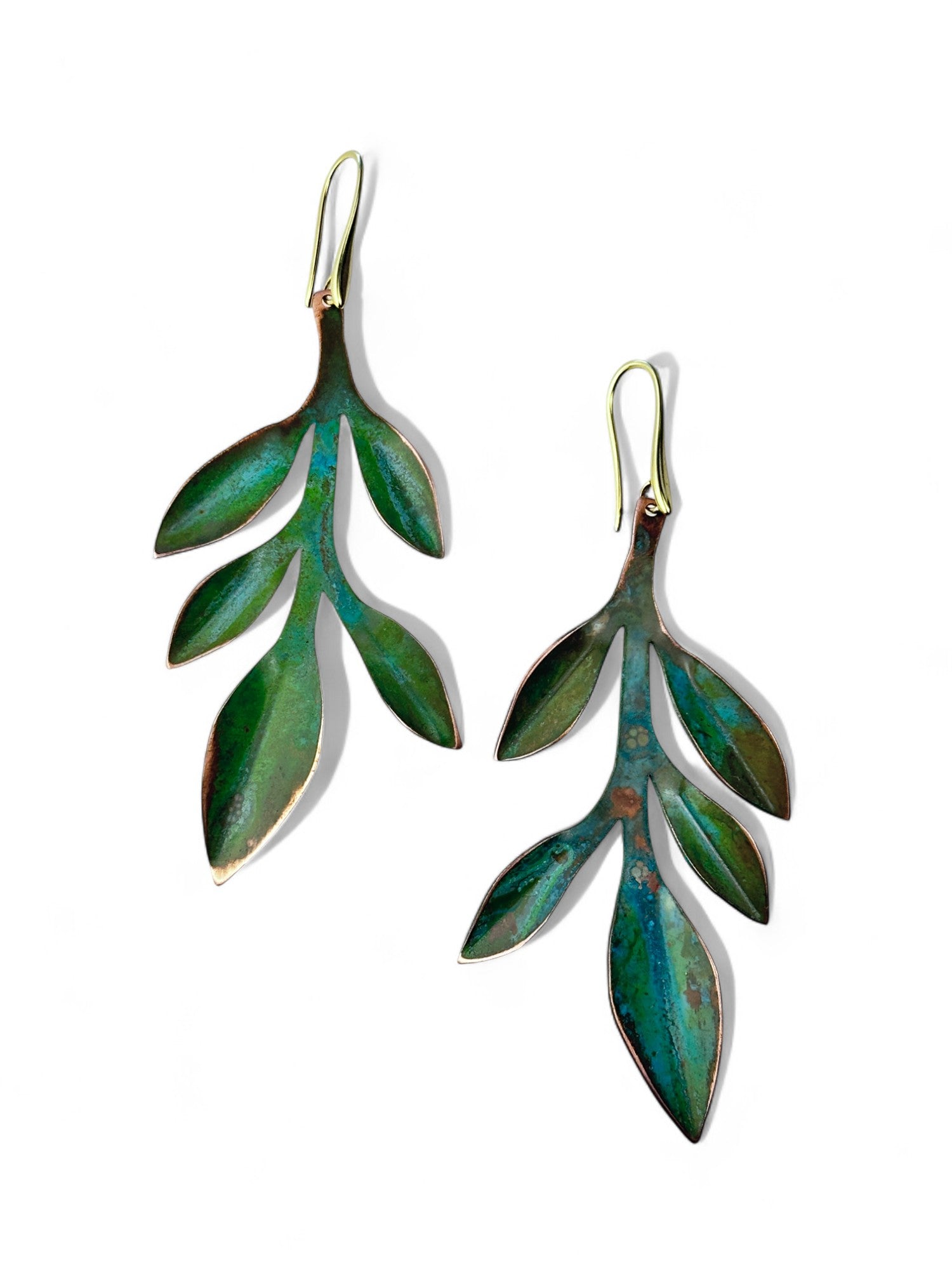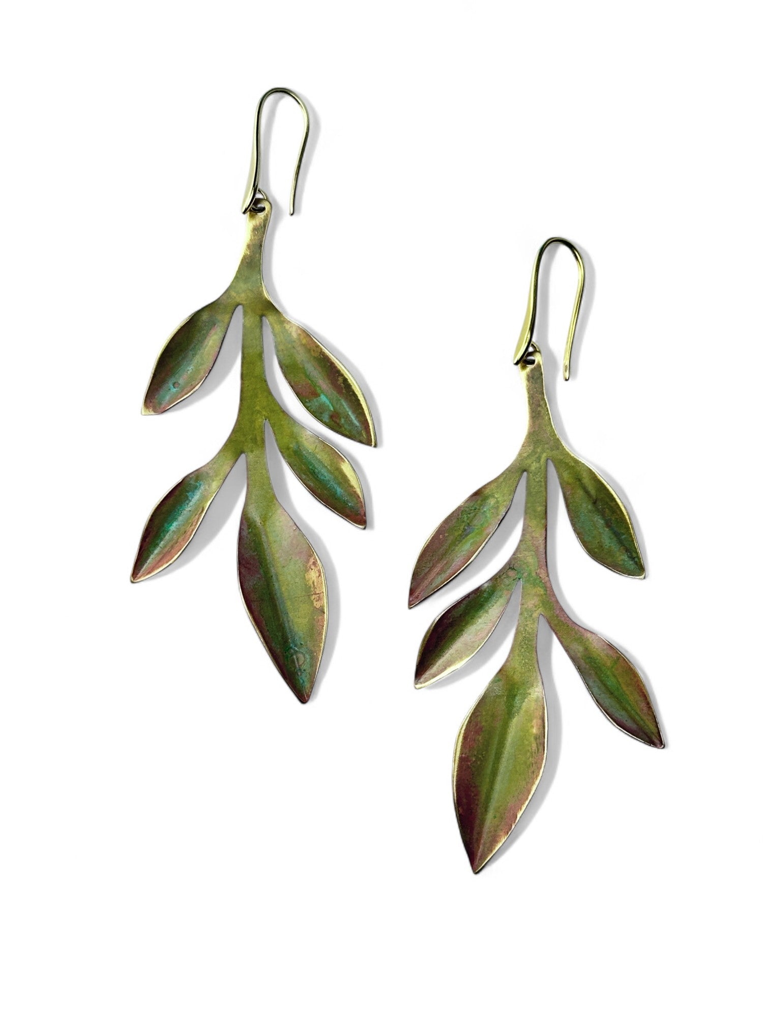Brincos grandes Lilly Pilly, de forma orgânica, dobrados e oxidados manualmente o que origina peças únicas. Gancho aberto com banho de ouro.