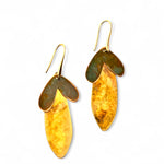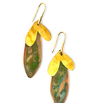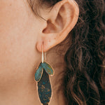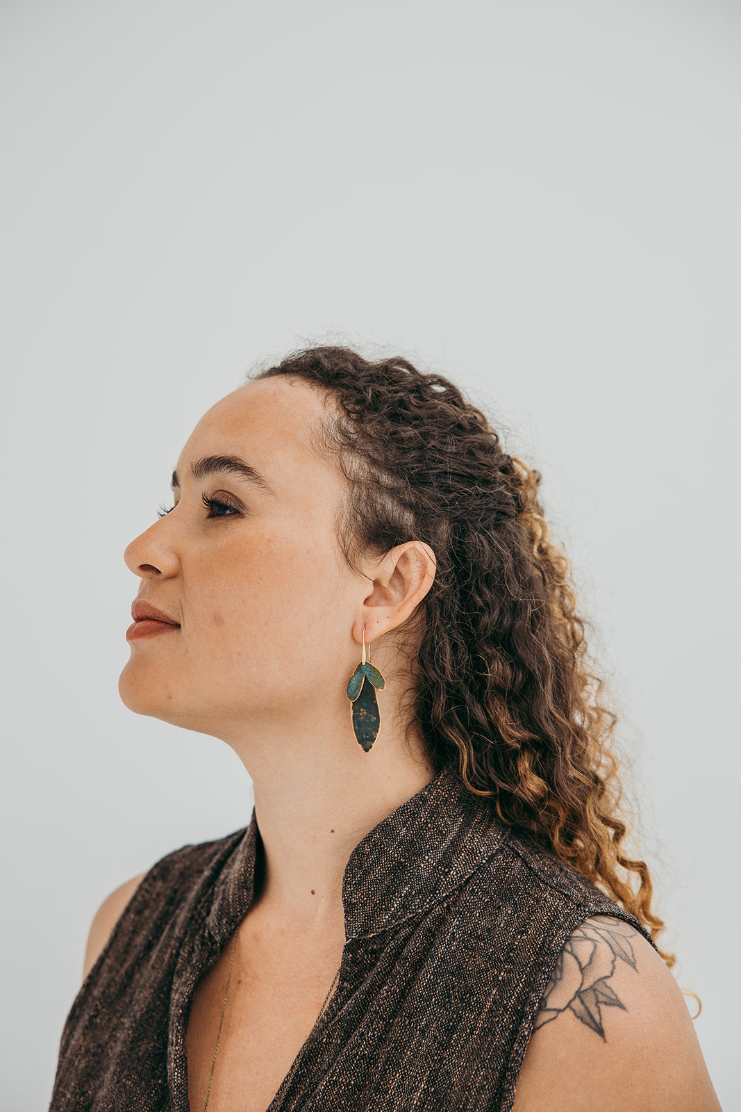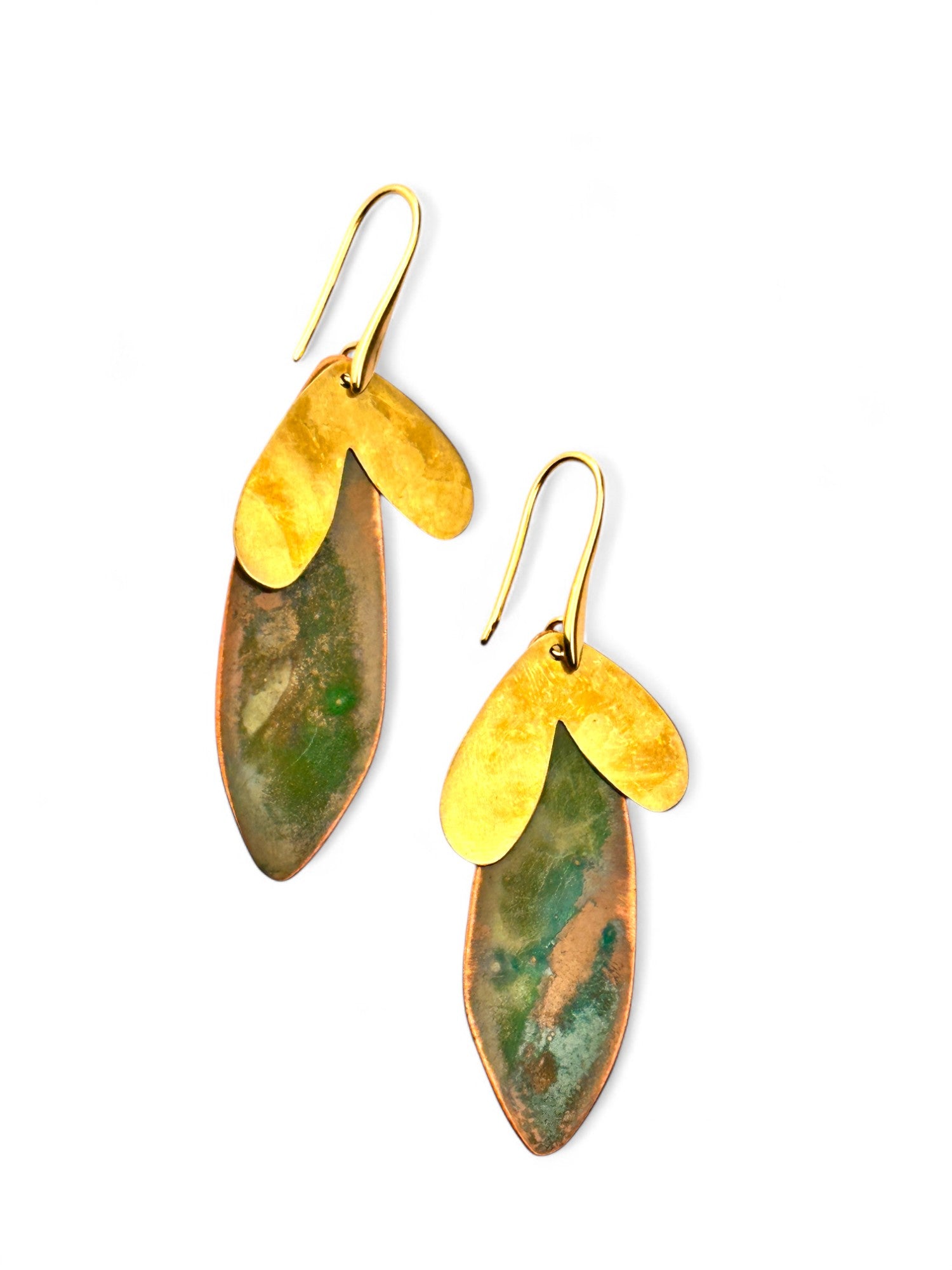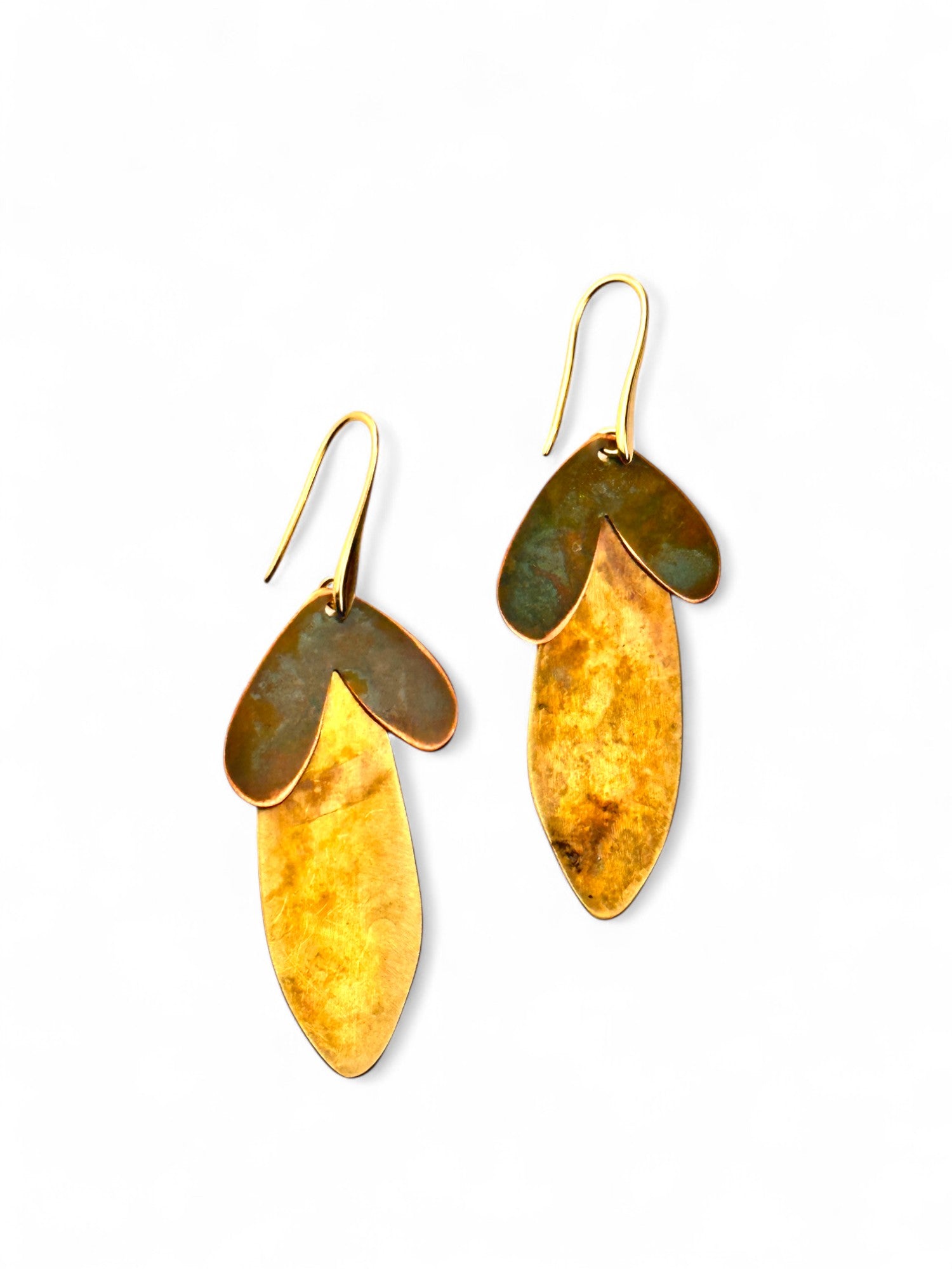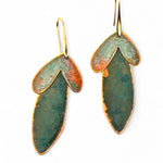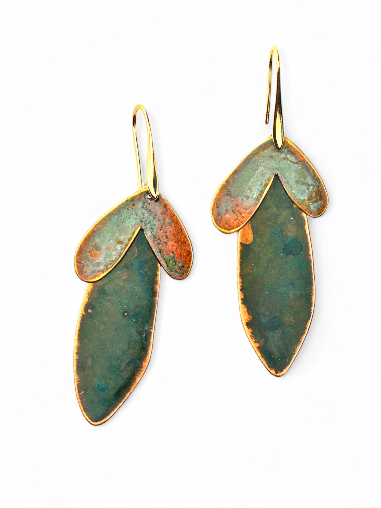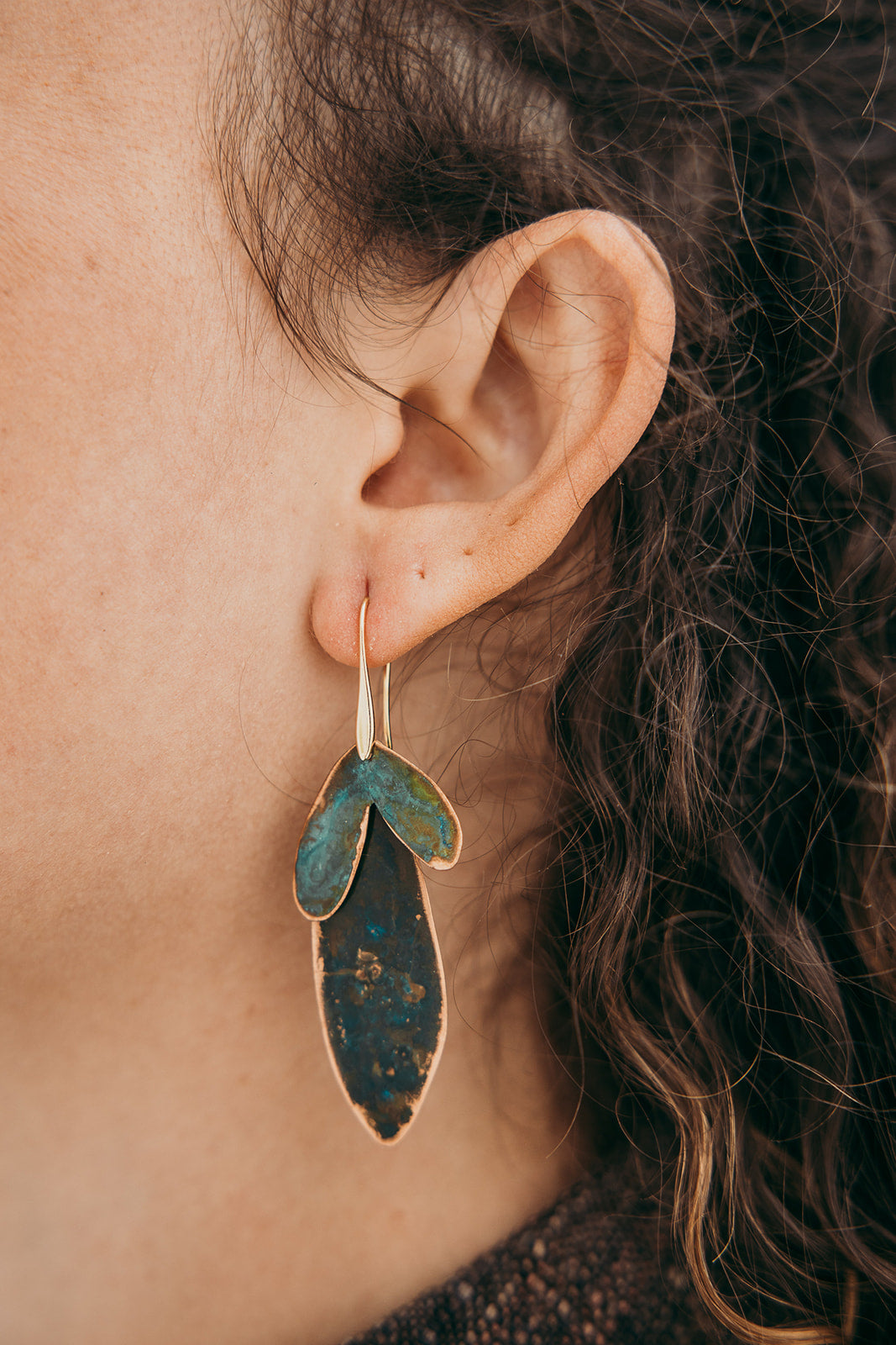Brincos inspirados em corais marinhos. Alongados, oxidados, com gancho aberto com banho de ouro