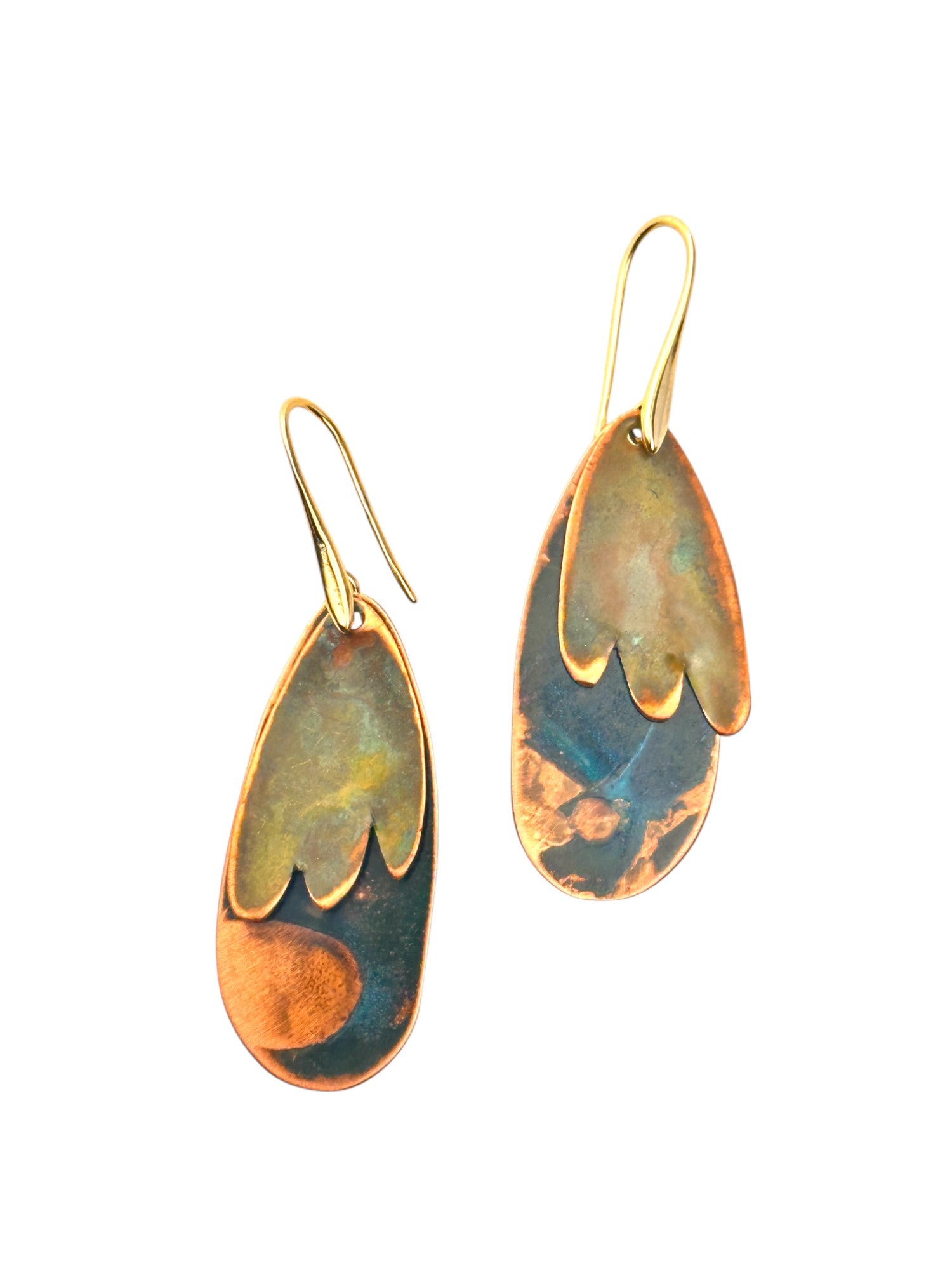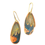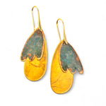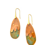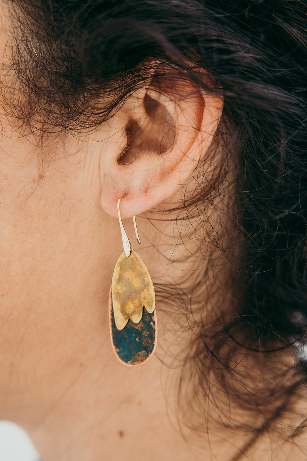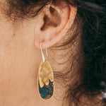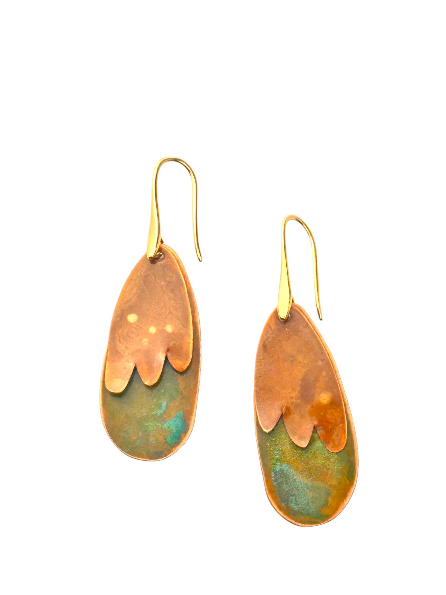 Brincos inspirados em corais marinhos. Alongados, oxidados, com gancho aberto com banho de ouro