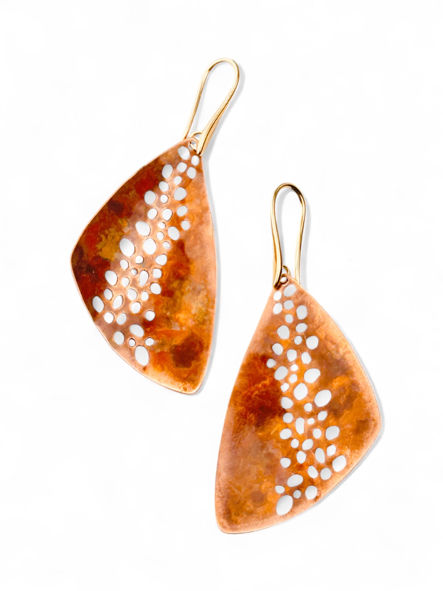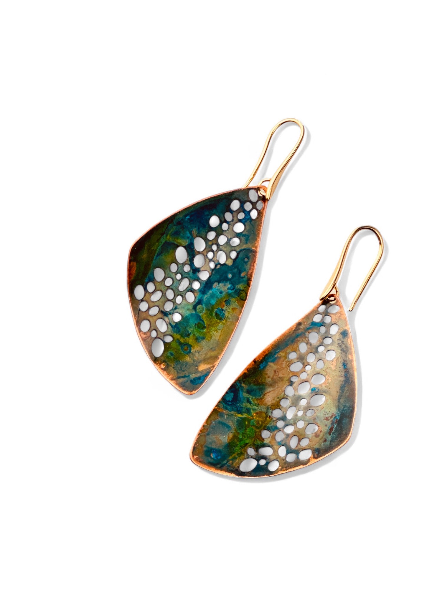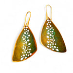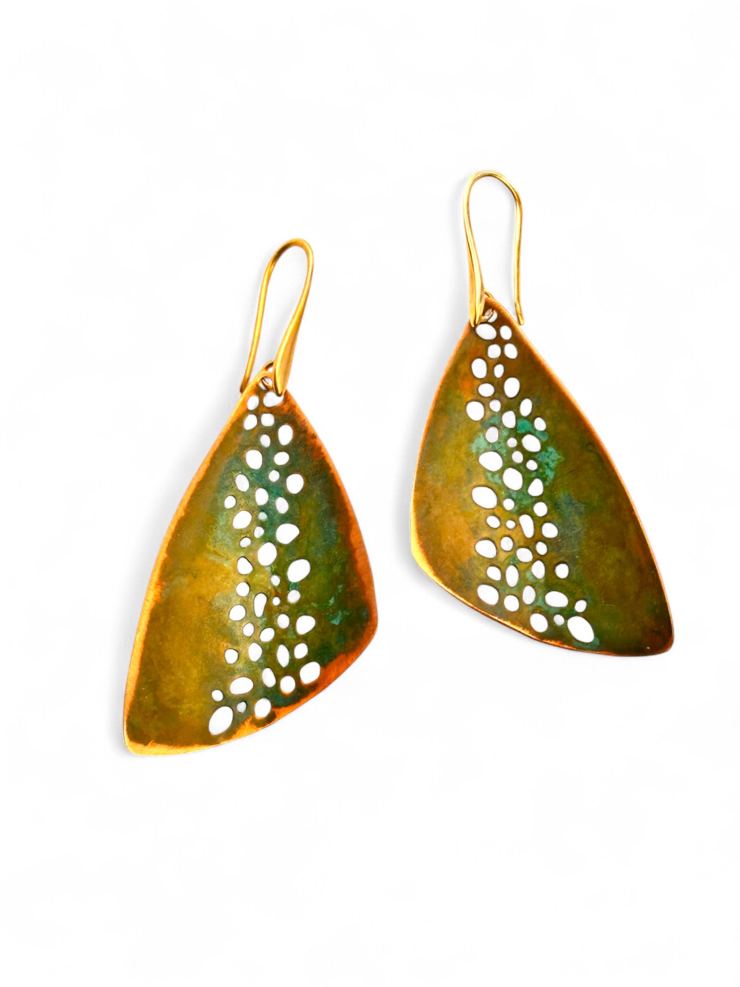 Brincos Caparica com oxidações naturais. Gancho aberto com banho de ouro.