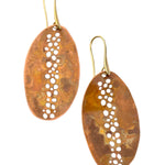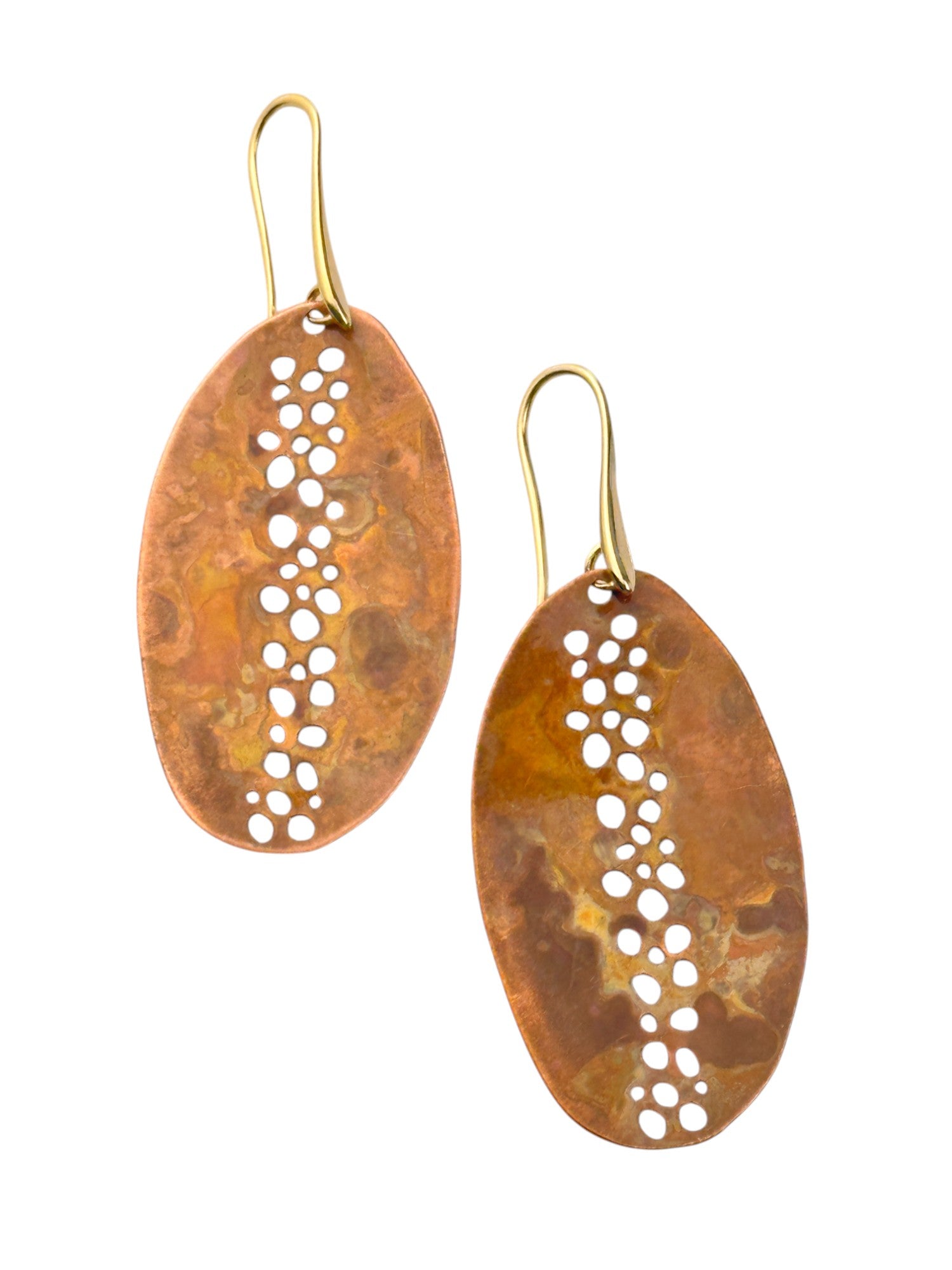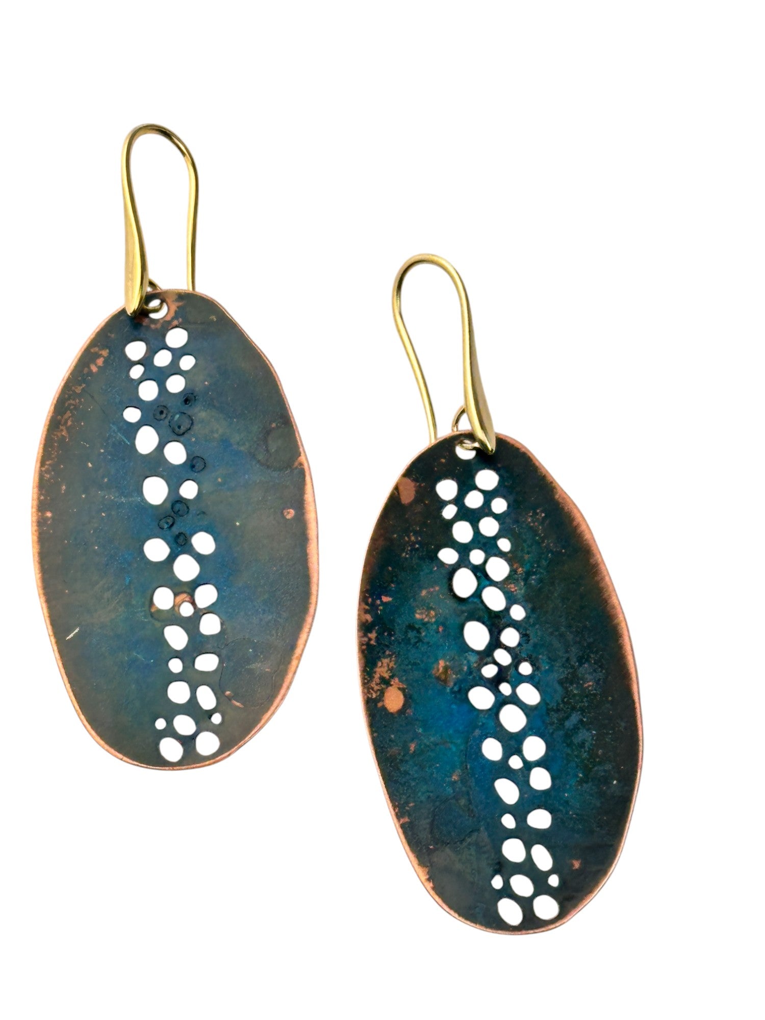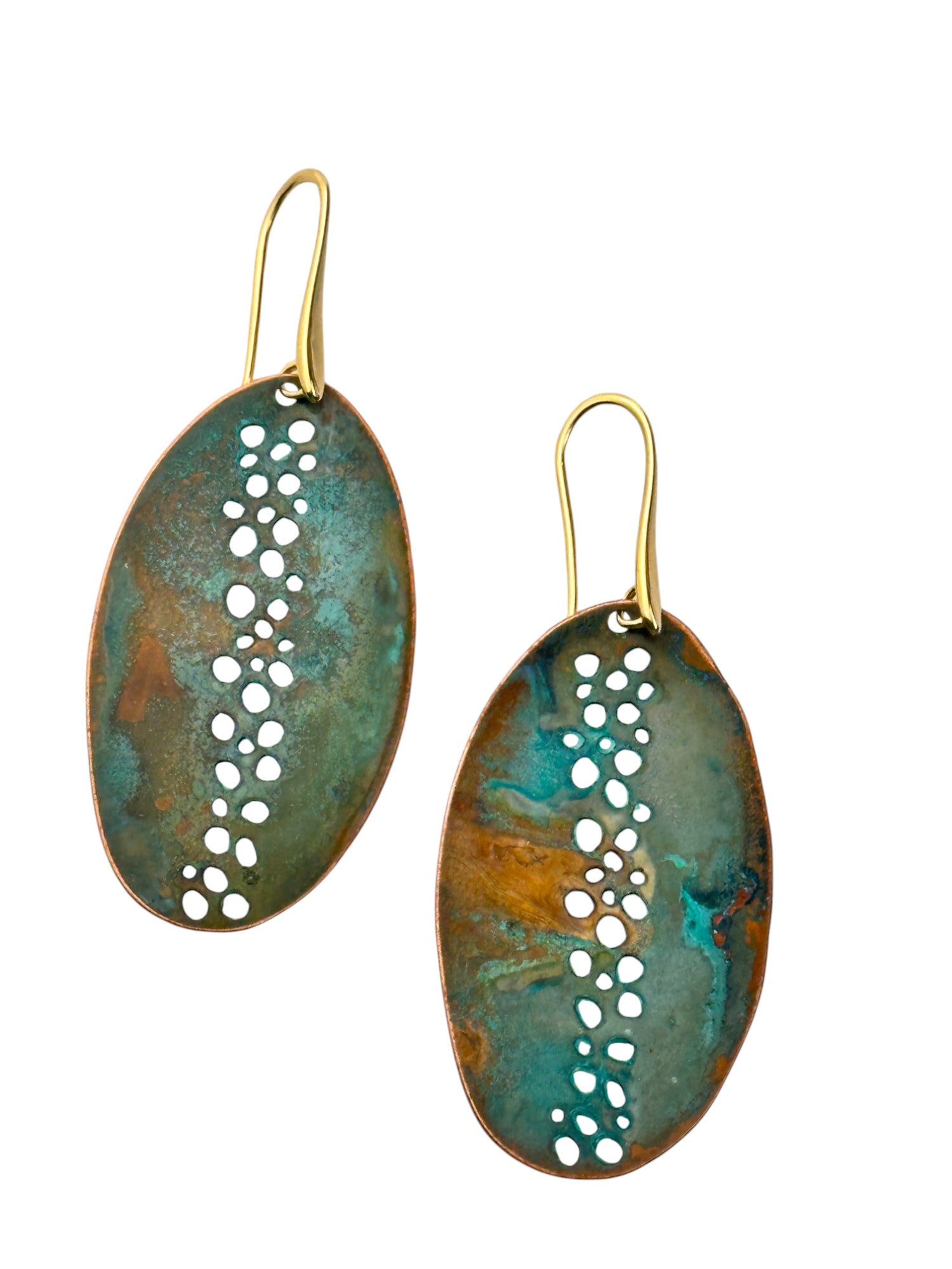 Brincos Praia da Luz com oxidações naturais. Gancho aberto com banho de ouro.