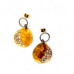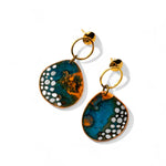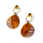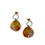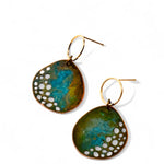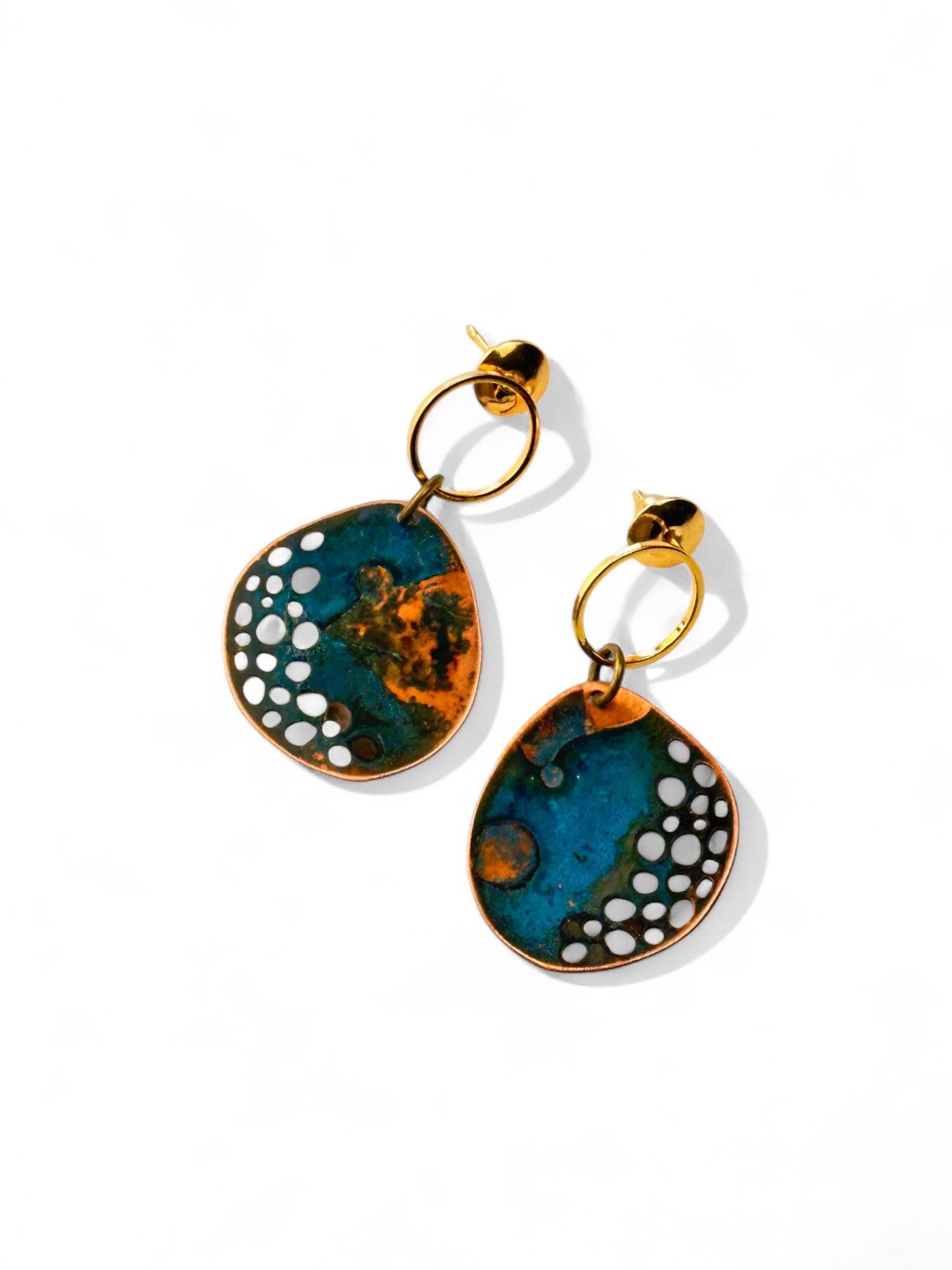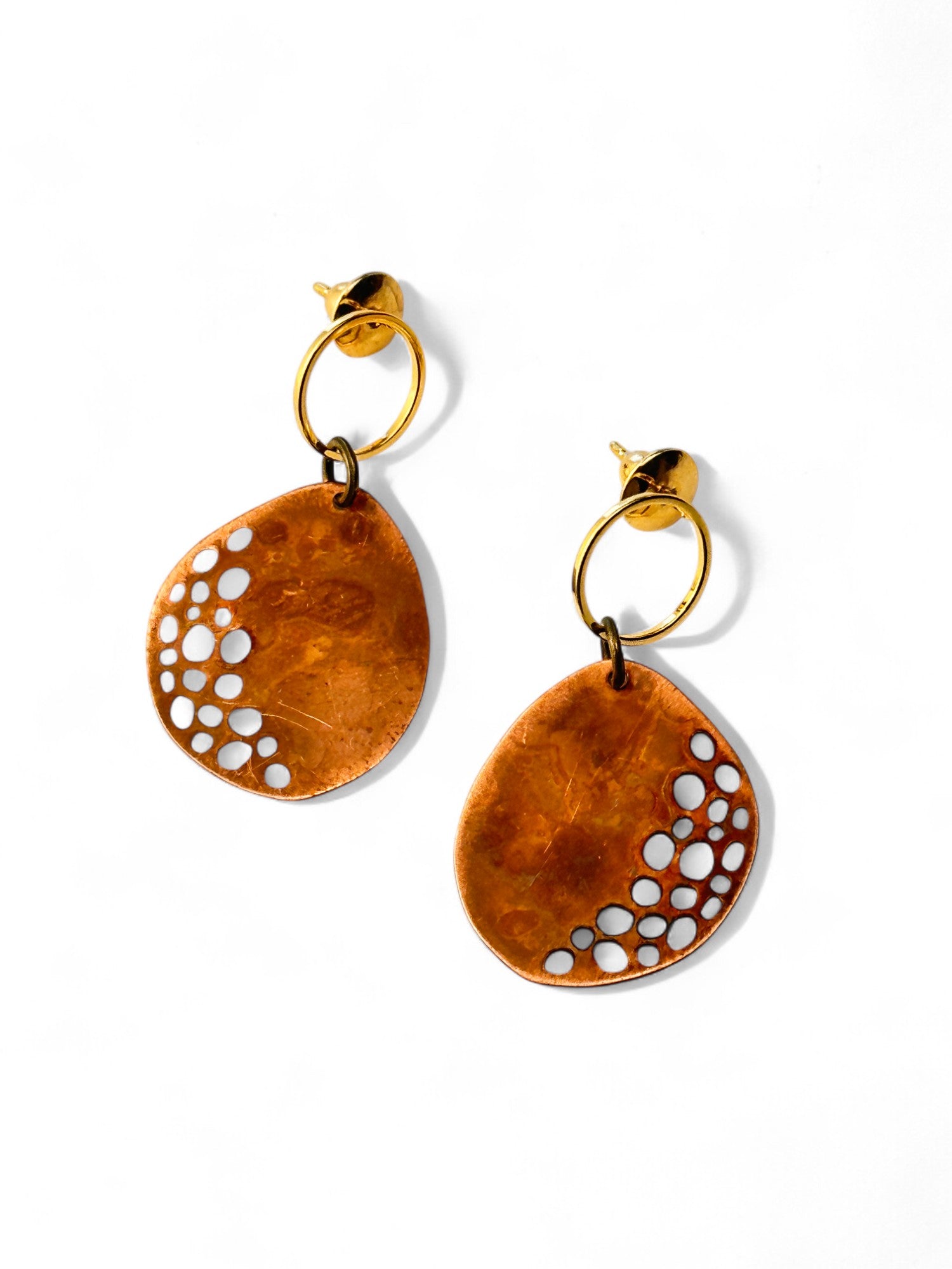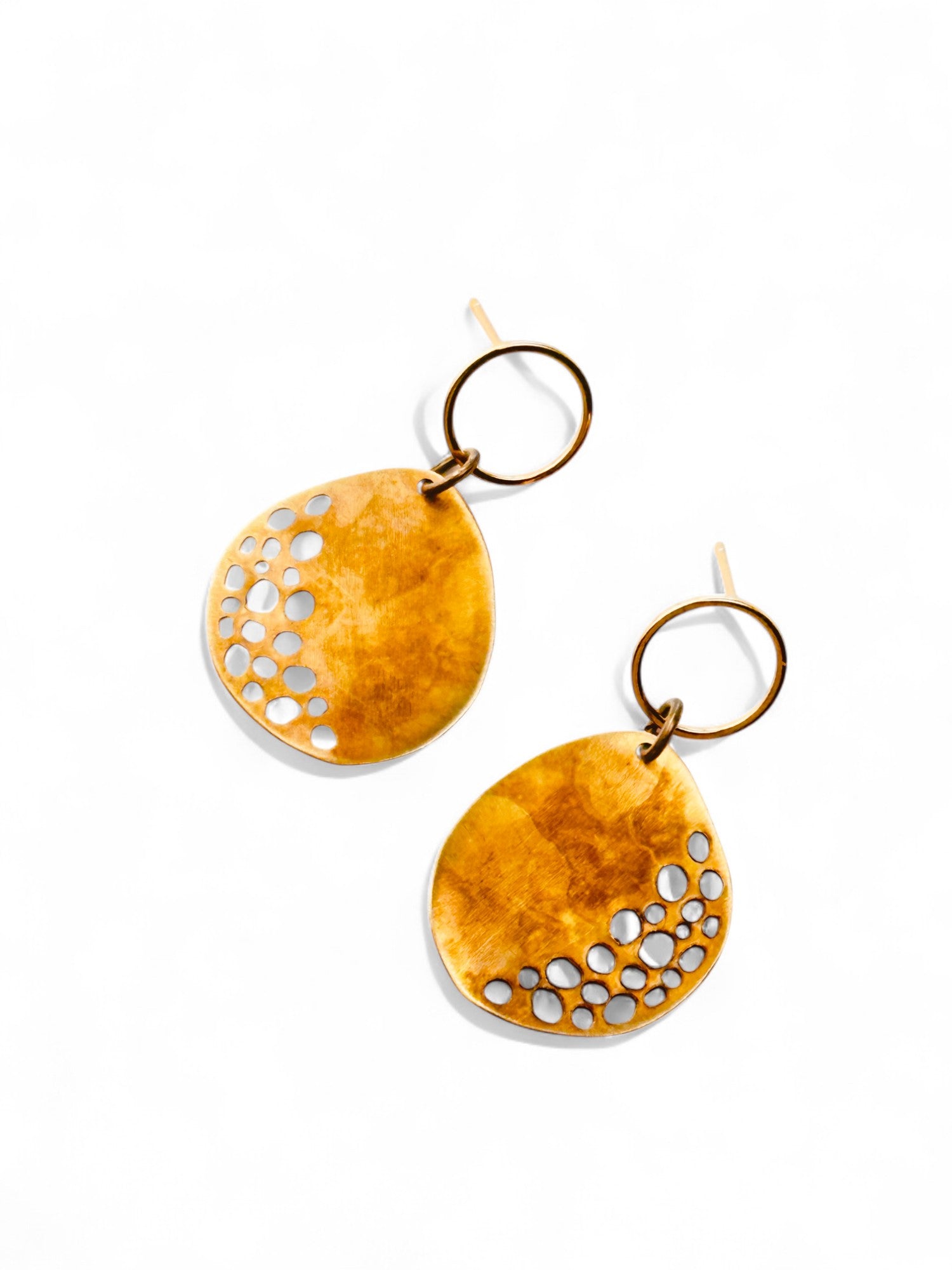 Brincos stud Portinho da Arrábida, com oxidações naturais. Stud circular com banho de ouro.