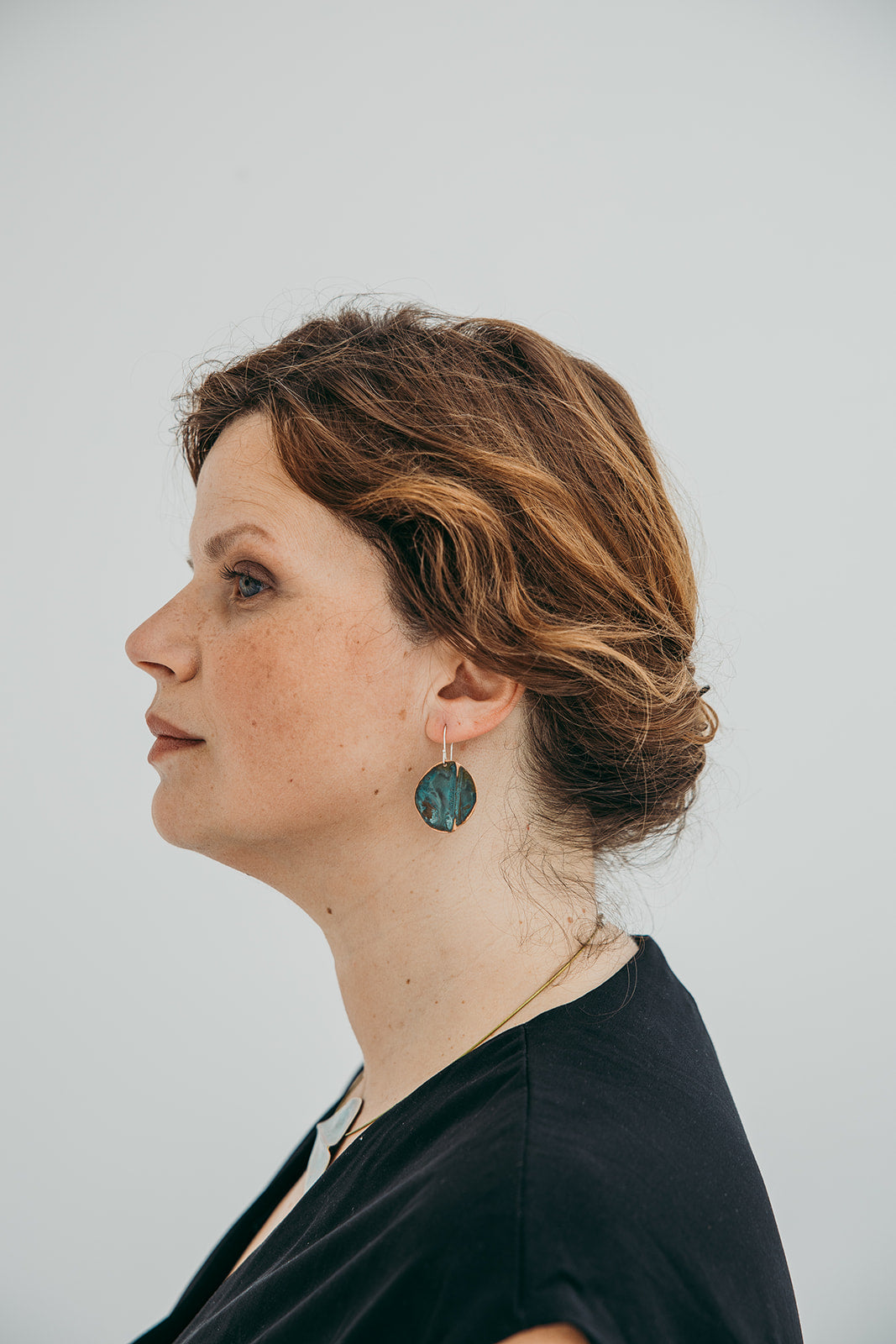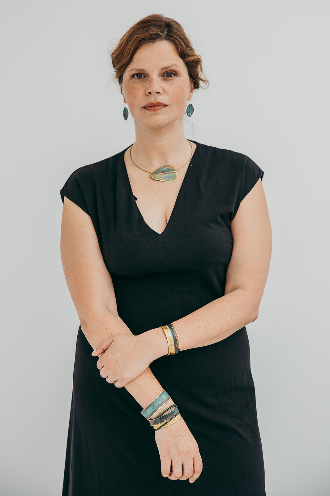A imagem principal do produto mostra a peça disponível para compra, mas procuramos sempre incluir uma fotografia de contexto, com a peça usada por uma modelo ou em cenário. Essa foto pode não corresponder exatamente à peça que que receberá, podendo ser de outro metal ou de uma tonalidade diferente de oxidação; serve apenas como exemplo de como a peça fica no uso.