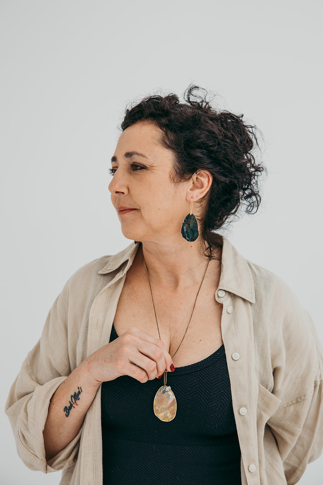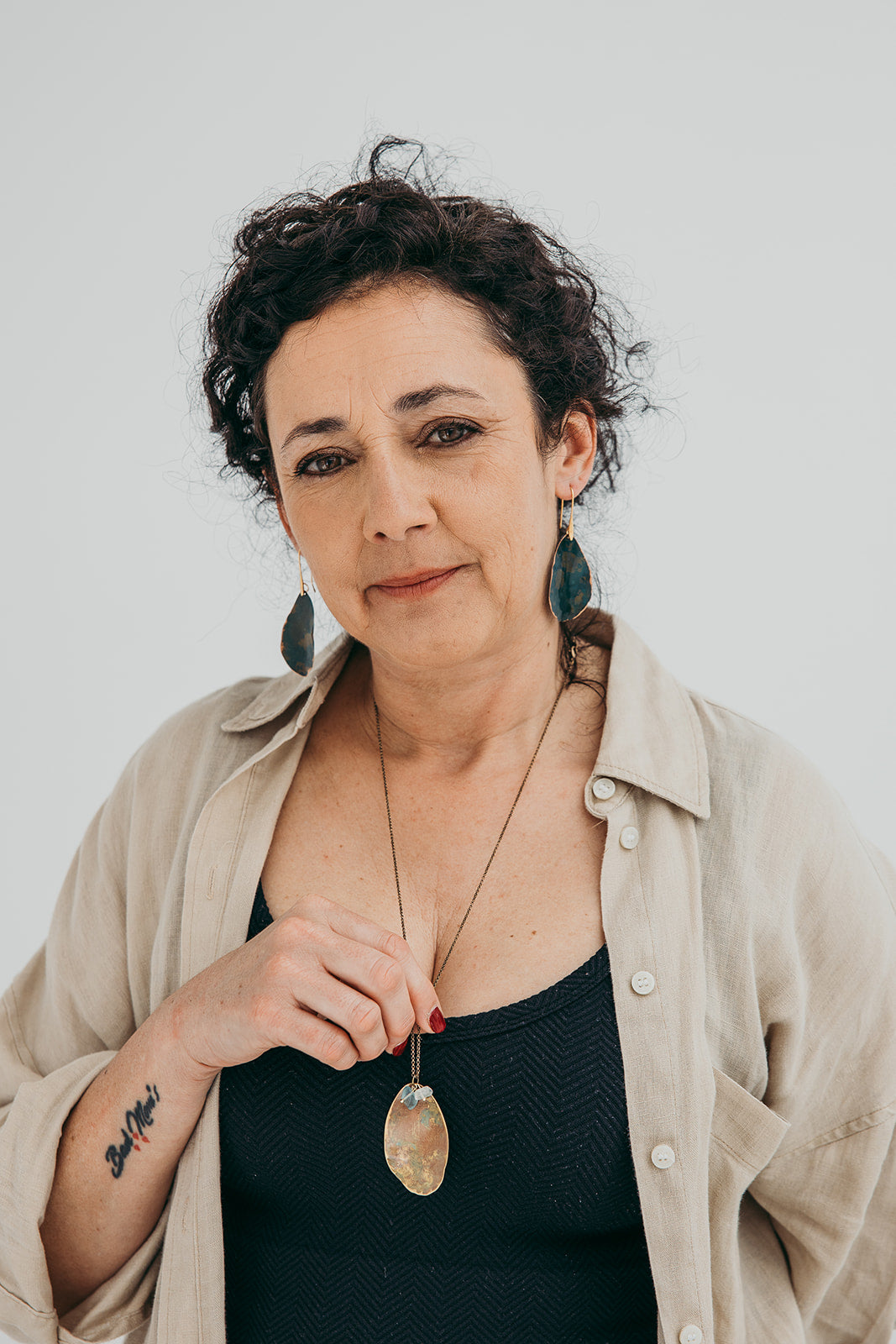 A imagem principal do produto mostra a peça disponível para compra, mas procuramos sempre incluir uma fotografia de contexto, com a peça usada por uma modelo ou em cenário. Essa foto pode não corresponder exatamente à peça que que receberá, podendo ser de outro metal ou de uma tonalidade diferente de oxidação; serve apenas como exemplo de como a peça fica no uso.
