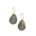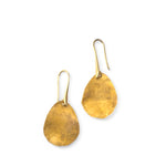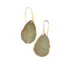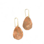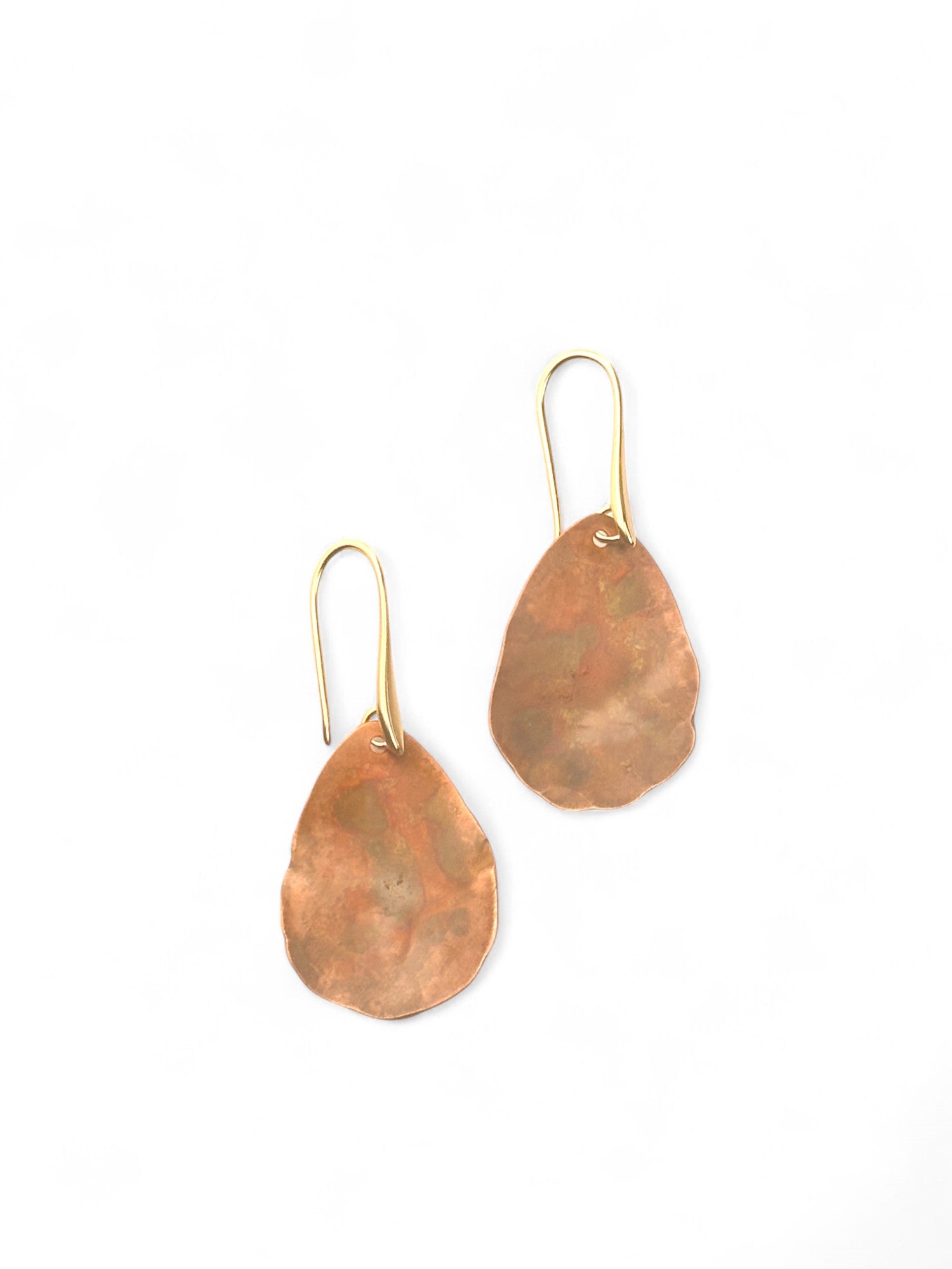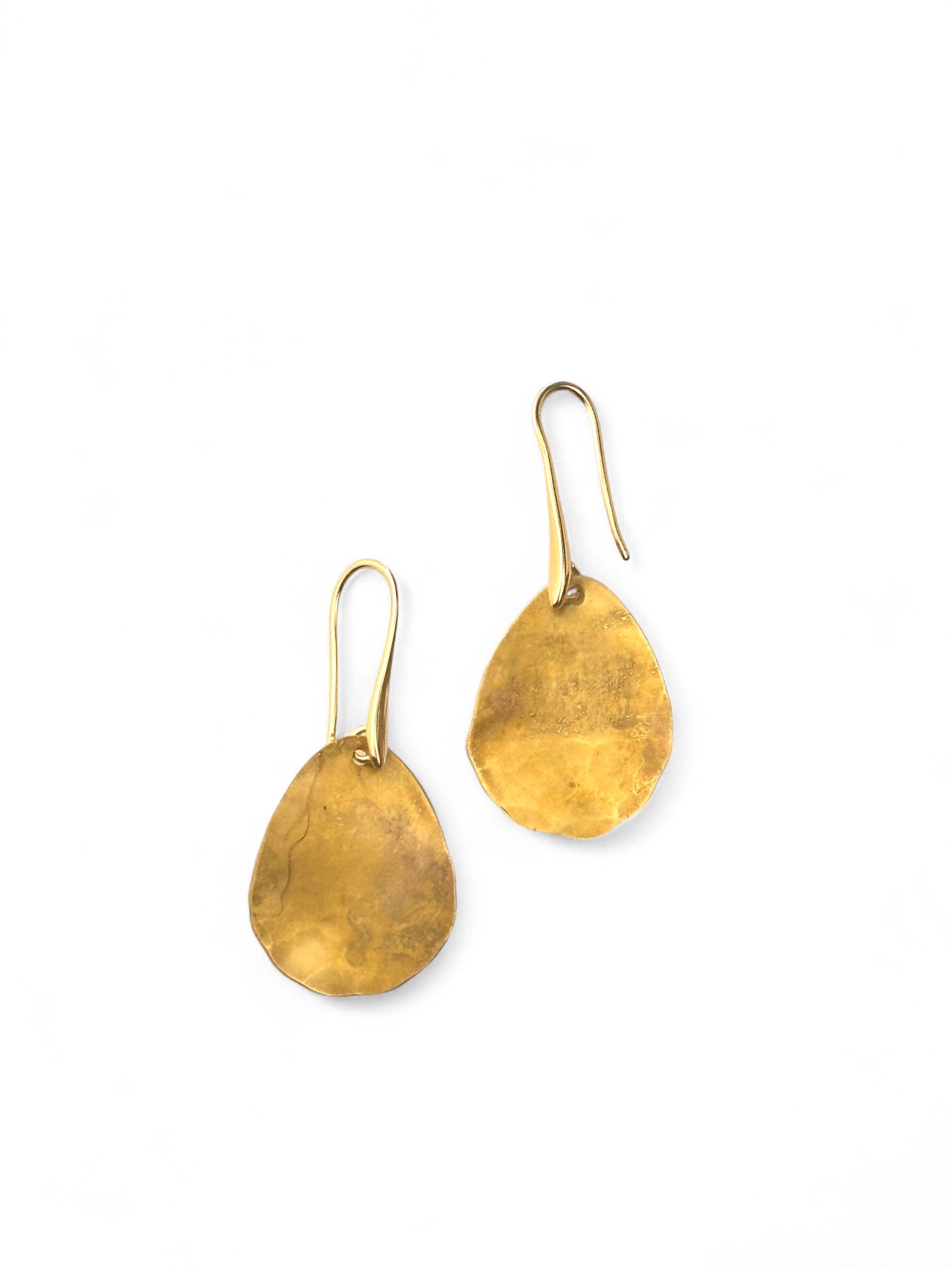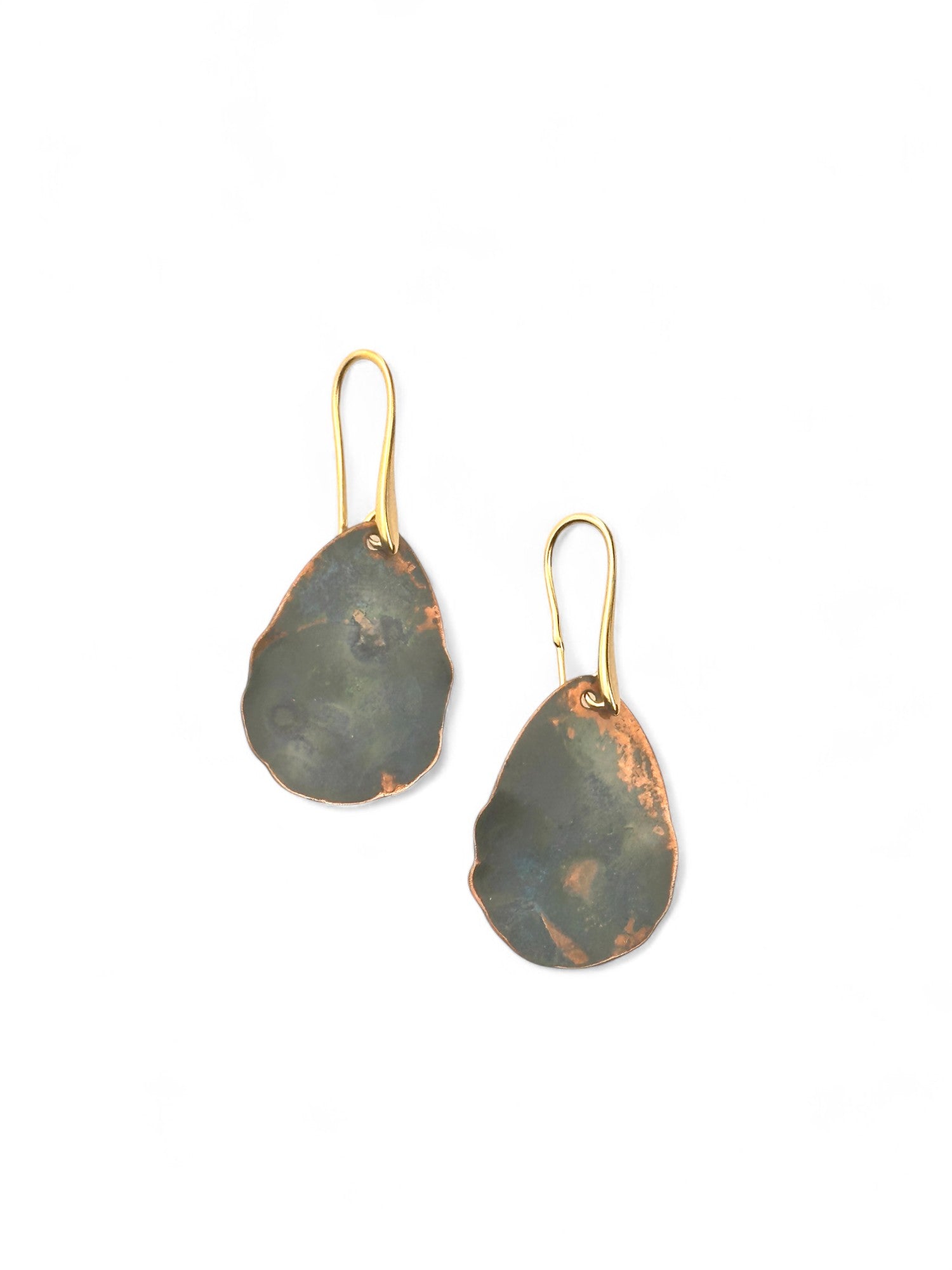 Brincos Jacarandá mini. Cortados, martelados e oxidados manualmente. Gancho aberto com banho de ouro.