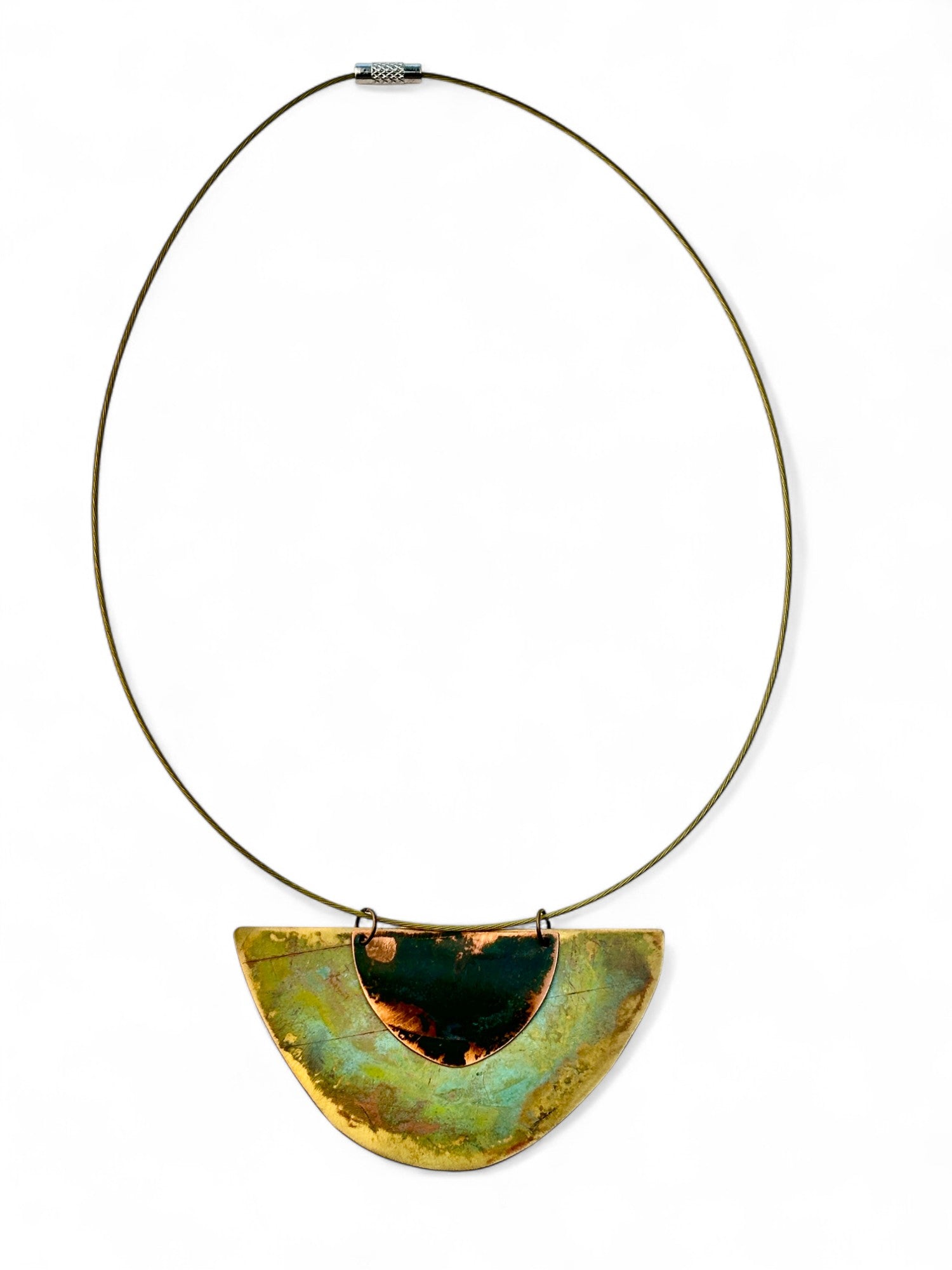 Gargantilha Massai. Cortado manualmente e oxidado, cabo de aço e fecho magnético