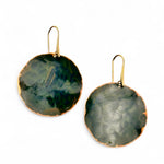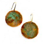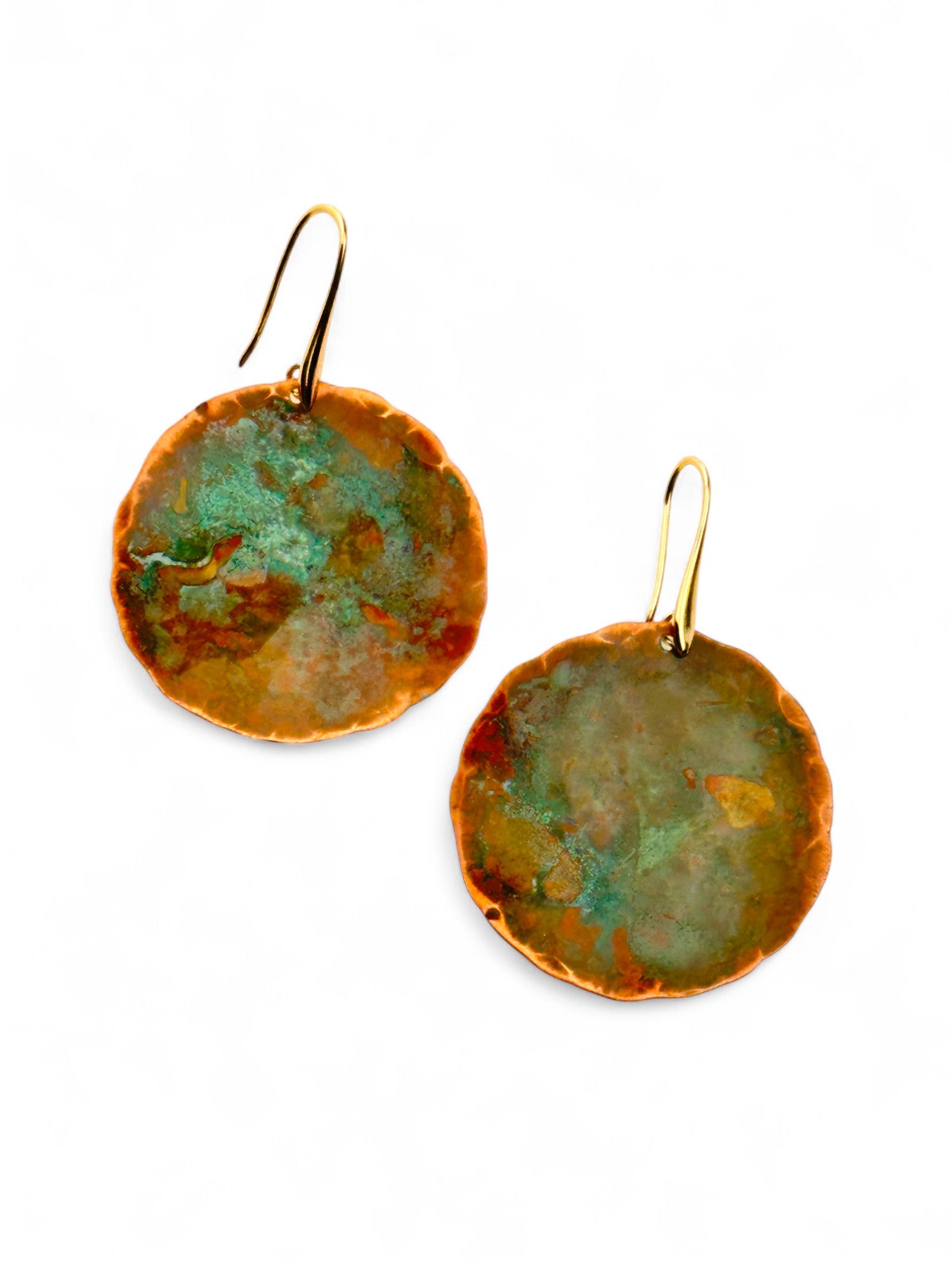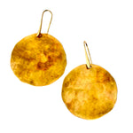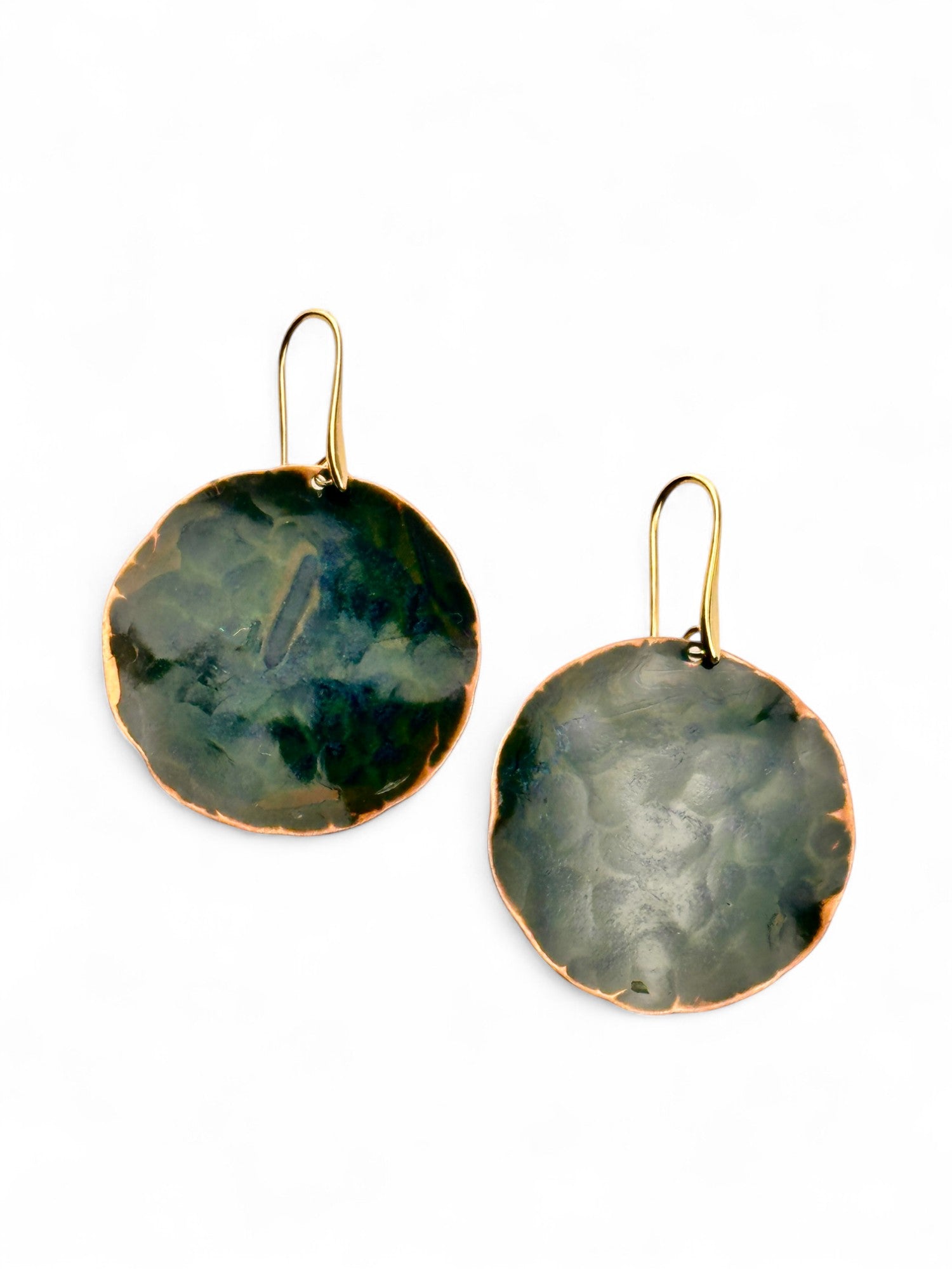 Brincos Moon grandes. Cortados, martelados e oxidados manualmente. Gancho aberto com banho de ouro.
