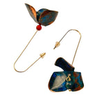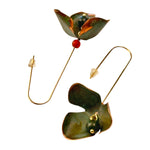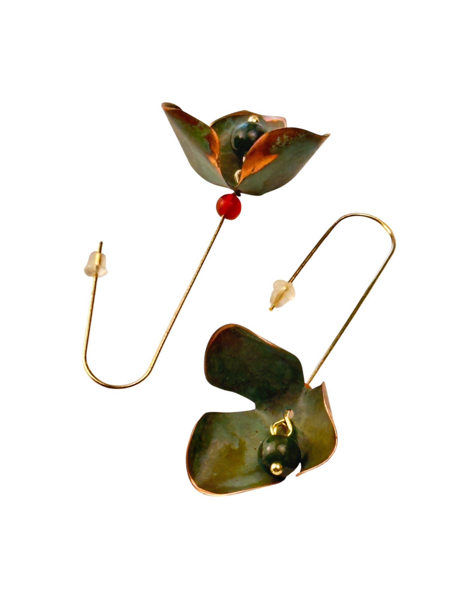 Brincos Orchid com pedras naturais. Cortadas, moldadas e oxidadas manualmente. Gancho longo aberto com banho de ouro.