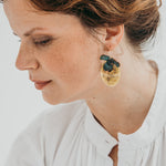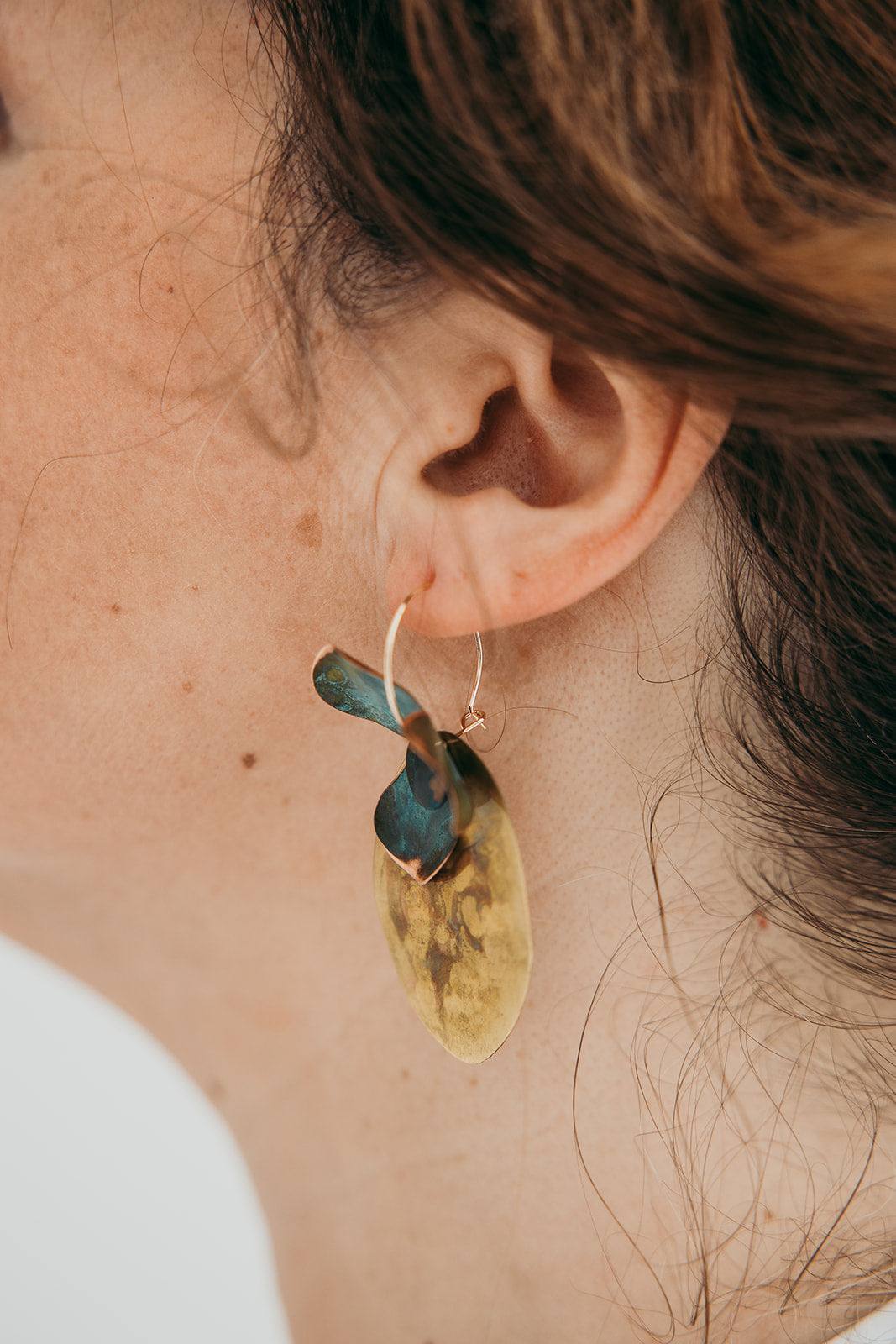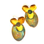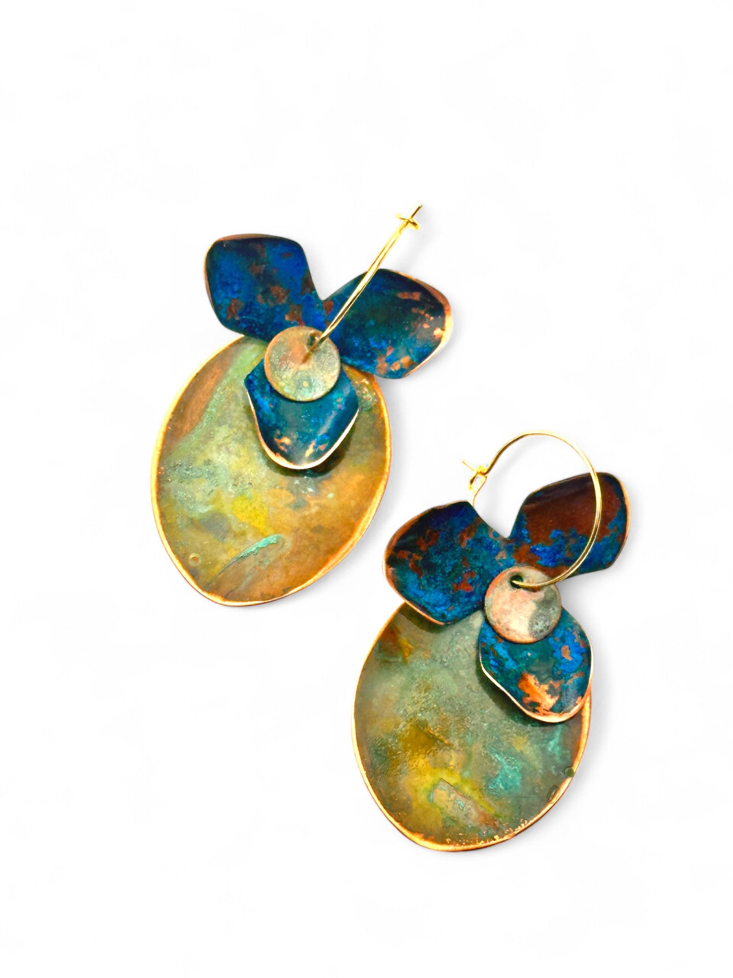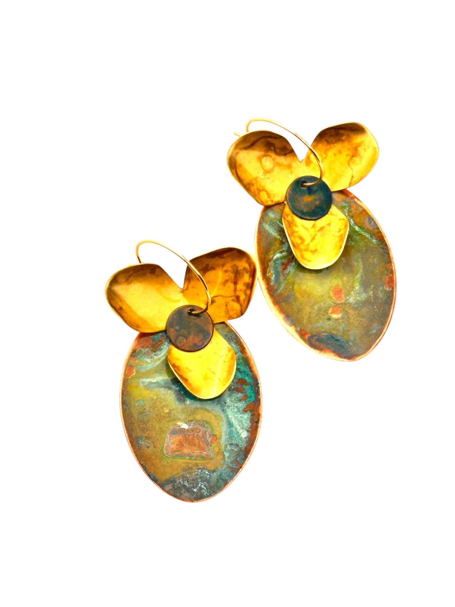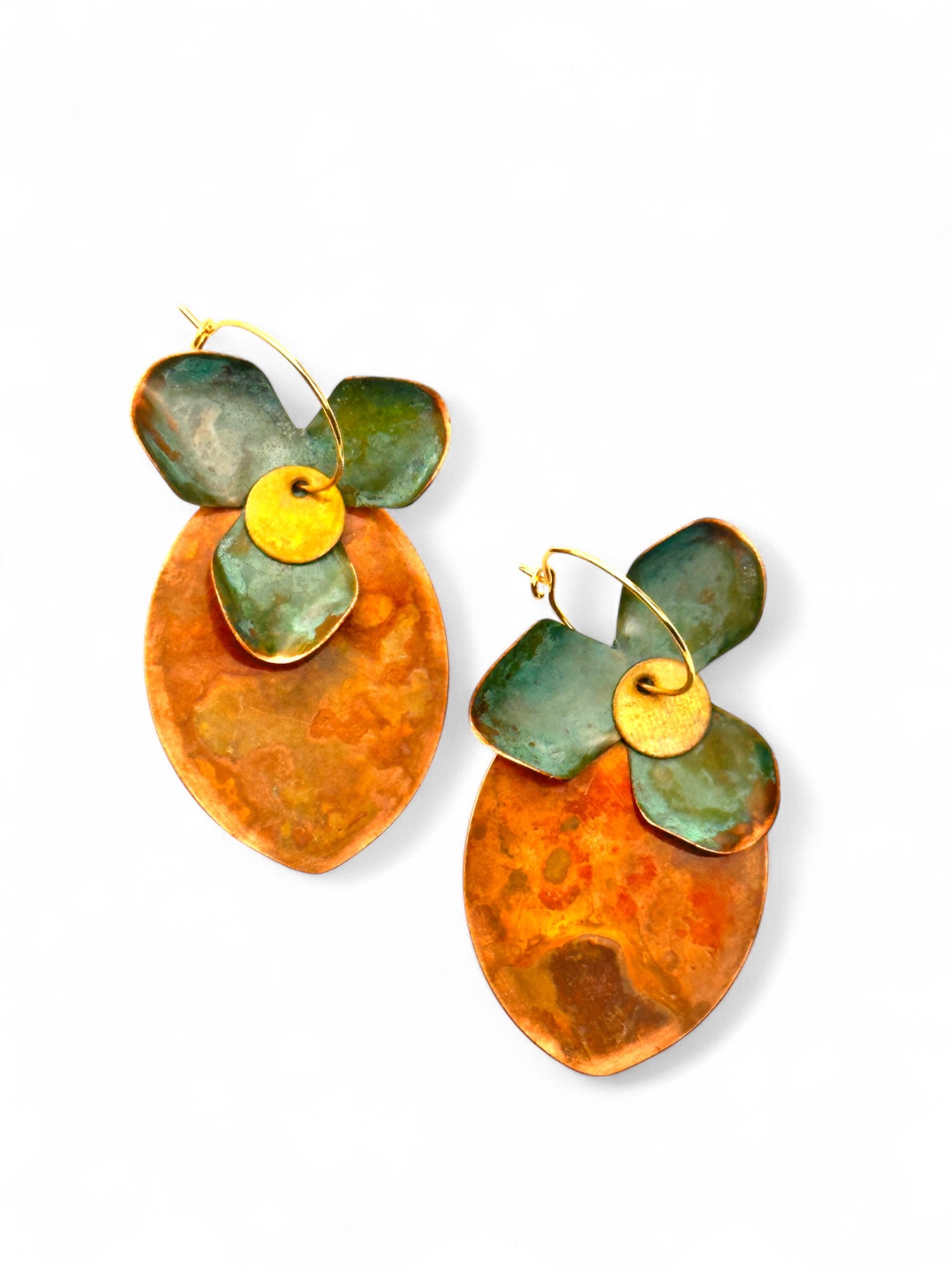 Argolas inspiradas em orquídeas em chapa recortada à mão, dobrada e laminada, com argola fechada com banho de ouro