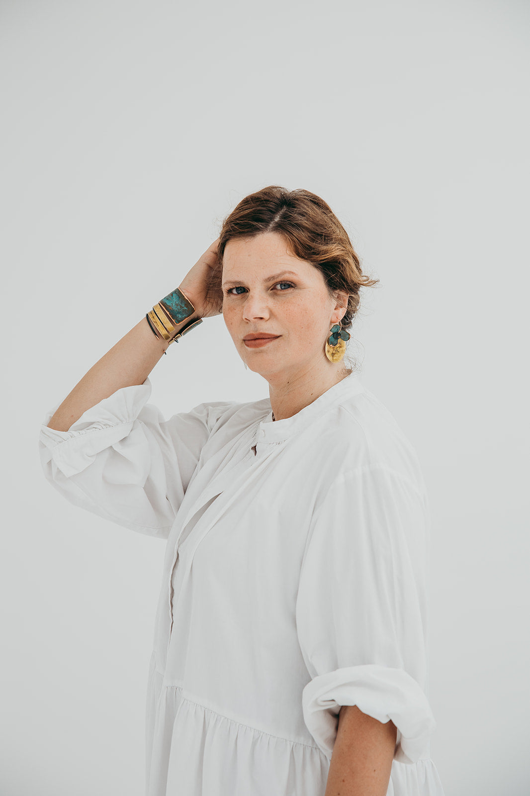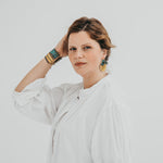 A imagem principal do produto mostra a peça disponível para compra, mas procuramos sempre incluir uma fotografia de contexto, com a peça usada por uma modelo ou em cenário. Essa foto pode não corresponder exatamente à peça que que receberá, podendo ser de outro metal ou de uma tonalidade diferente de oxidação; serve apenas como exemplo de como a peça fica no uso.