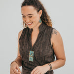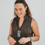 A imagem principal do produto mostra a peça disponível para compra, mas procuramos sempre incluir uma fotografia de contexto, com a peça usada por uma modelo ou em cenário. Essa foto pode não corresponder exatamente à peça que que receberá, podendo ser de outro metal ou de uma tonalidade diferente de oxidação; serve apenas como exemplo de como a peça fica no uso.