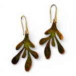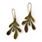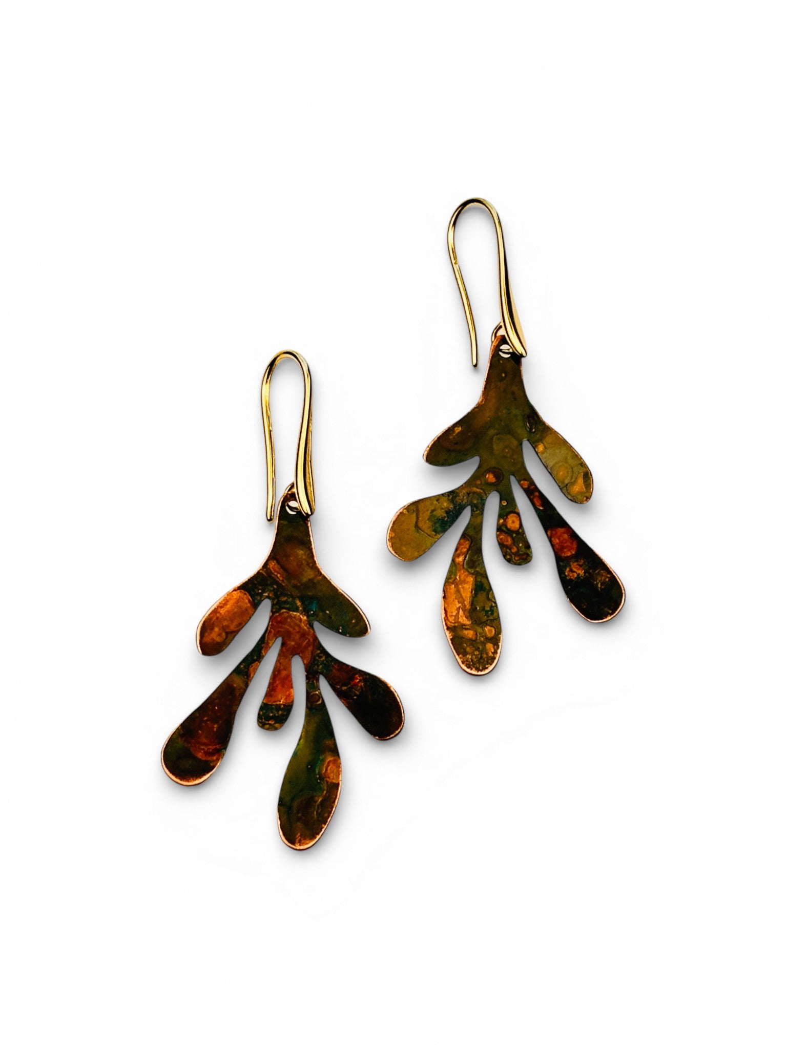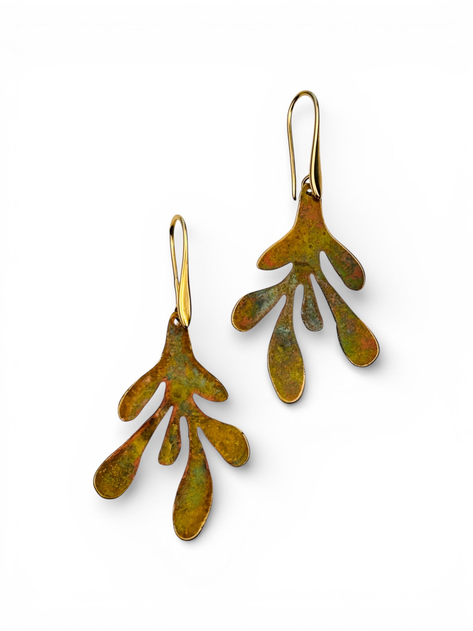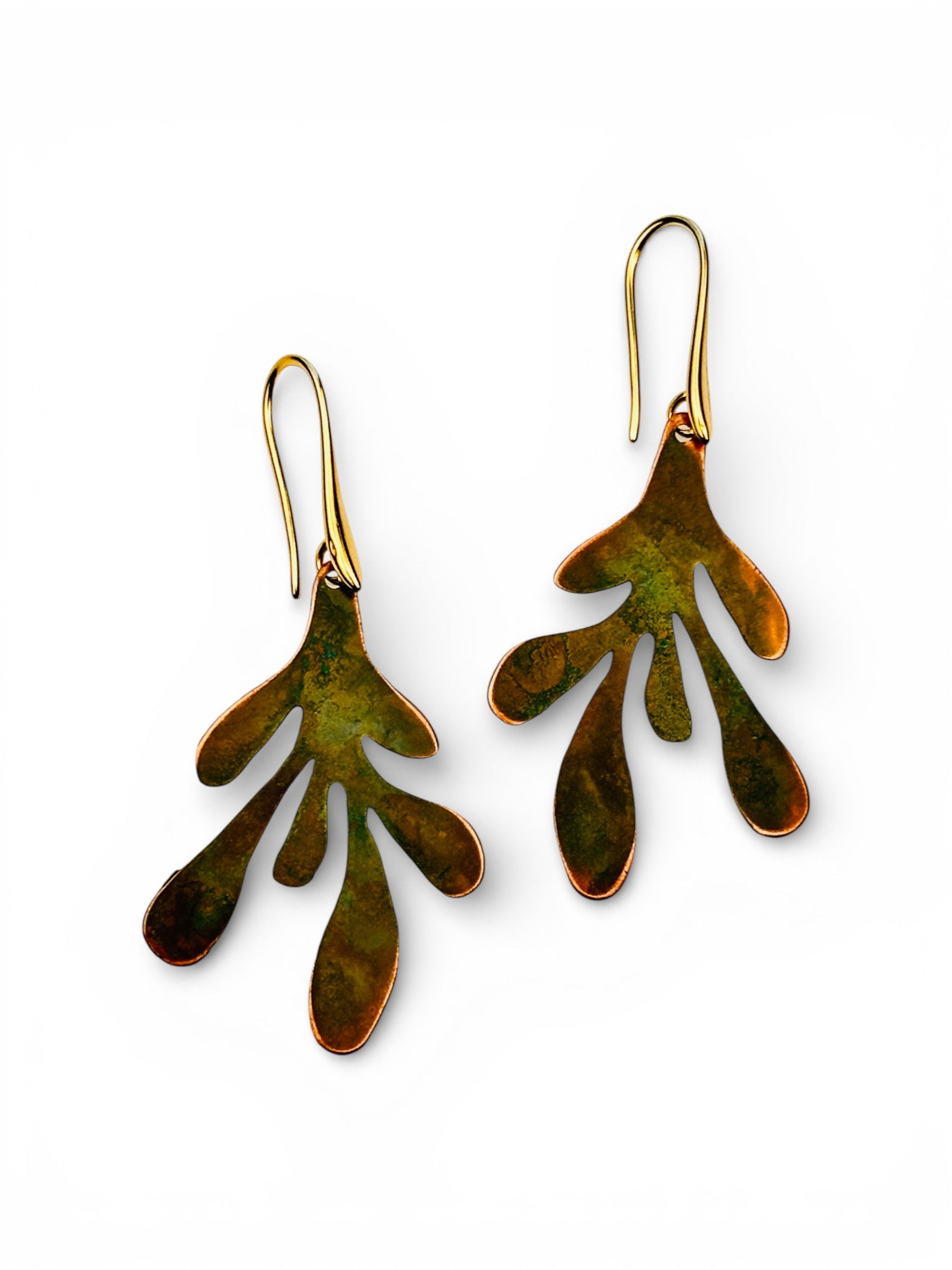 Brincos leves em cobre ou latão oxidado. Gancho aberto em latão com banho de ouro.