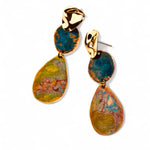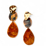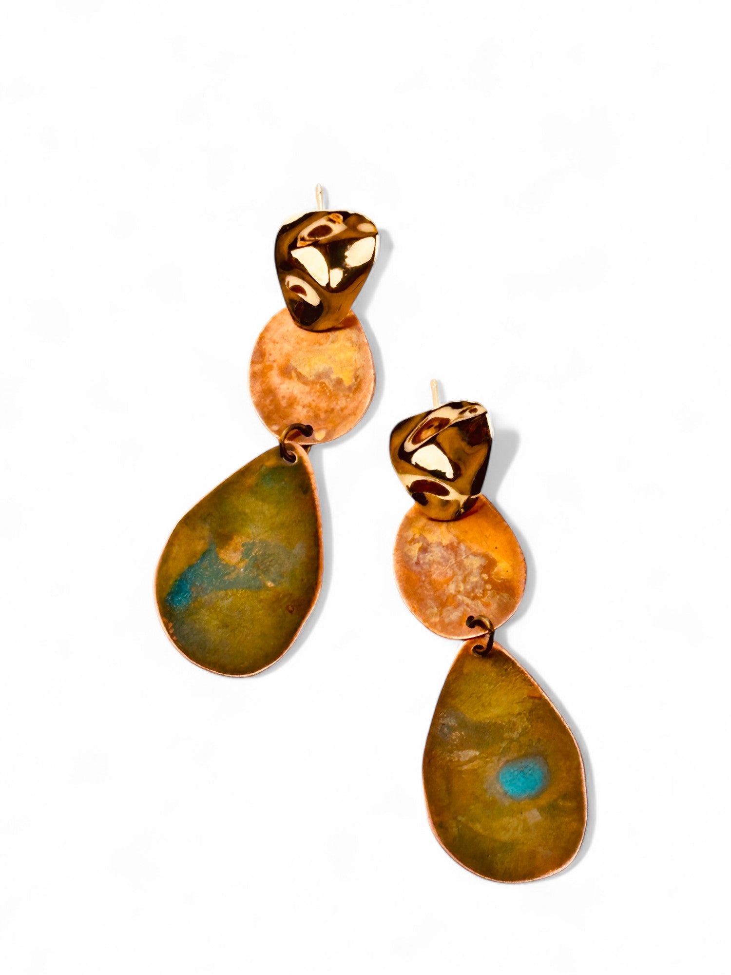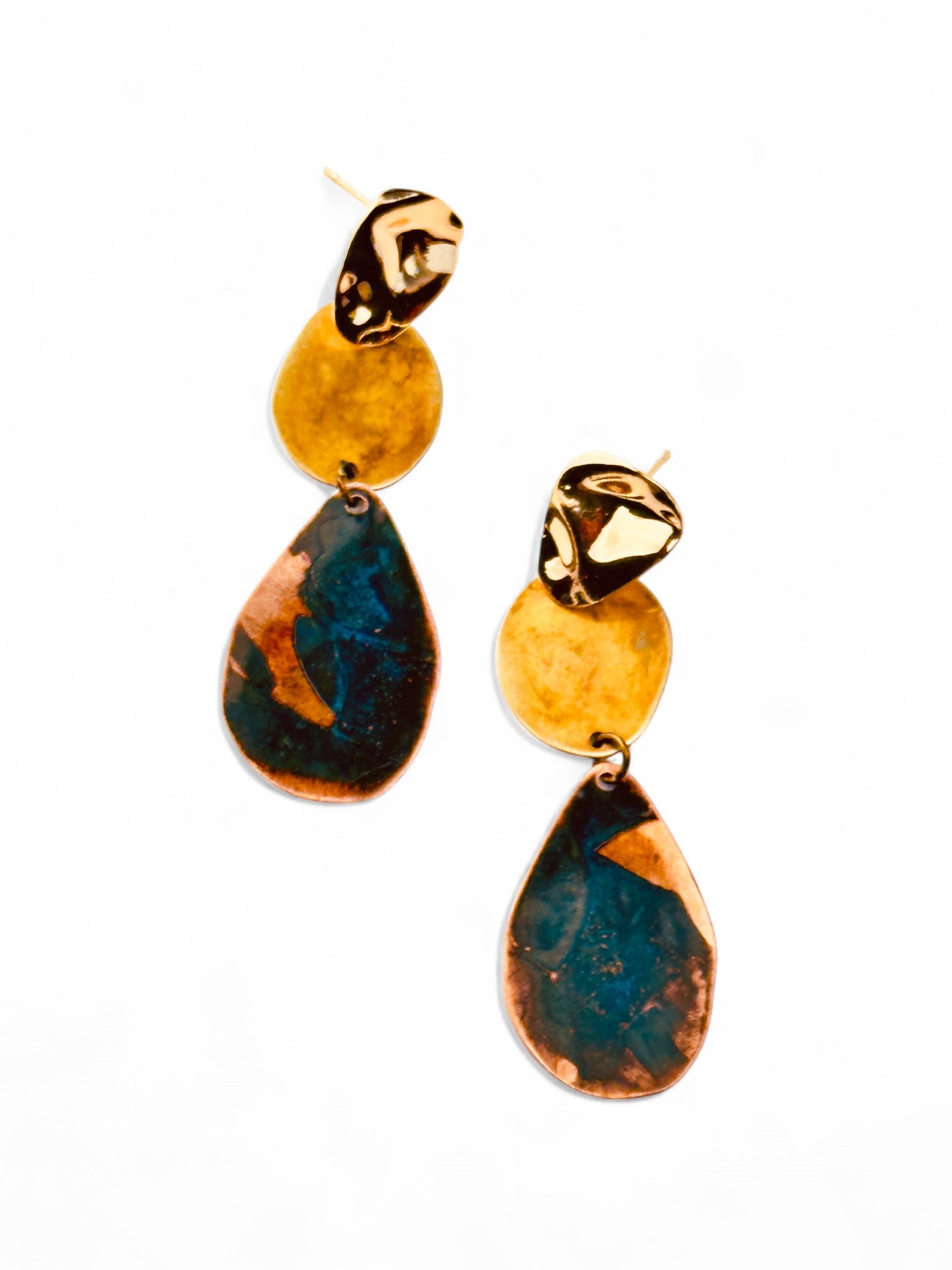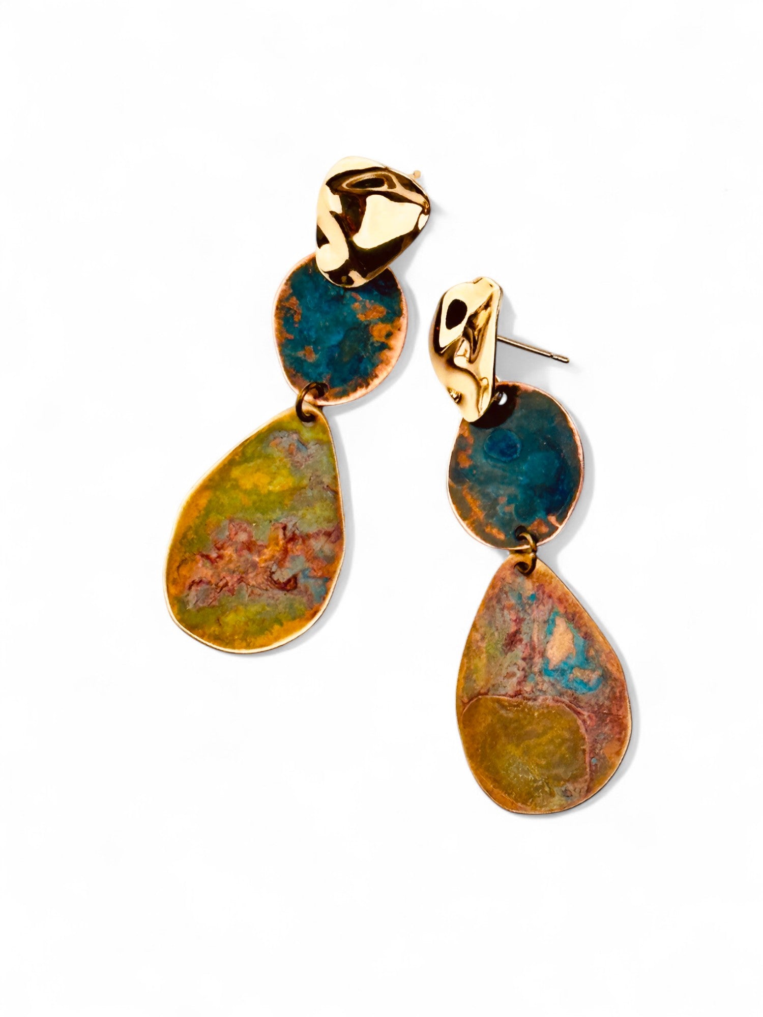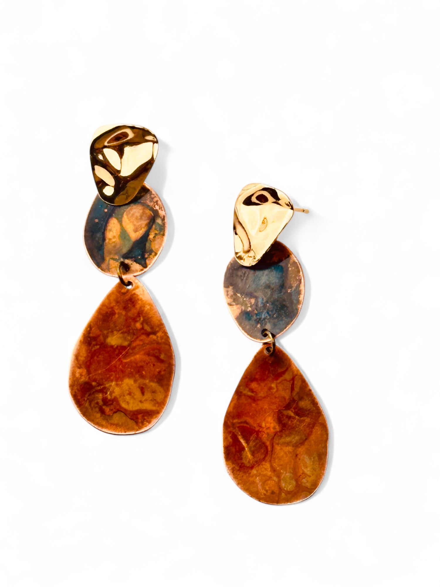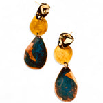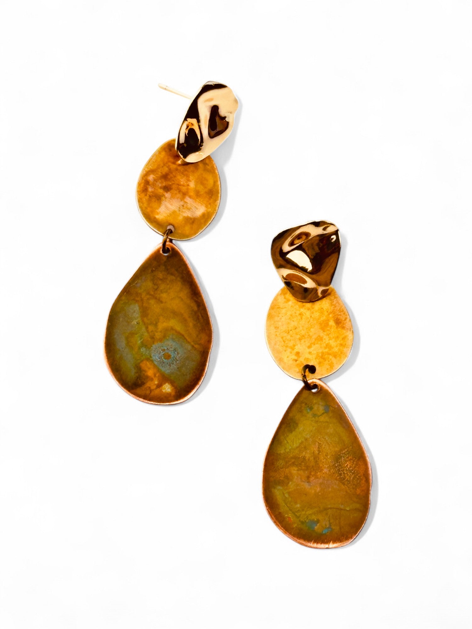 Os brincos stud Valônia, são cortados e oxidados manualmente. Stud orgânico com banho de ouro.