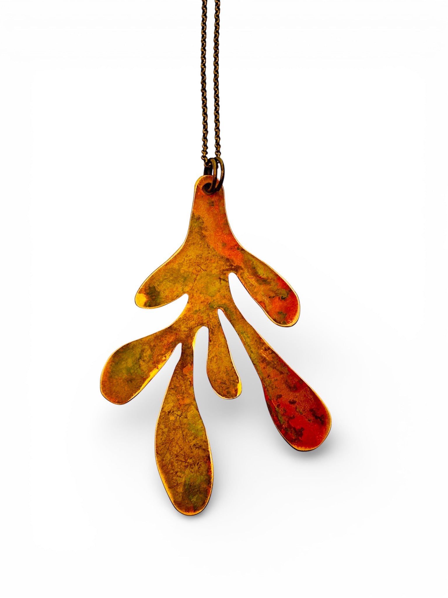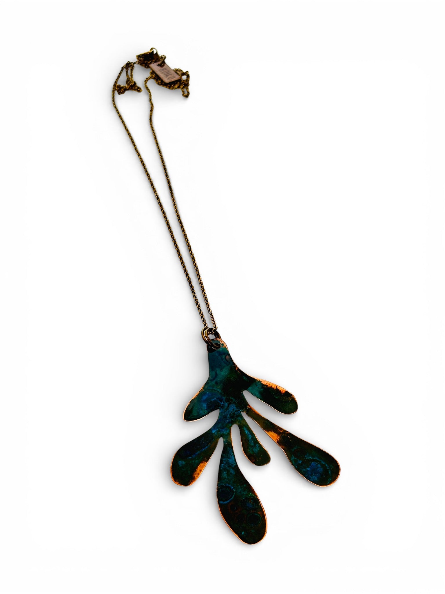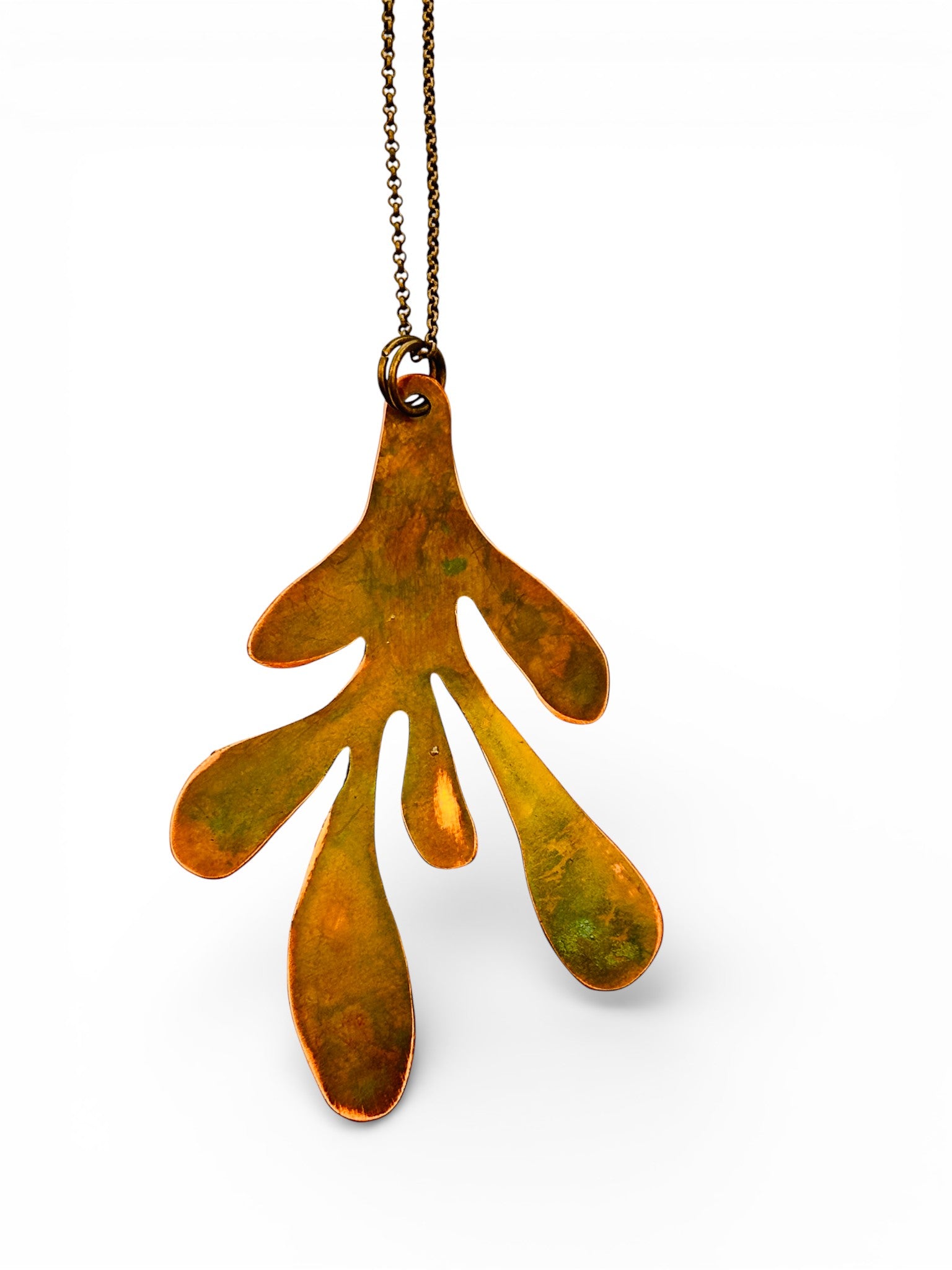 Colar com uma peça de cobre ou latão oxidada. Corrente de latão de 70cm