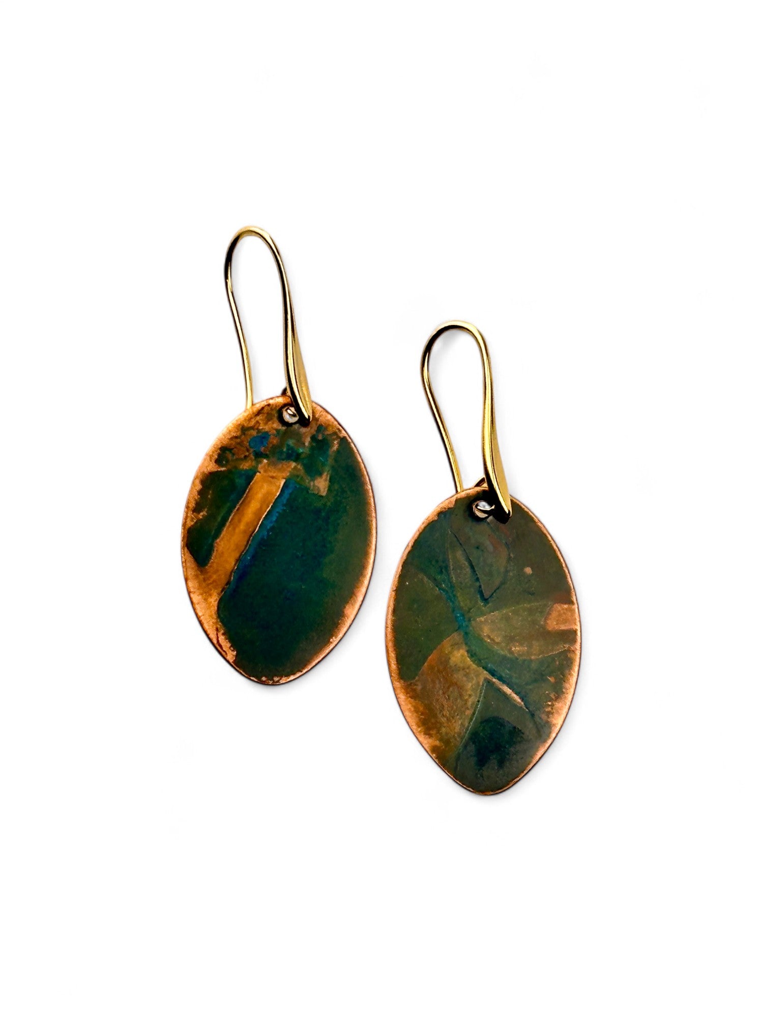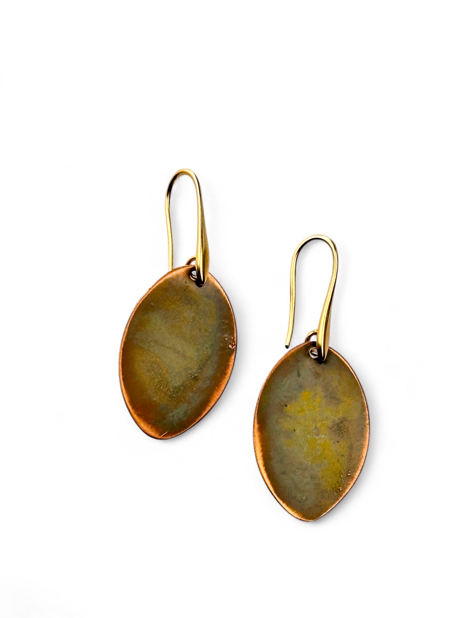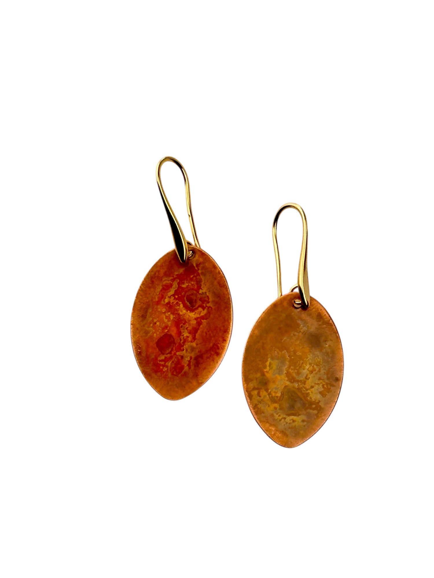 Brincos Seed mini. Cortados e oxidados manualmente. Gancho aberto com banho de ouro.