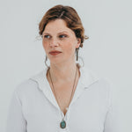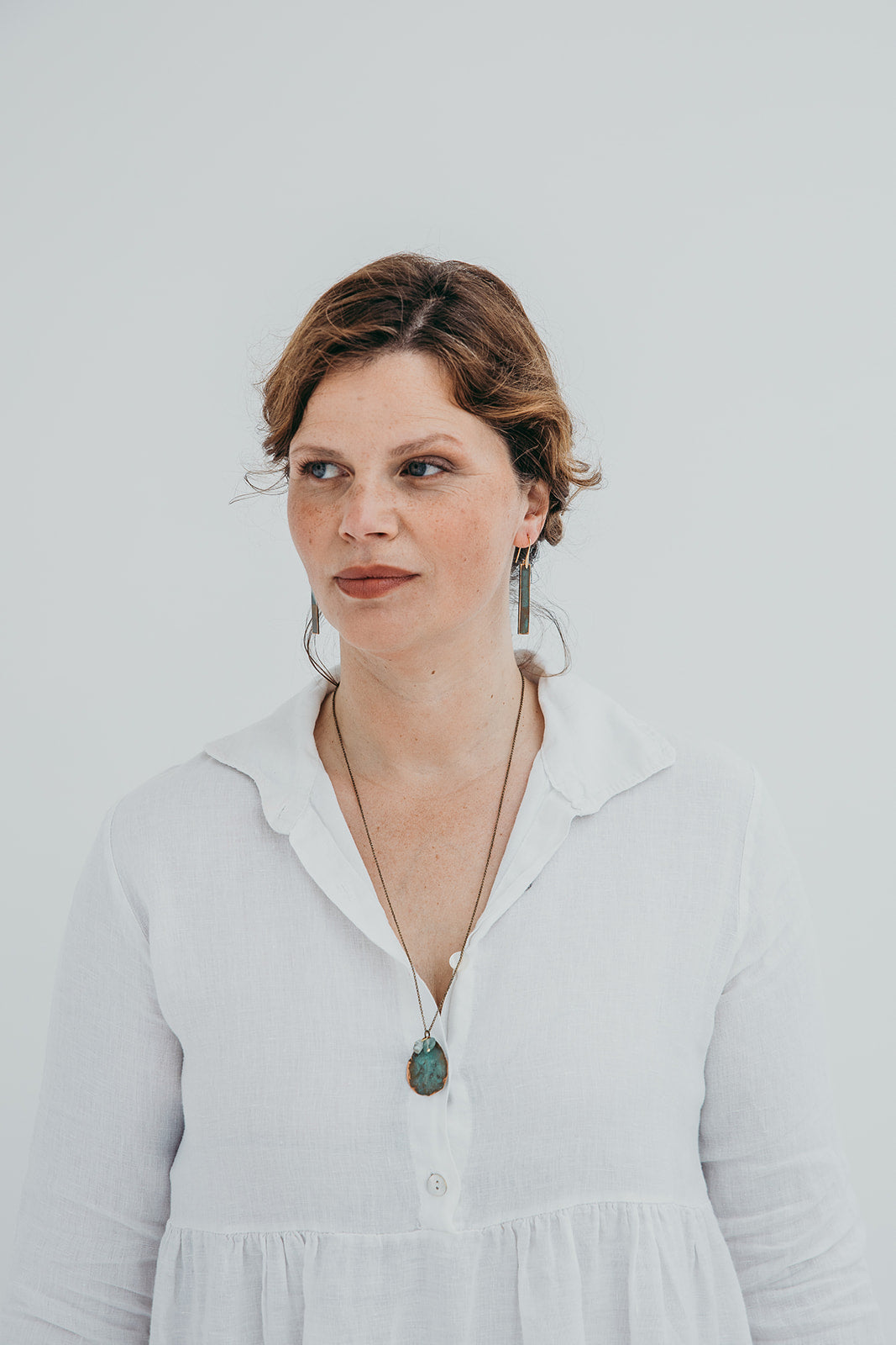 A imagem principal do produto mostra a peça disponível para compra, mas procuramos sempre incluir uma fotografia de contexto, com a peça usada por uma modelo ou em cenário. Essa foto pode não corresponder exatamente à peça que que receberá, podendo ser de outro metal ou de uma tonalidade diferente de oxidação; serve apenas como exemplo de como a peça fica no uso.