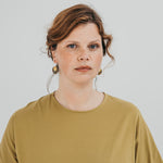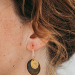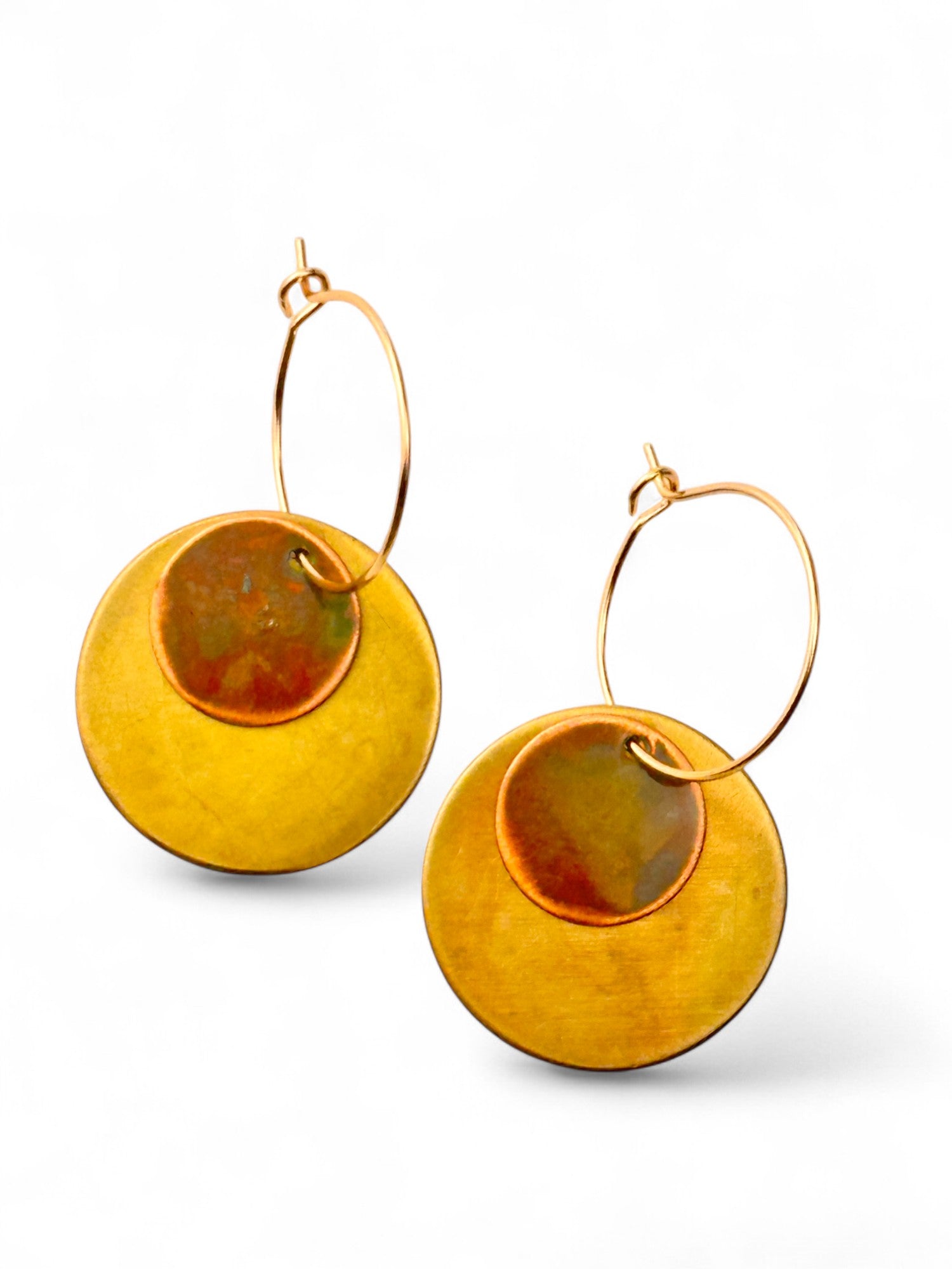 Small Hoiko Basic hoops with oxidized discs. Gold-plated closed hoop.