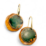 Small double moon earrings. Hand-cut, hammered, and oxidized. Open hook with gold plating.