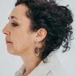 Small double seed earrings. Hand-cut and oxidized. Open hook with gold plating.