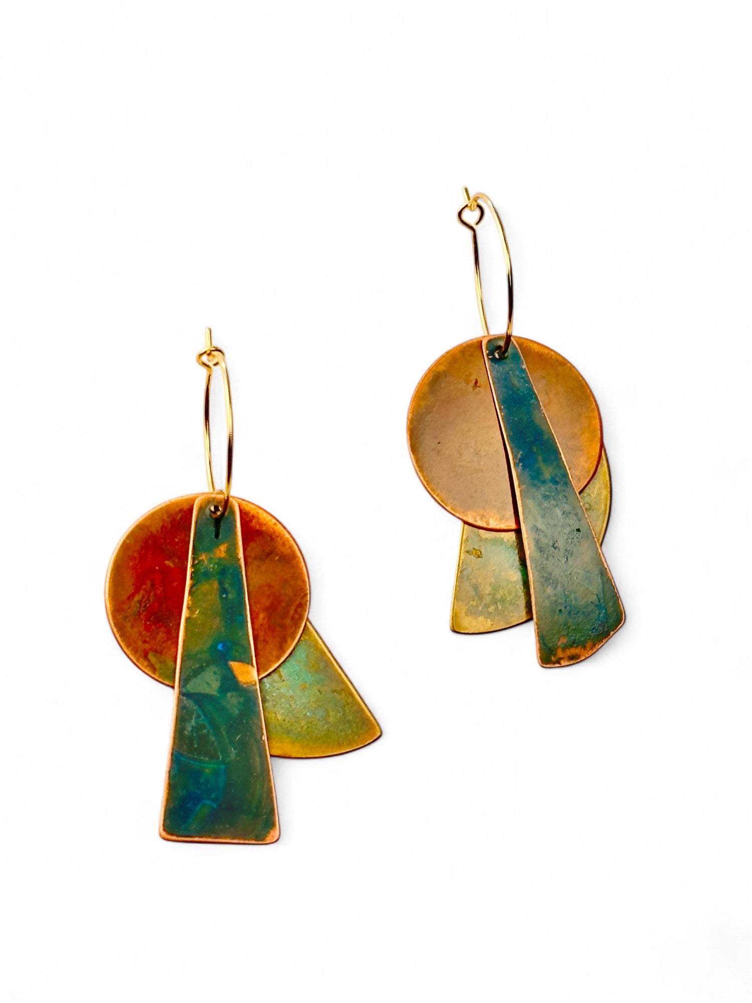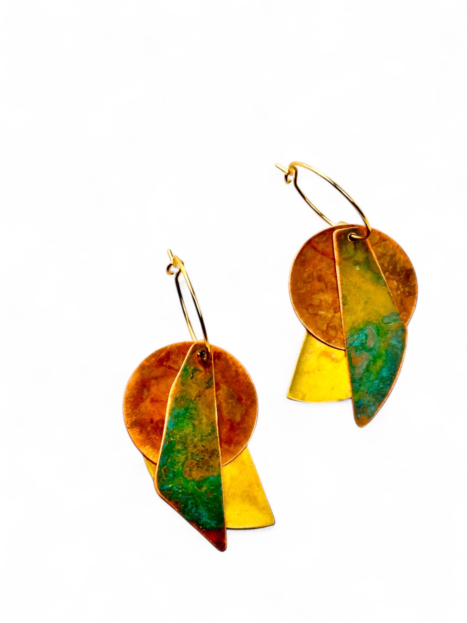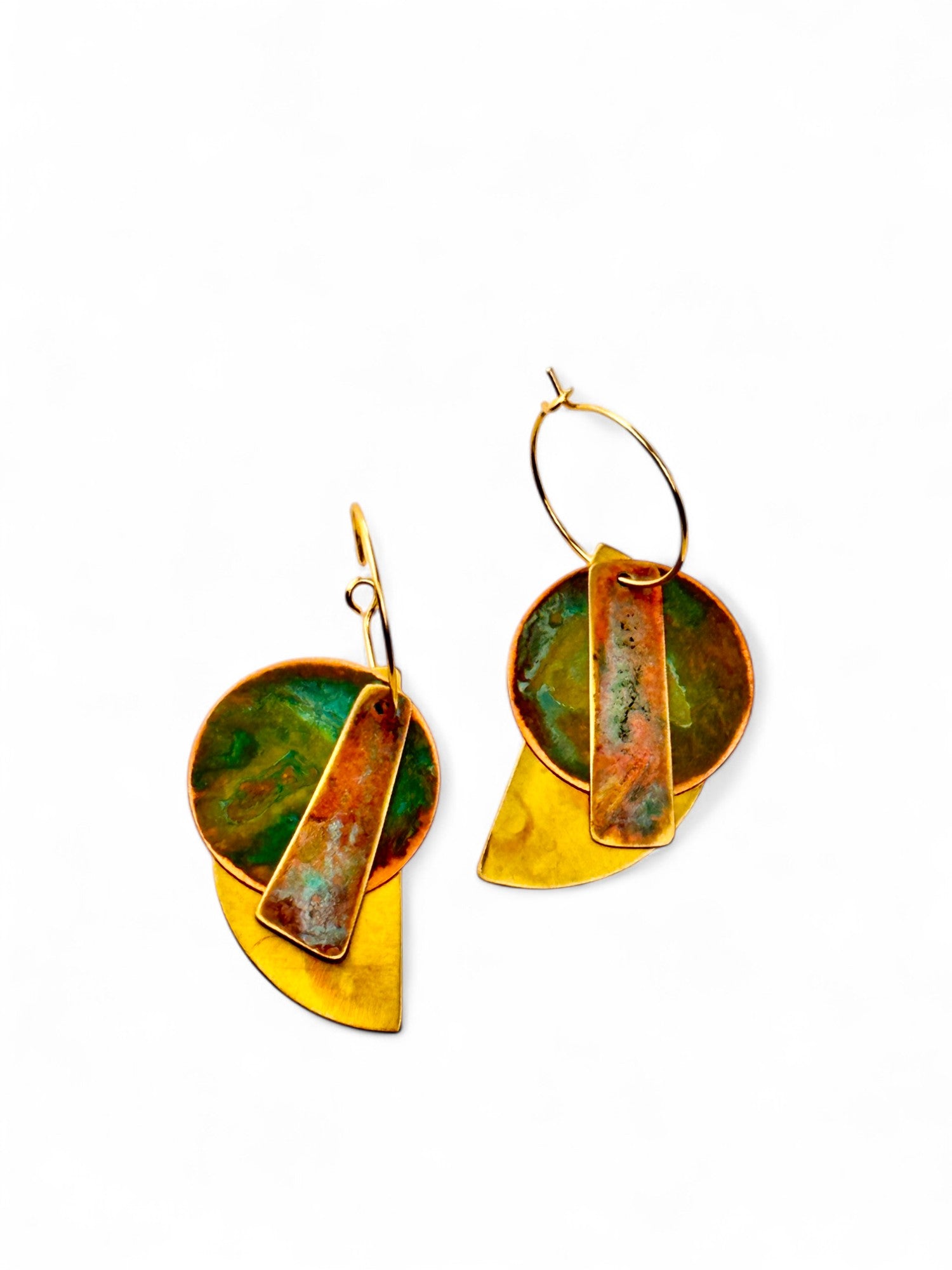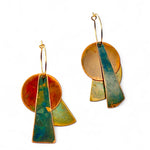 As argolas Kandinsky são todas peças únicas e o par é assimétrico. Cores e formas variadas, com argola fechada banhada a ouro.