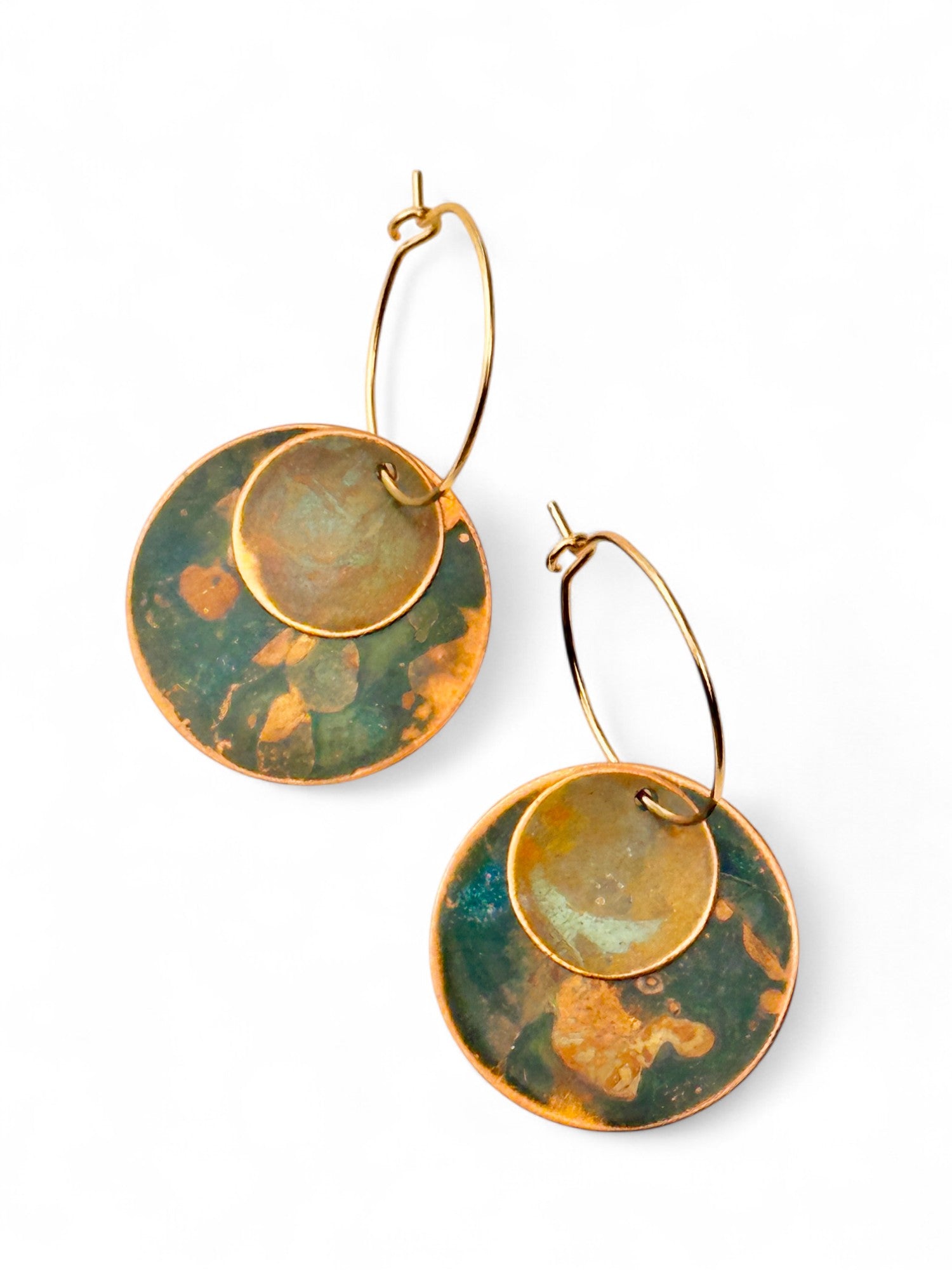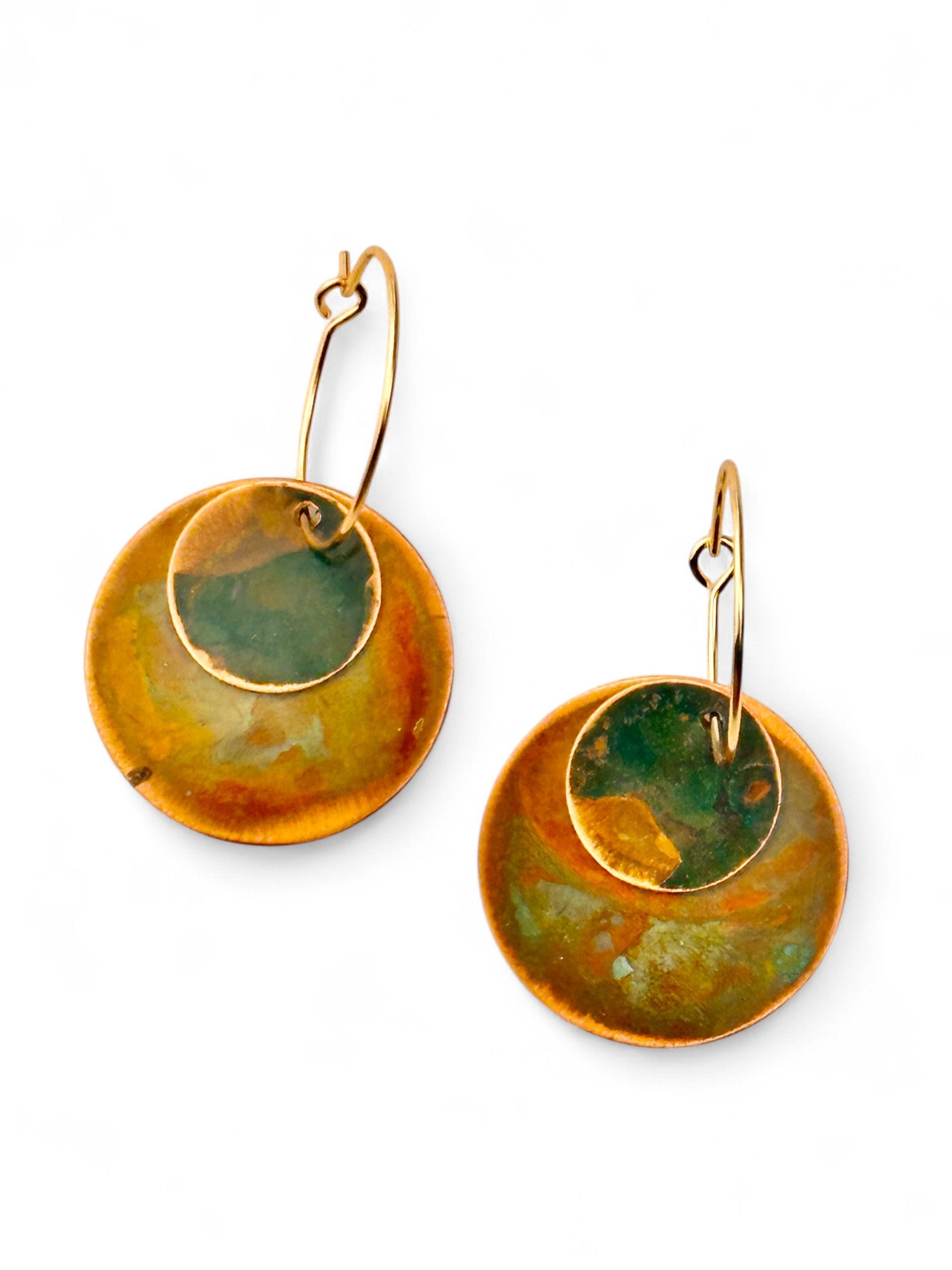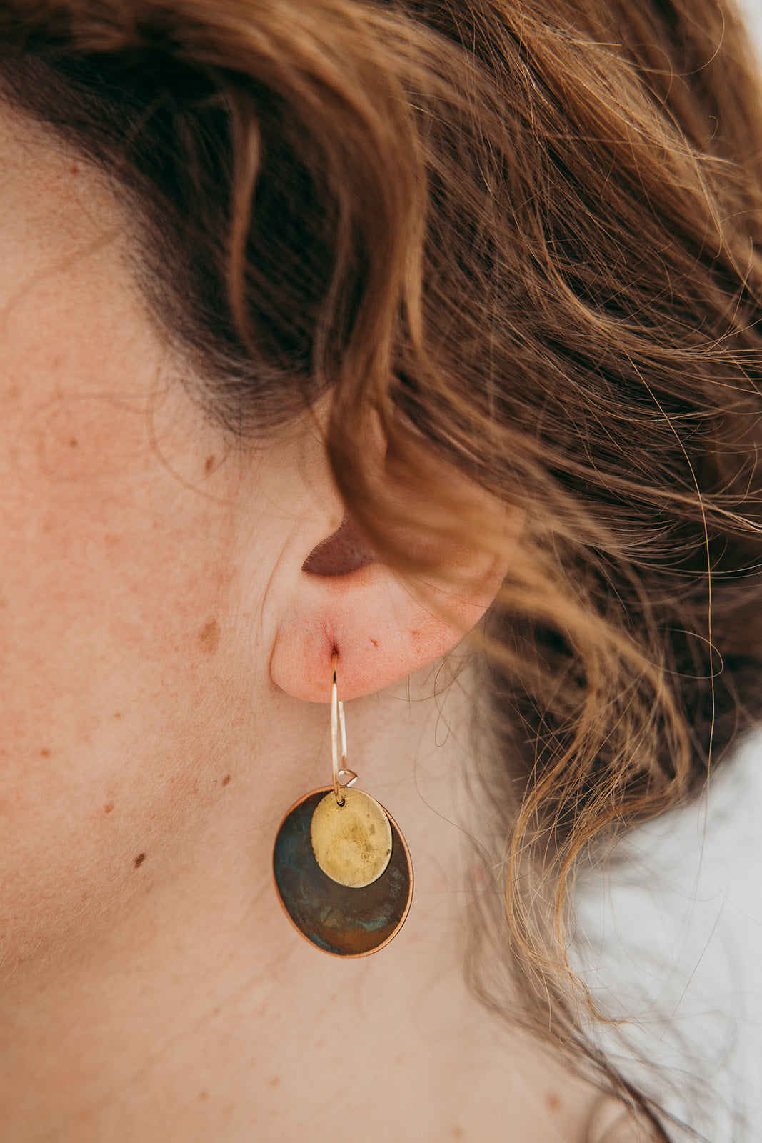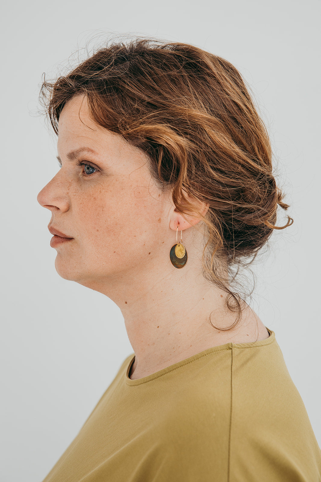 Argolas pequenas Hoiko Basic, com discos oxidados. Argola fechada com banho de ouro.