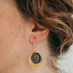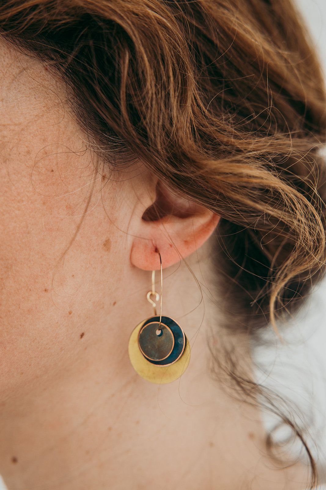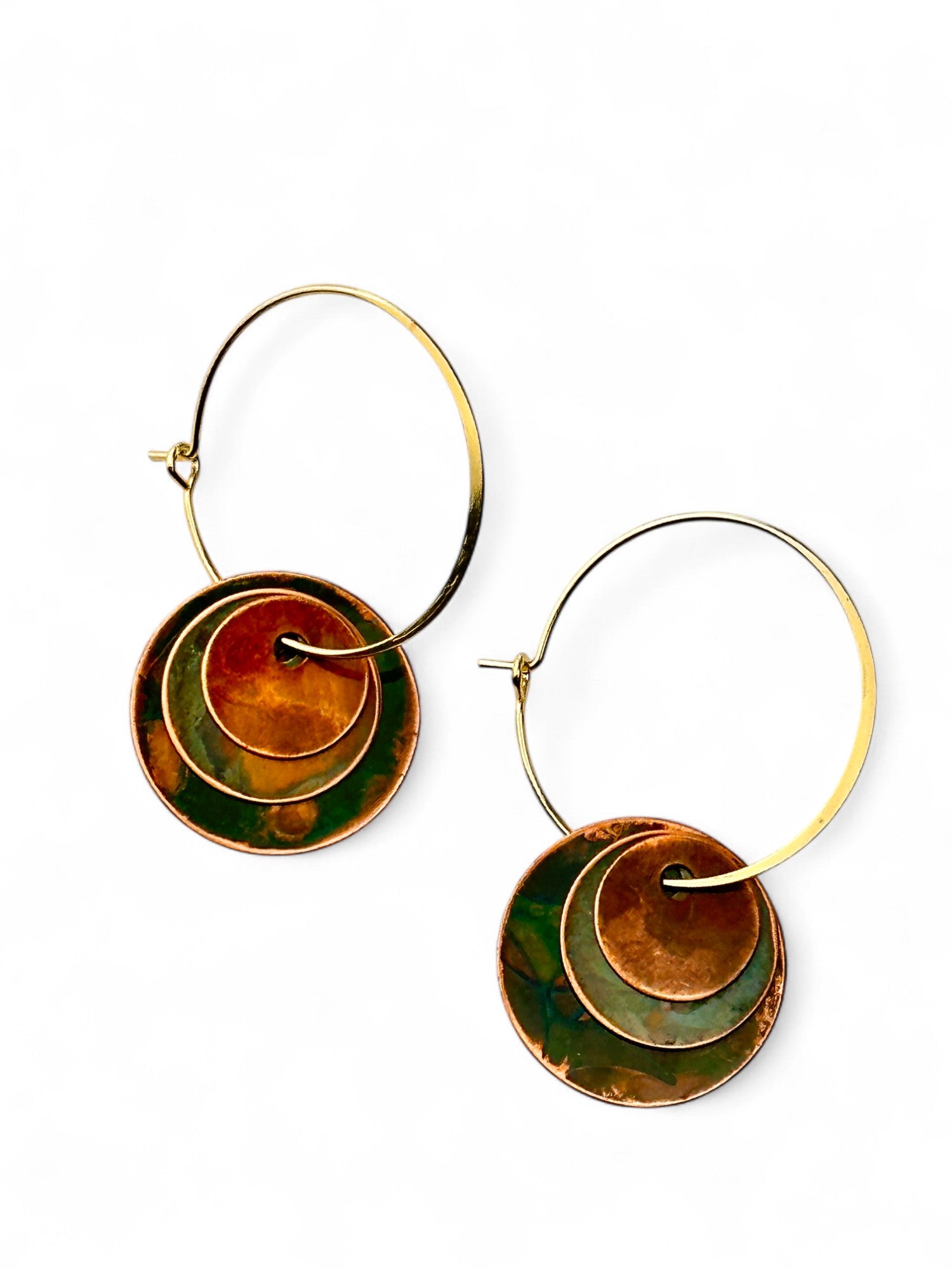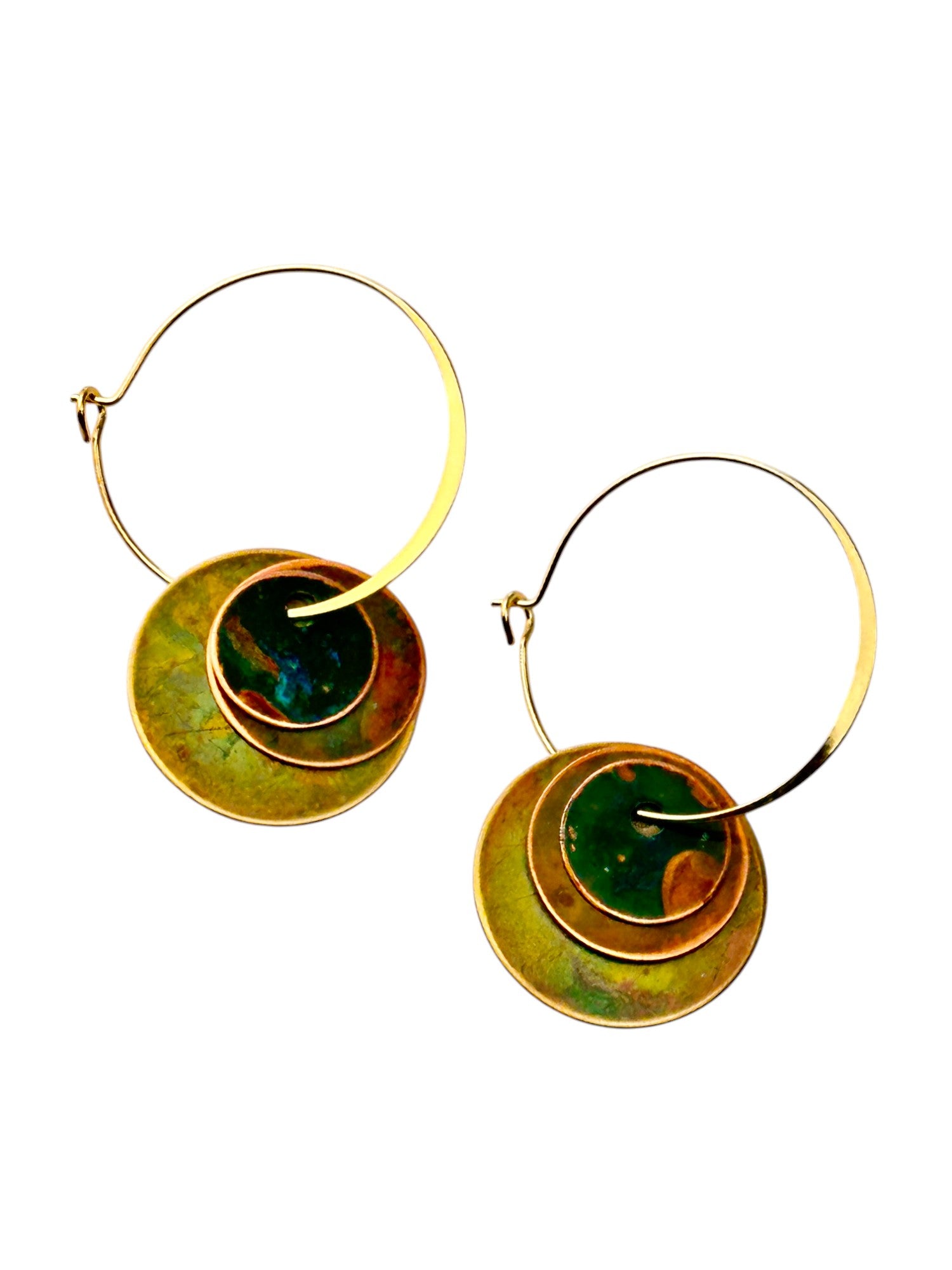 Argolas com três discos Hoiko Basic, com discos oxidados. Argola fechada com banho de ouro.