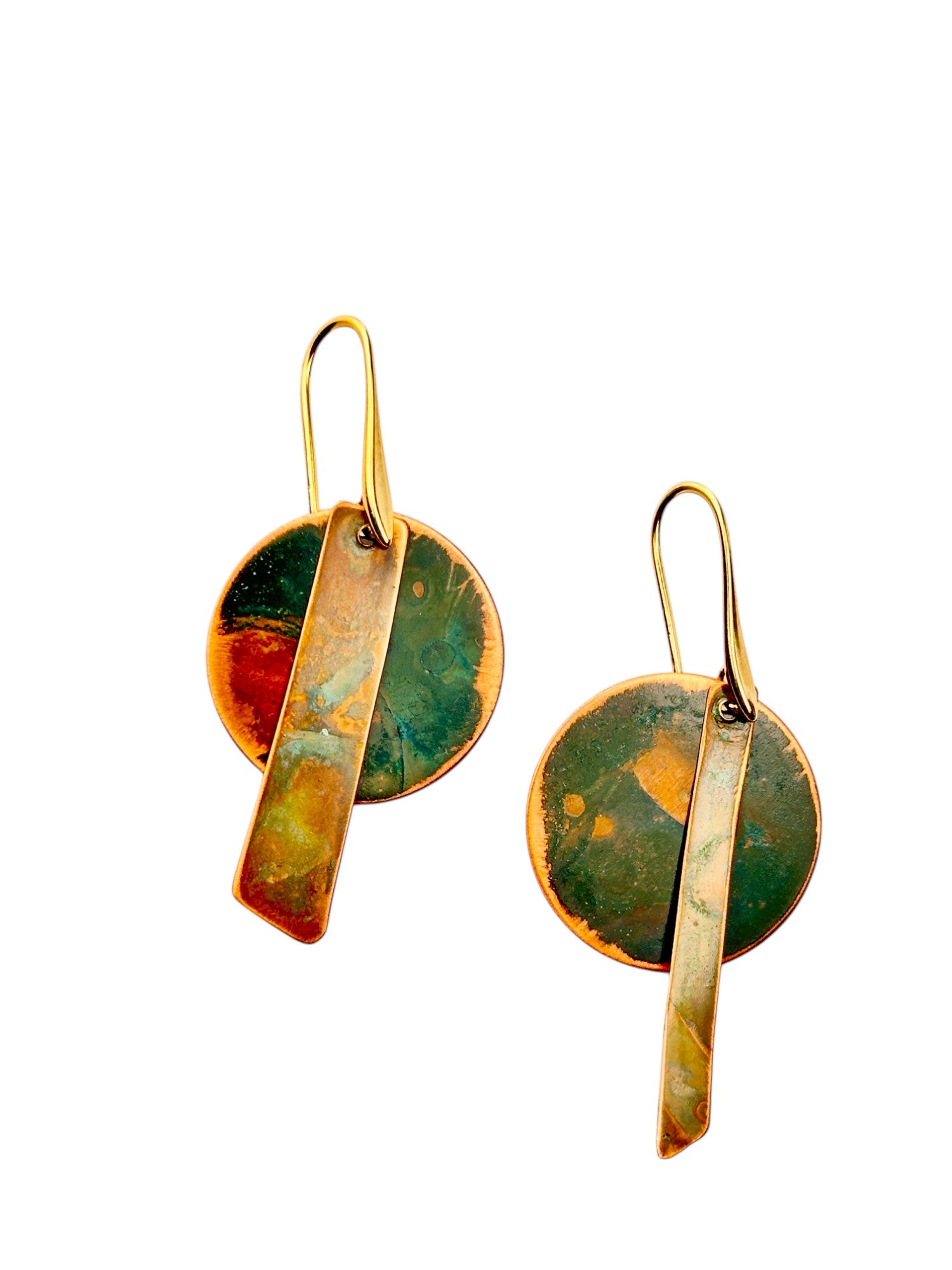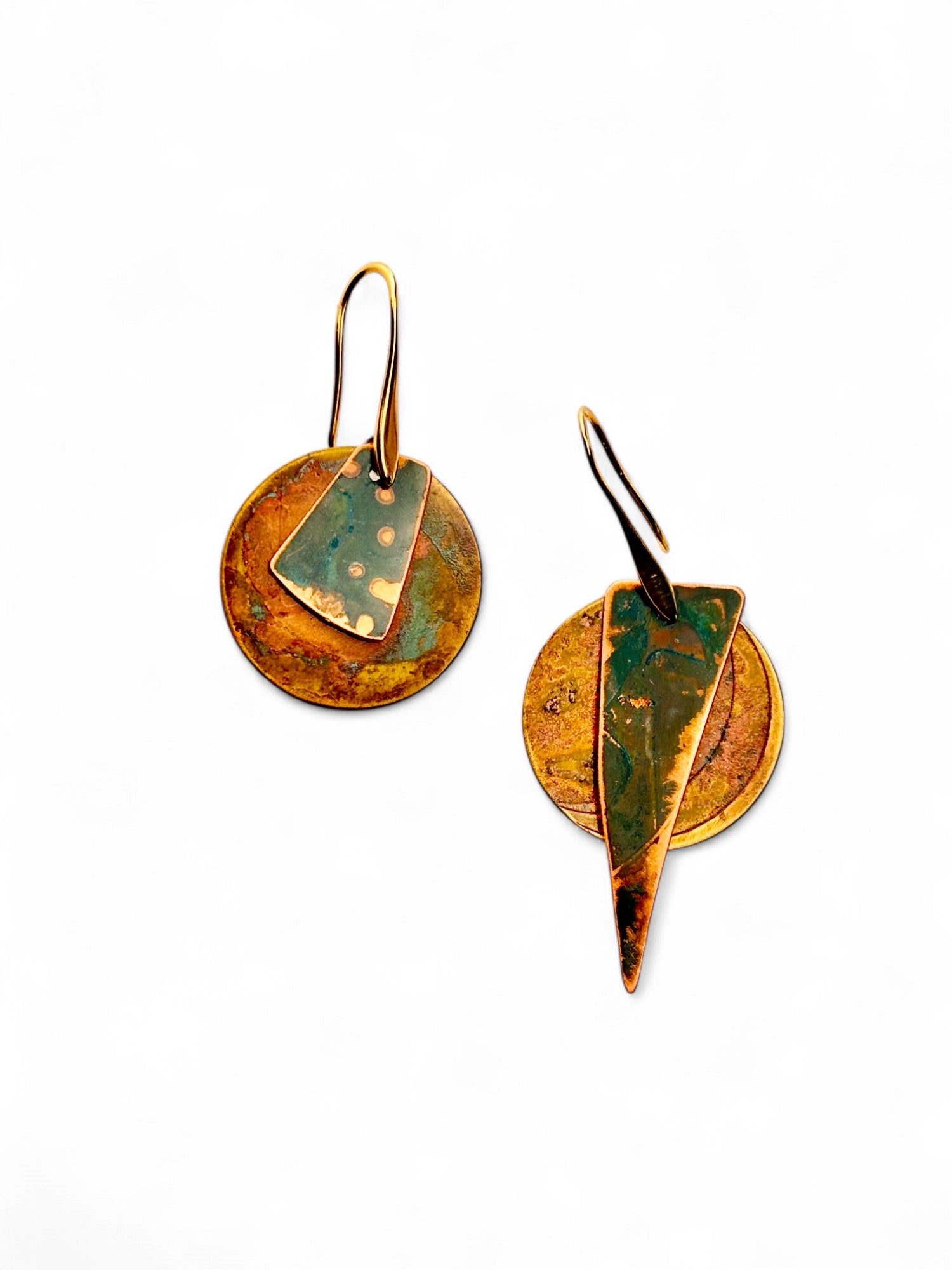 Os brincos Klimt são todas peças únicas e o par é assimétrico. Cores e formas variadas, com gancho aberto com banho de ouro.