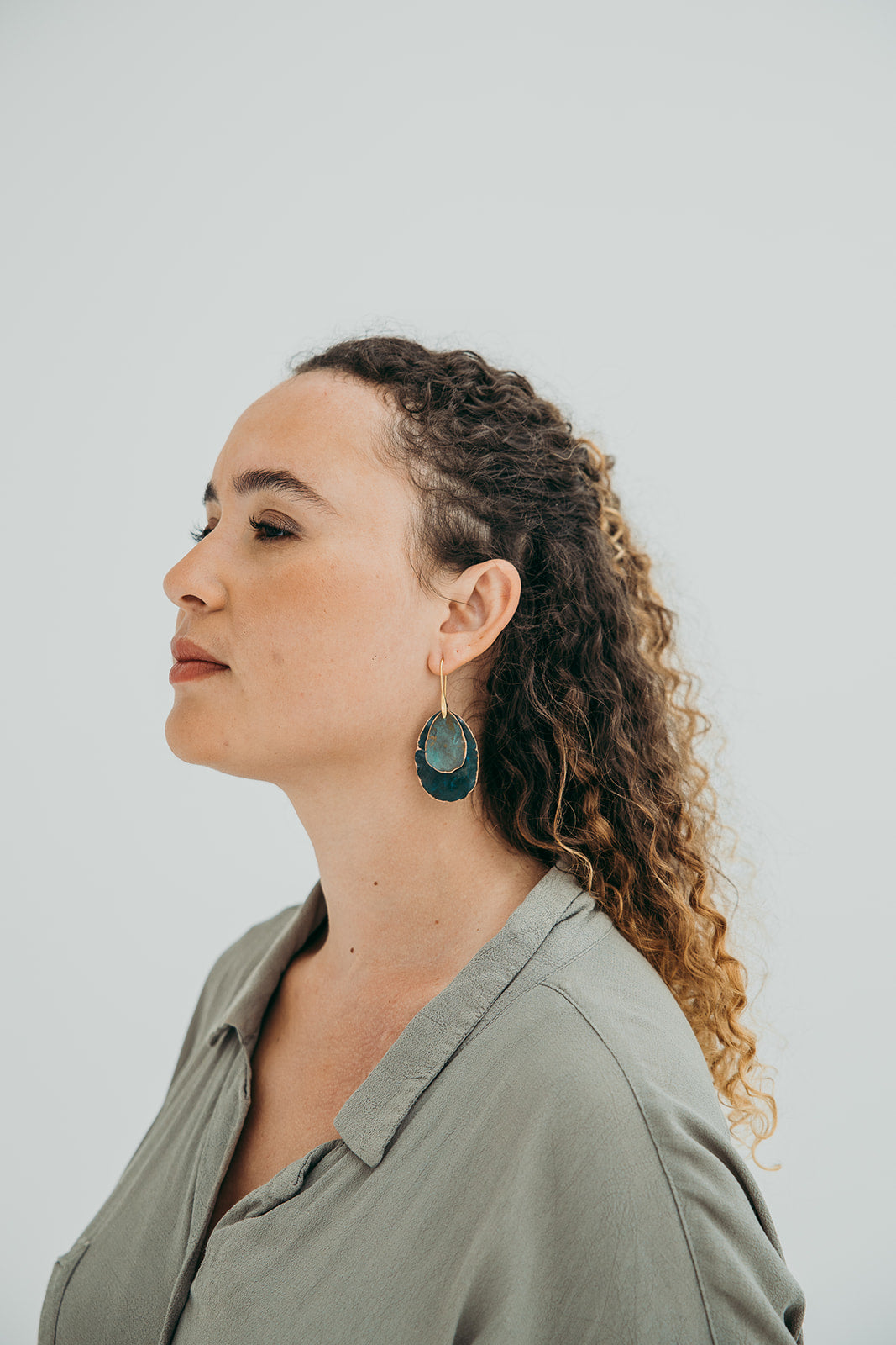 A imagem principal do produto mostra a peça disponível para compra, mas procuramos sempre incluir uma fotografia de contexto, com a peça usada por uma modelo ou em cenário. Essa foto pode não corresponder exatamente à peça que que receberá, podendo ser de outro metal ou de uma tonalidade diferente de oxidação; serve apenas como exemplo de como a peça fica no uso.