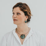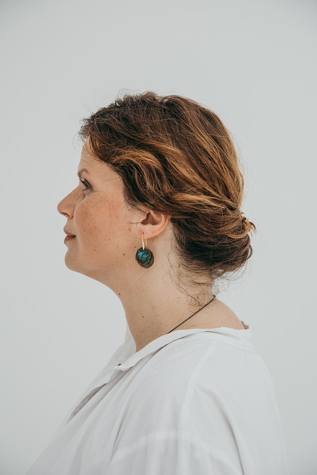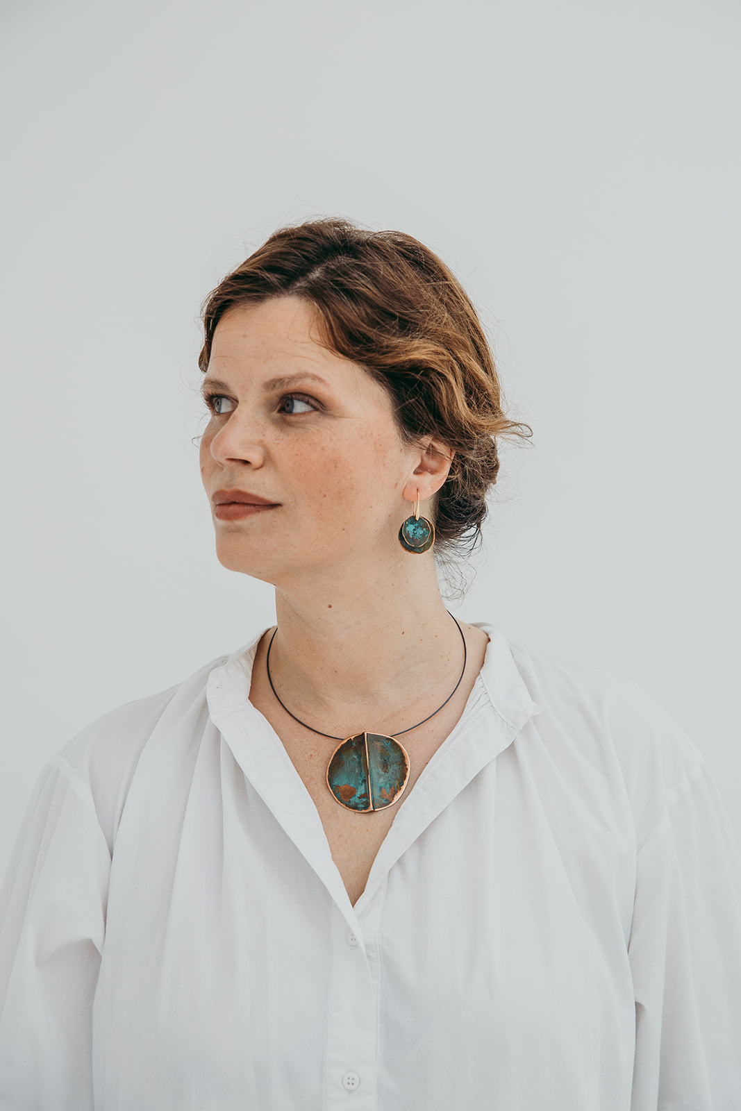 A imagem principal do produto mostra a peça disponível para compra, mas procuramos sempre incluir uma fotografia de contexto, com a peça usada por uma modelo ou em cenário. Essa foto pode não corresponder exatamente à peça que que receberá, podendo ser de outro metal ou de uma tonalidade diferente de oxidação; serve apenas como exemplo de como a peça fica no uso.