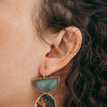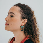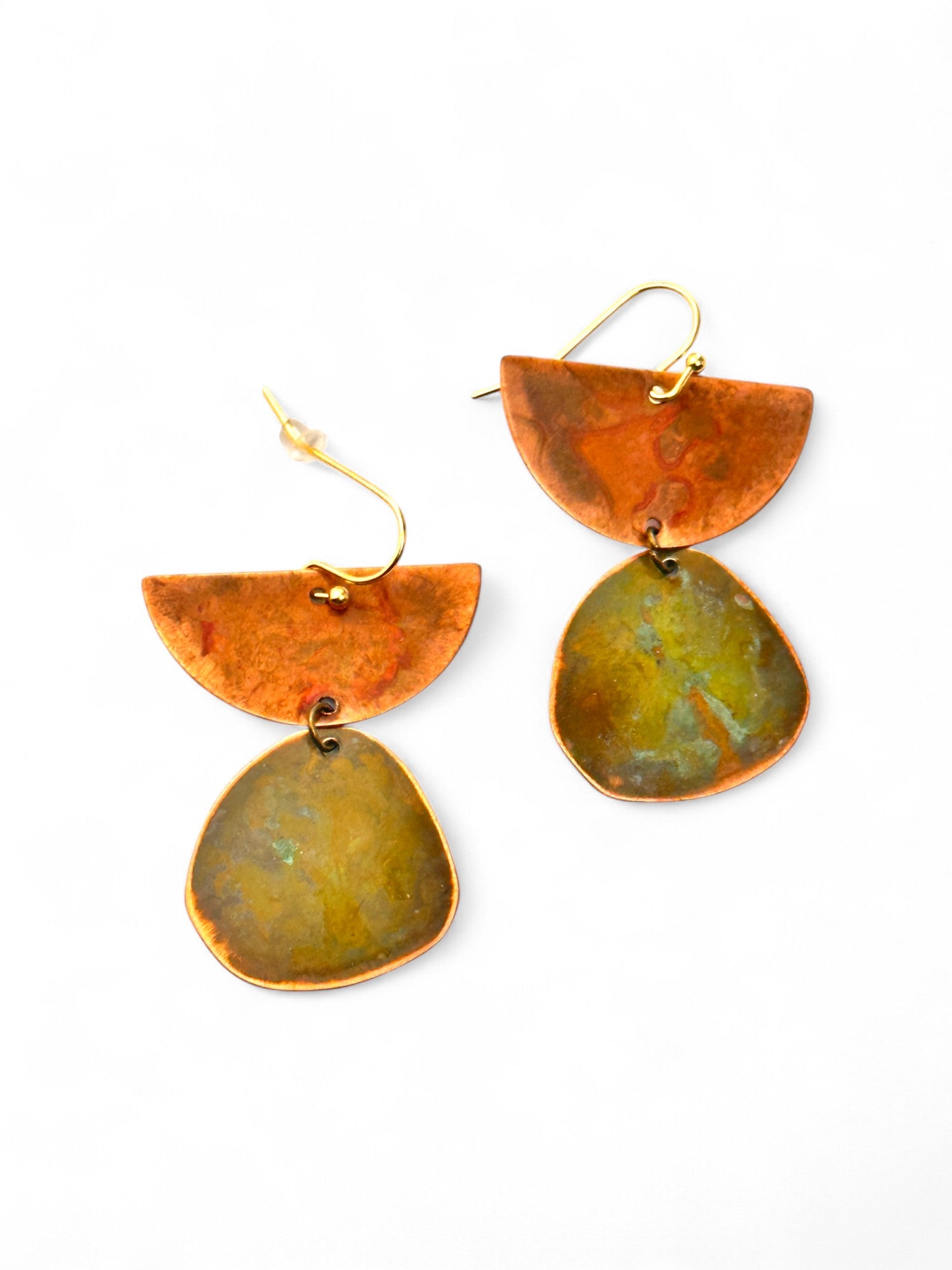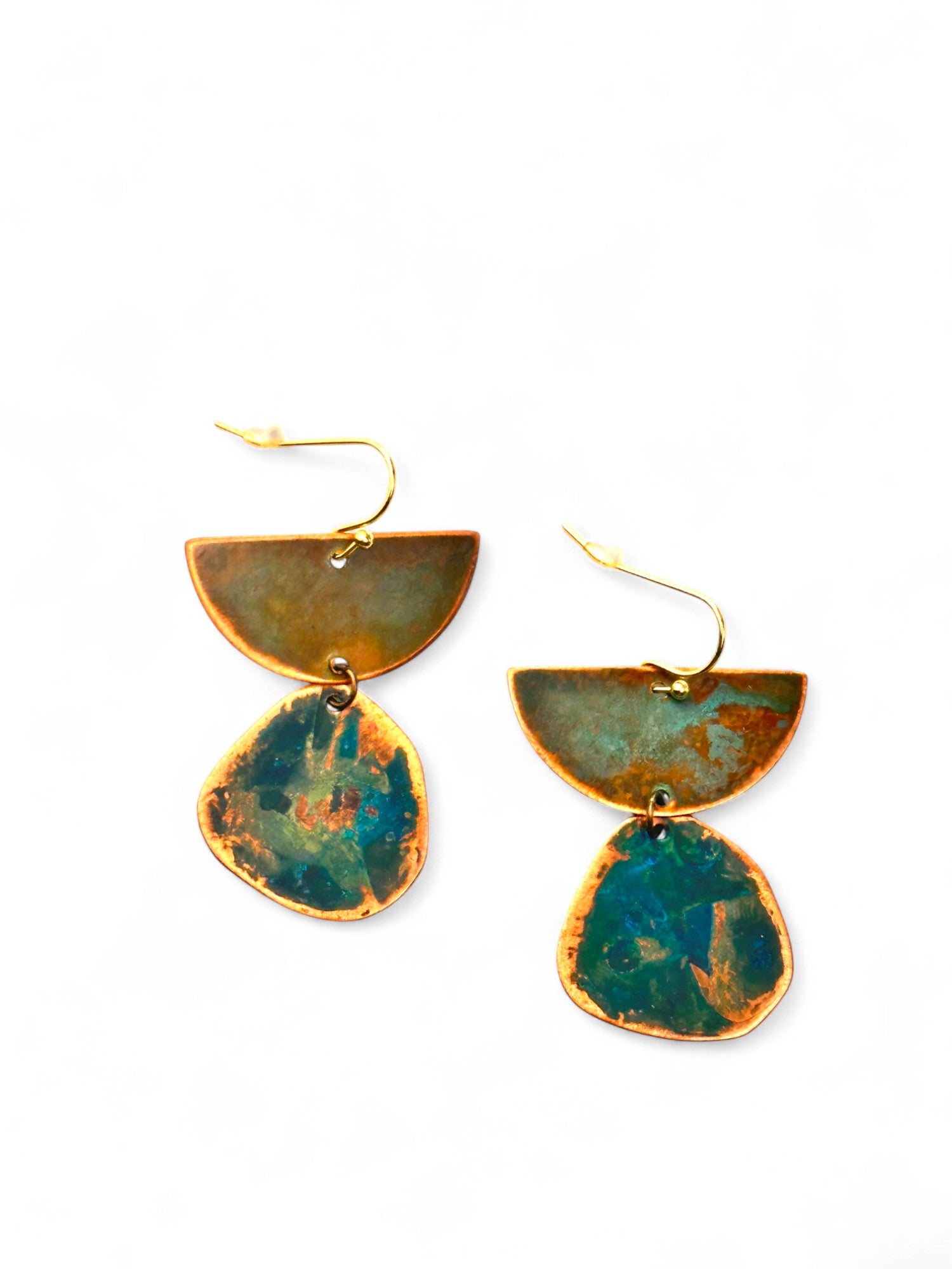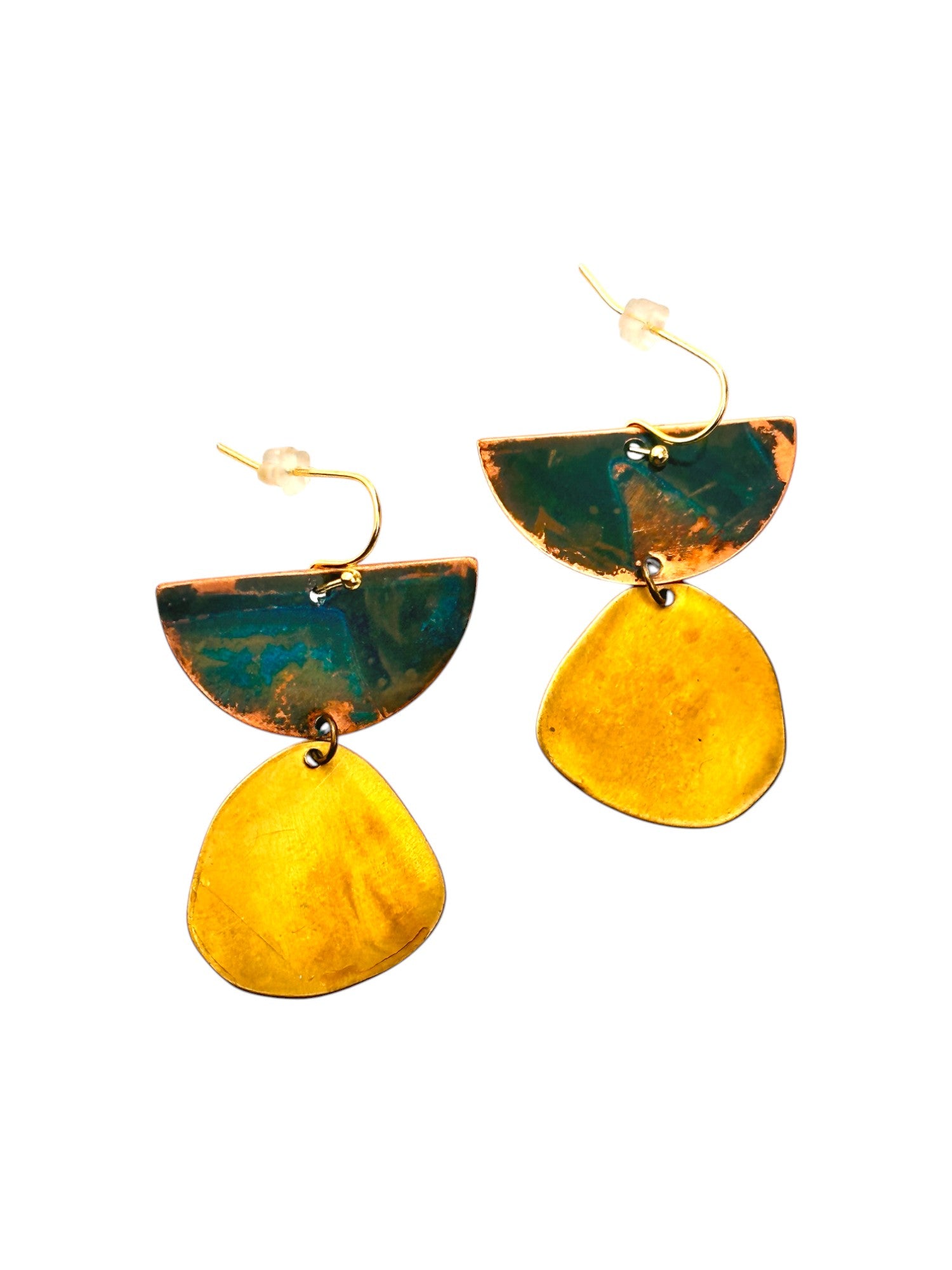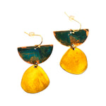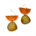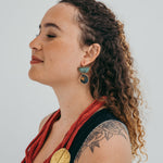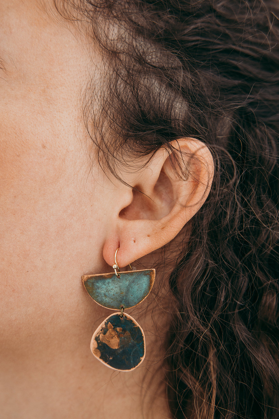 Brincos de inspiração étnica, recortados e oxidados manualmente, com gancho aberto com banho de ouro