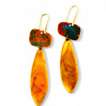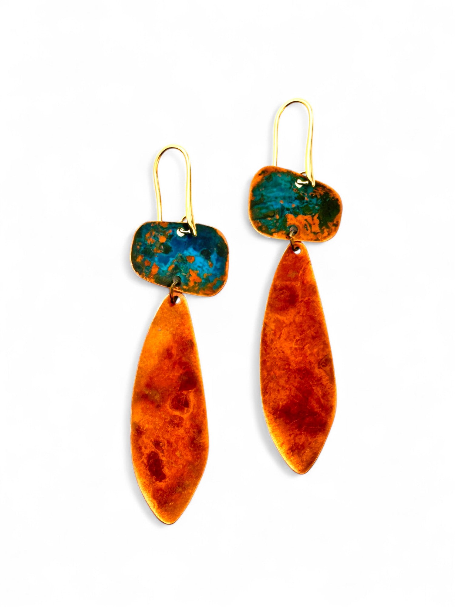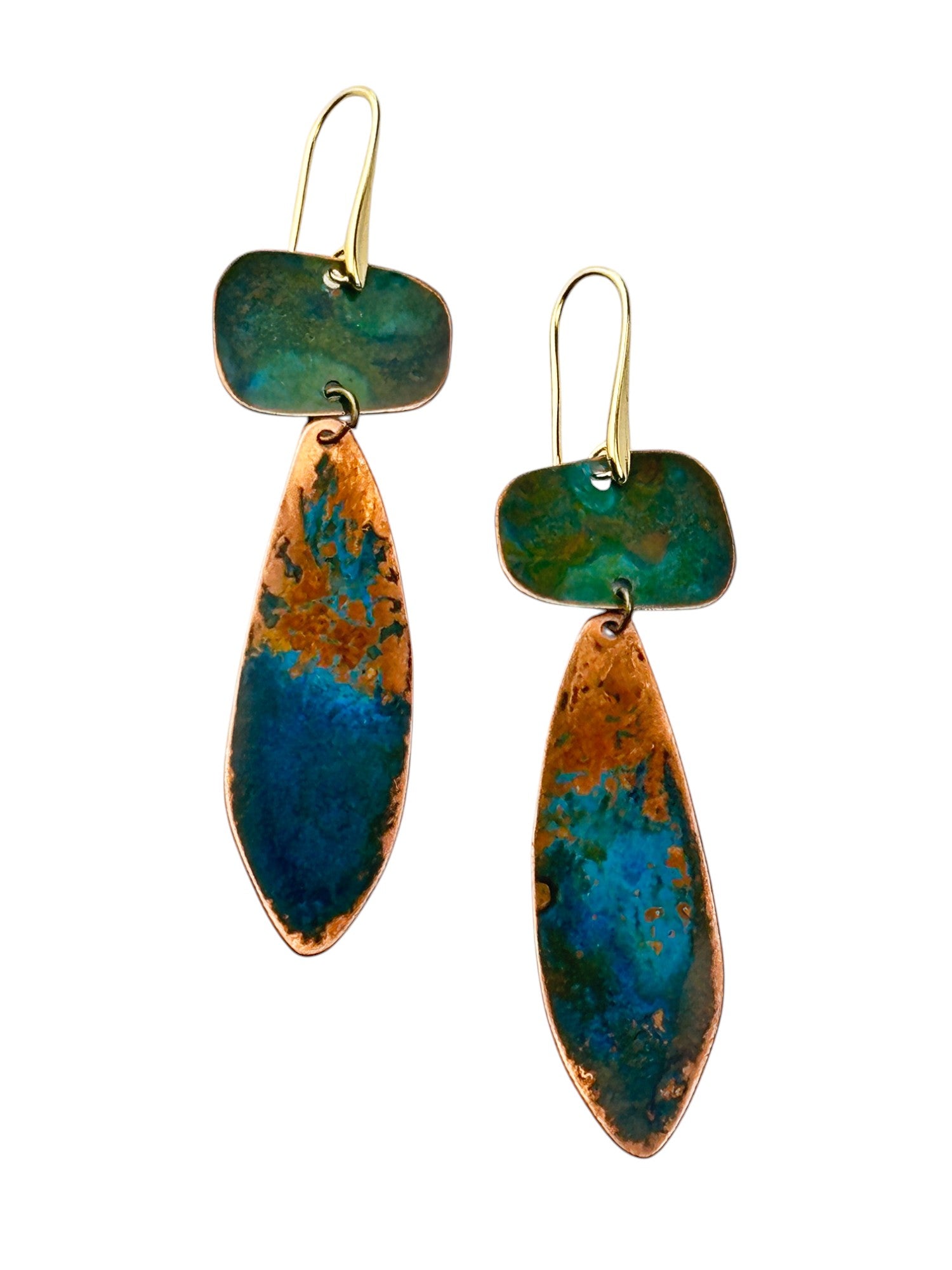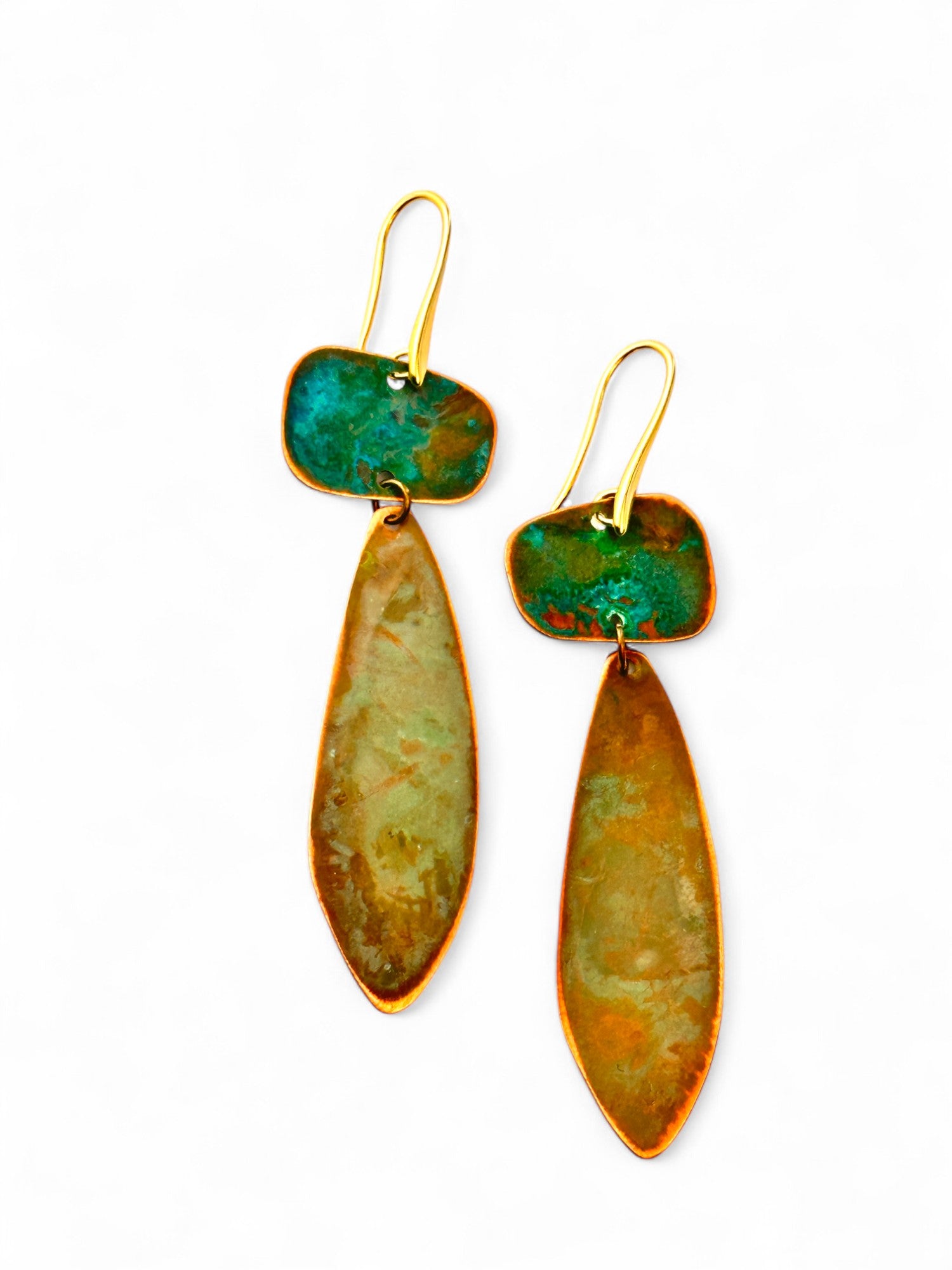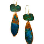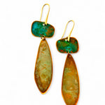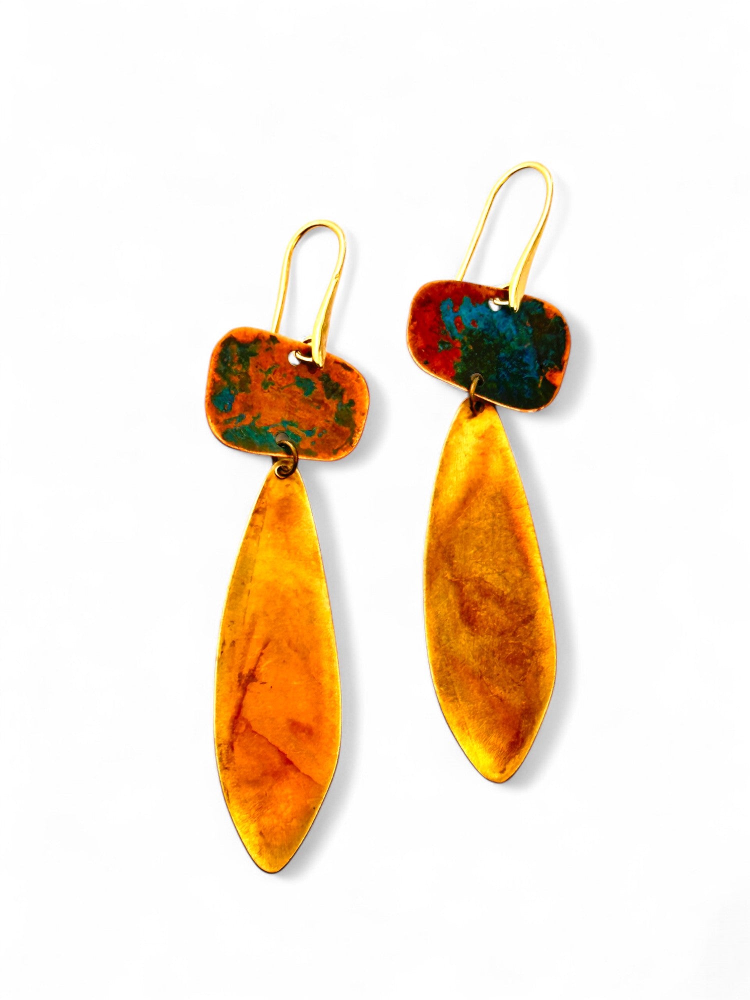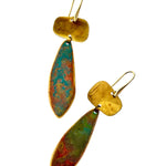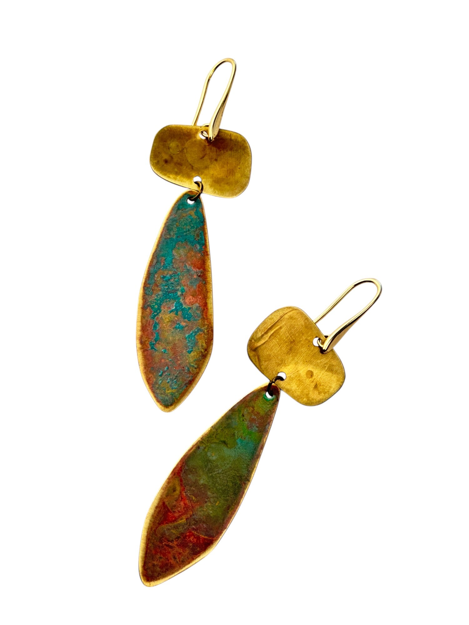 Brincos Laminaria com combinações de cores variadas. Com oxidações naturais. Gancho aberto com banho de ouro.