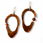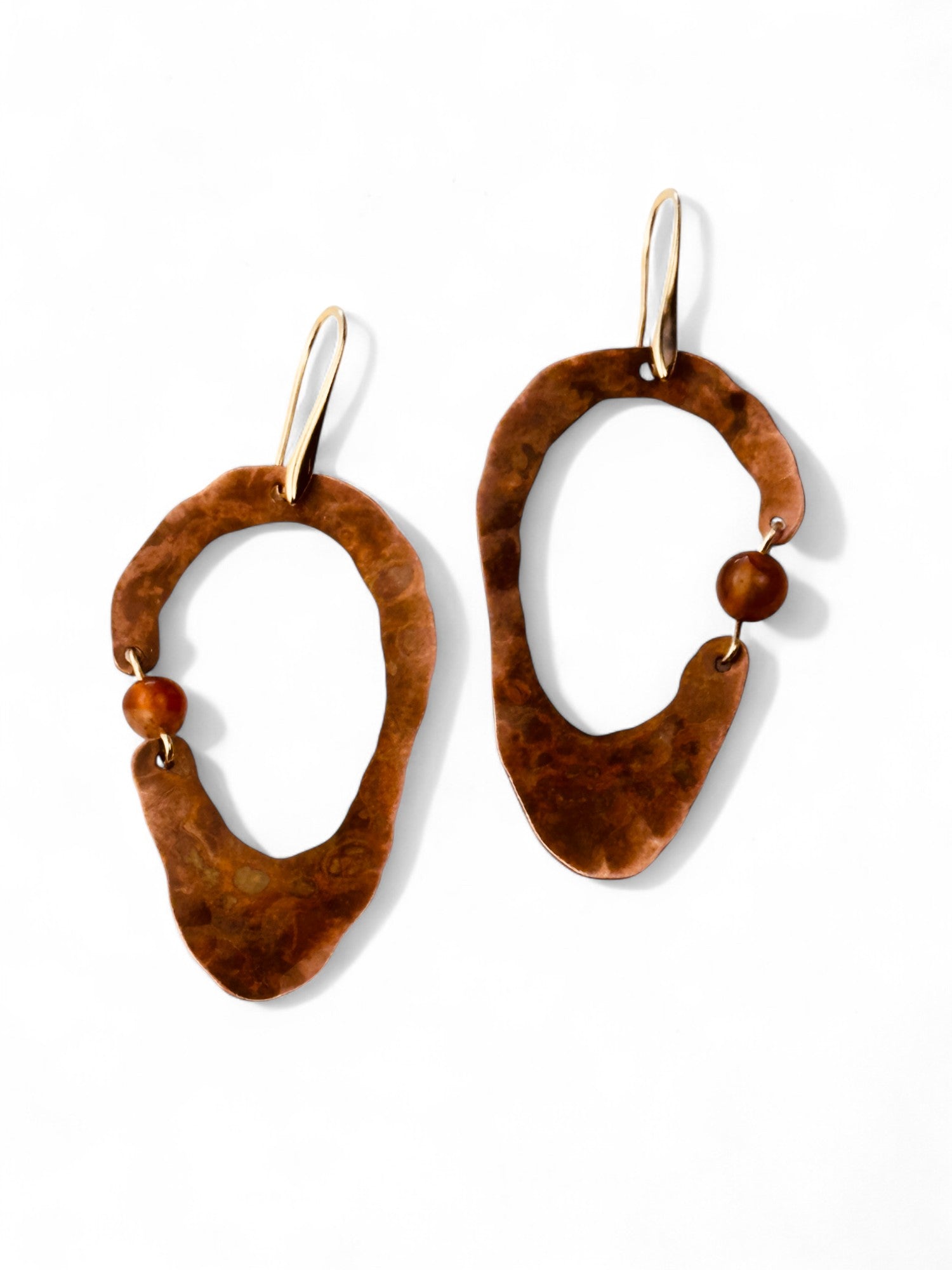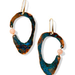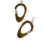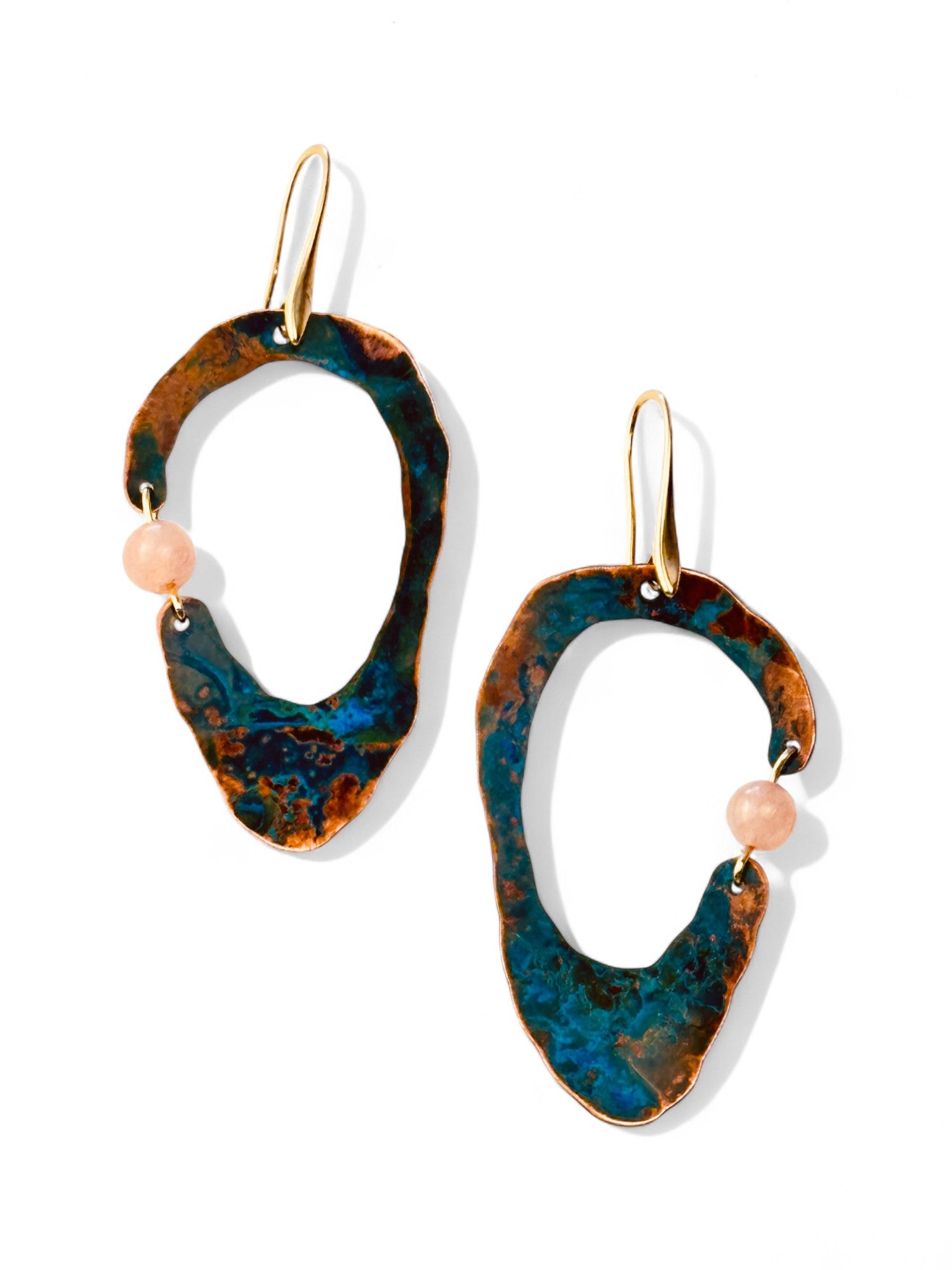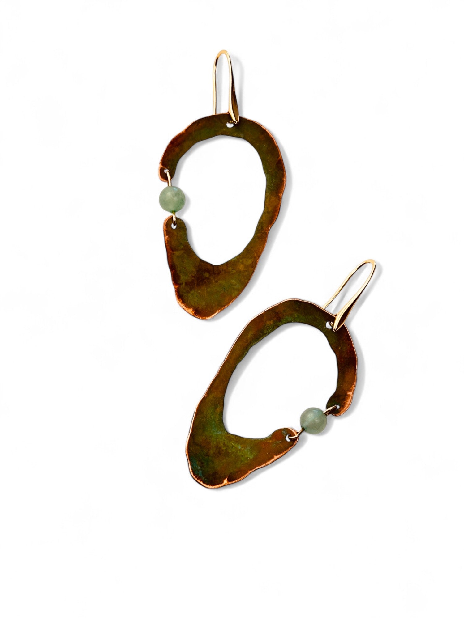 Brincos Stephens com pedras naturais, são cortados, martelados e oxidados manualmente. Gancho aberto com banho de ouro.