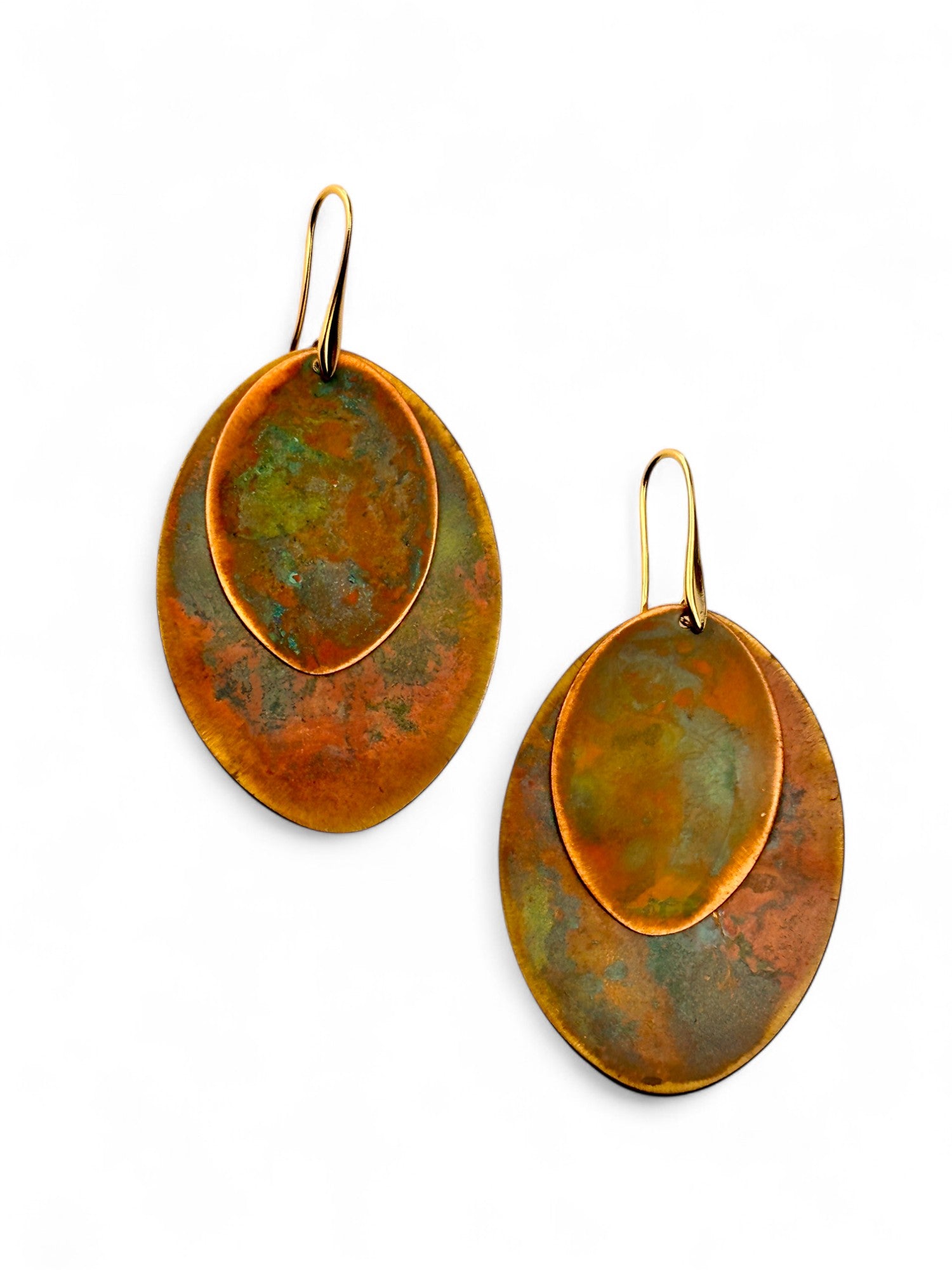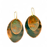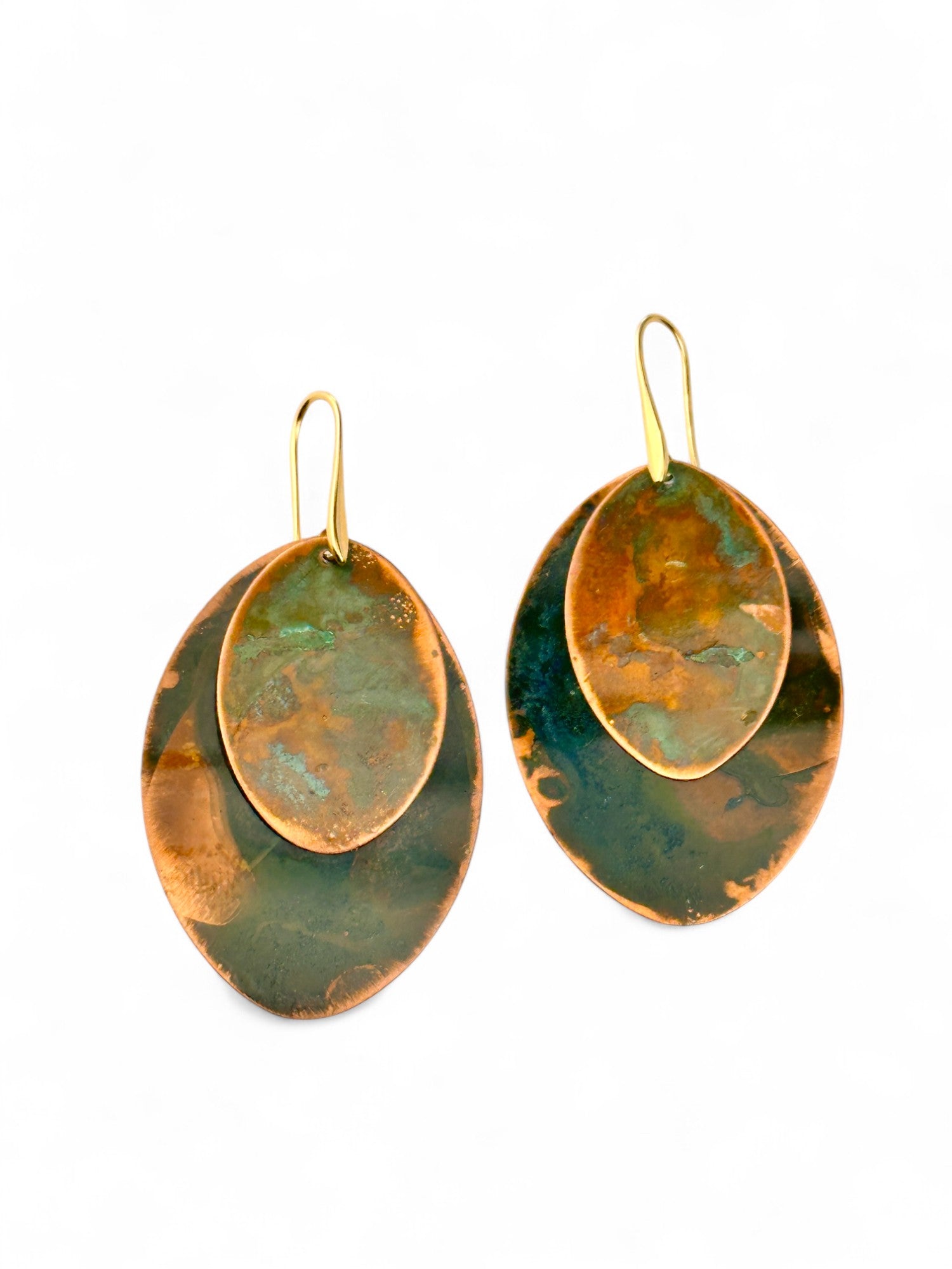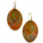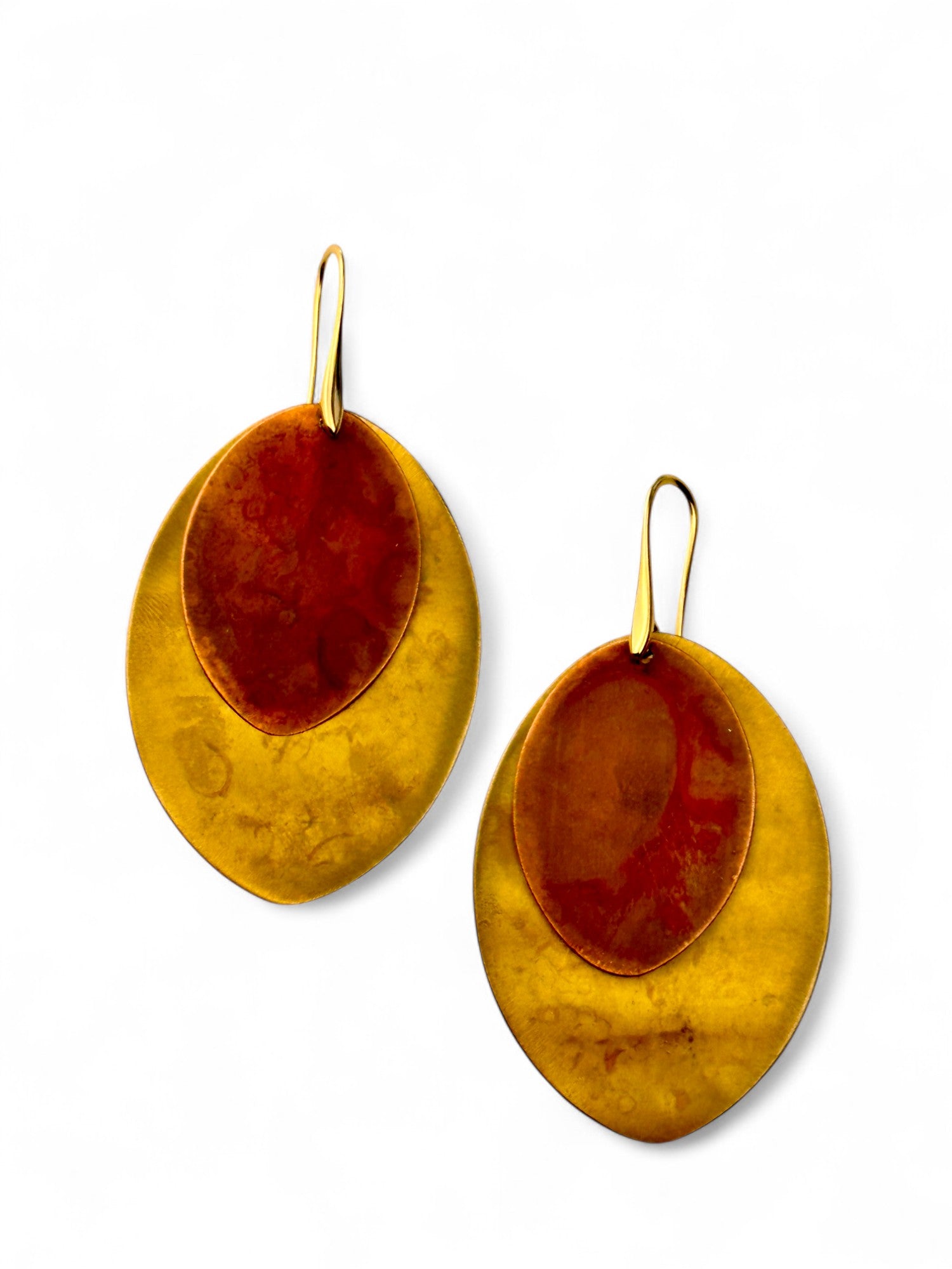 Brincos Seed grandes. Cortados e oxidados manualmente. Gancho aberto com banho de ouro.