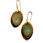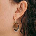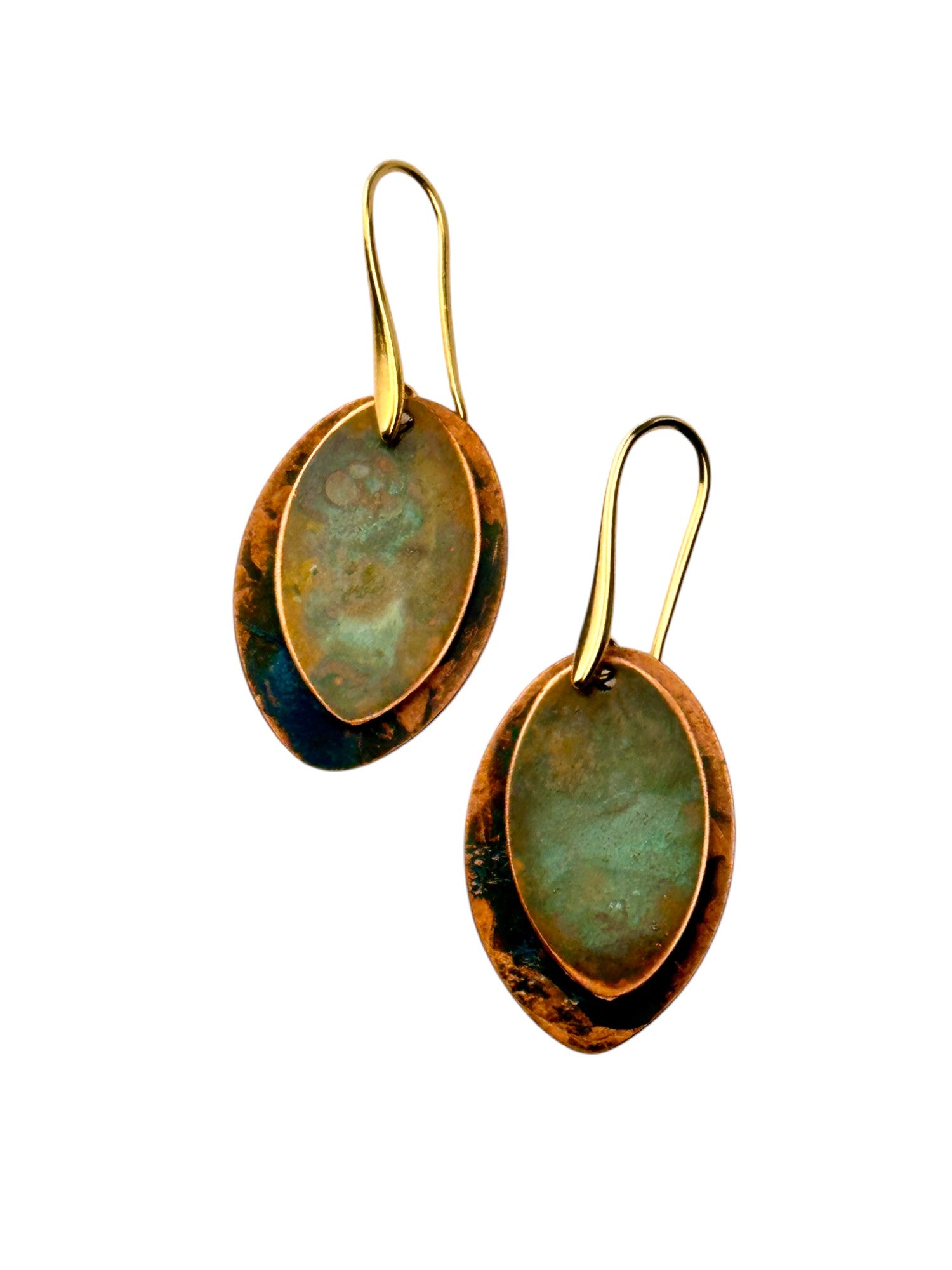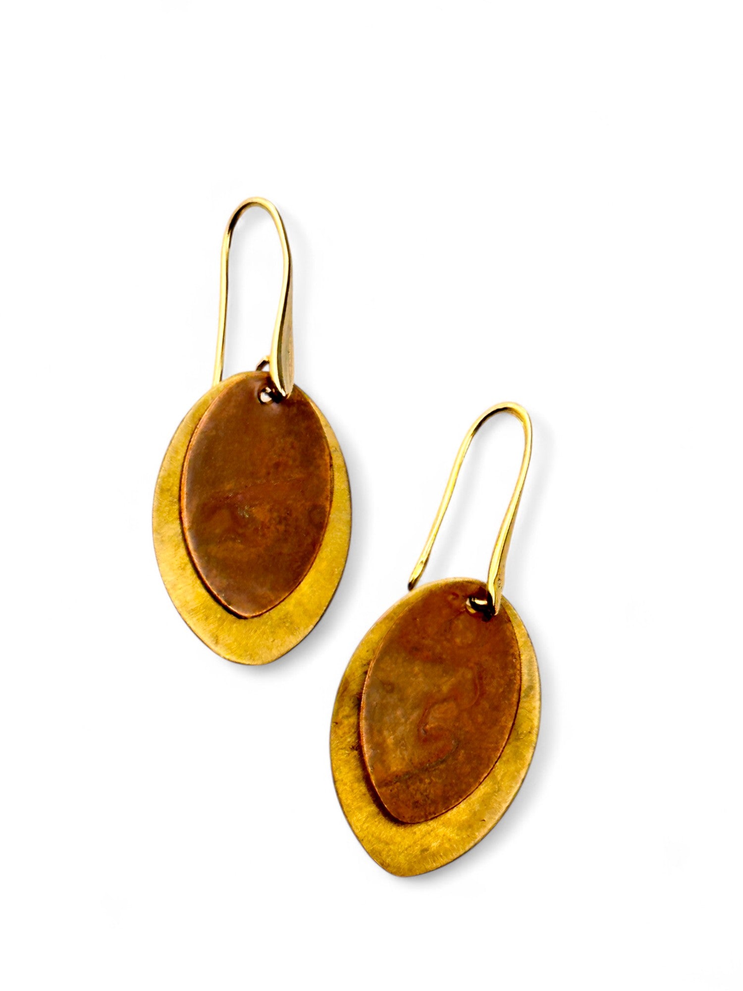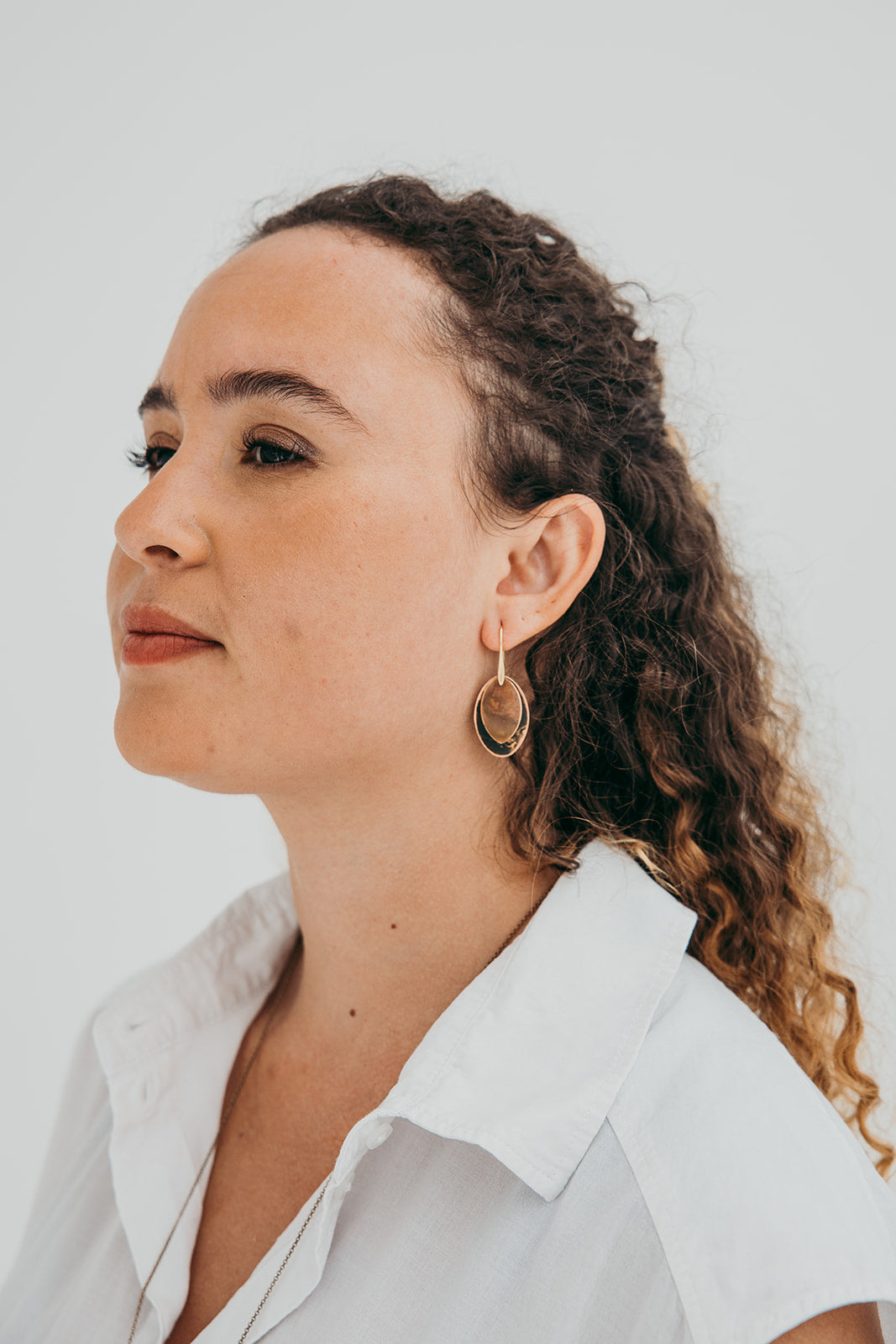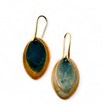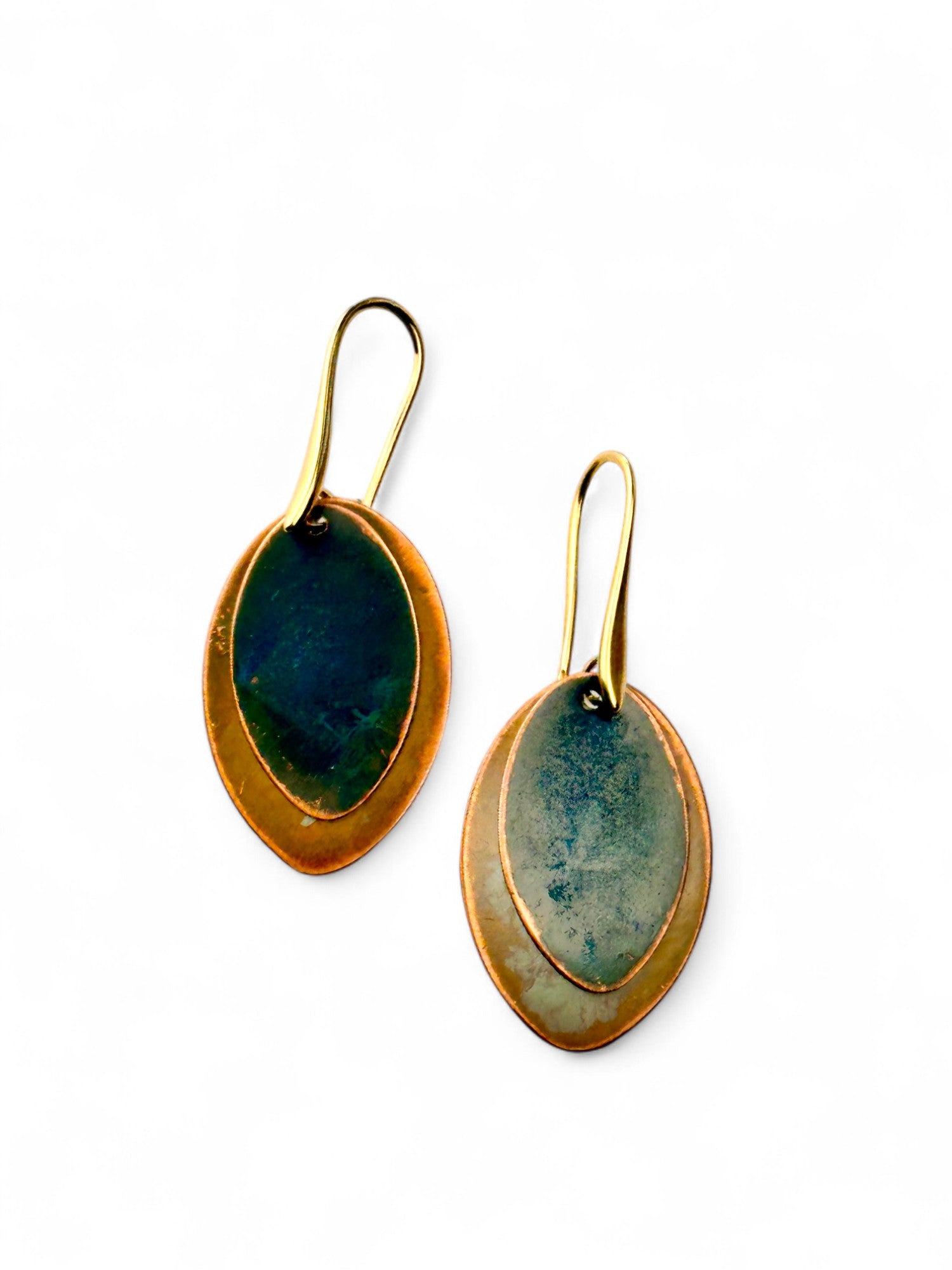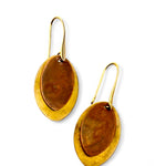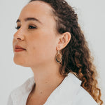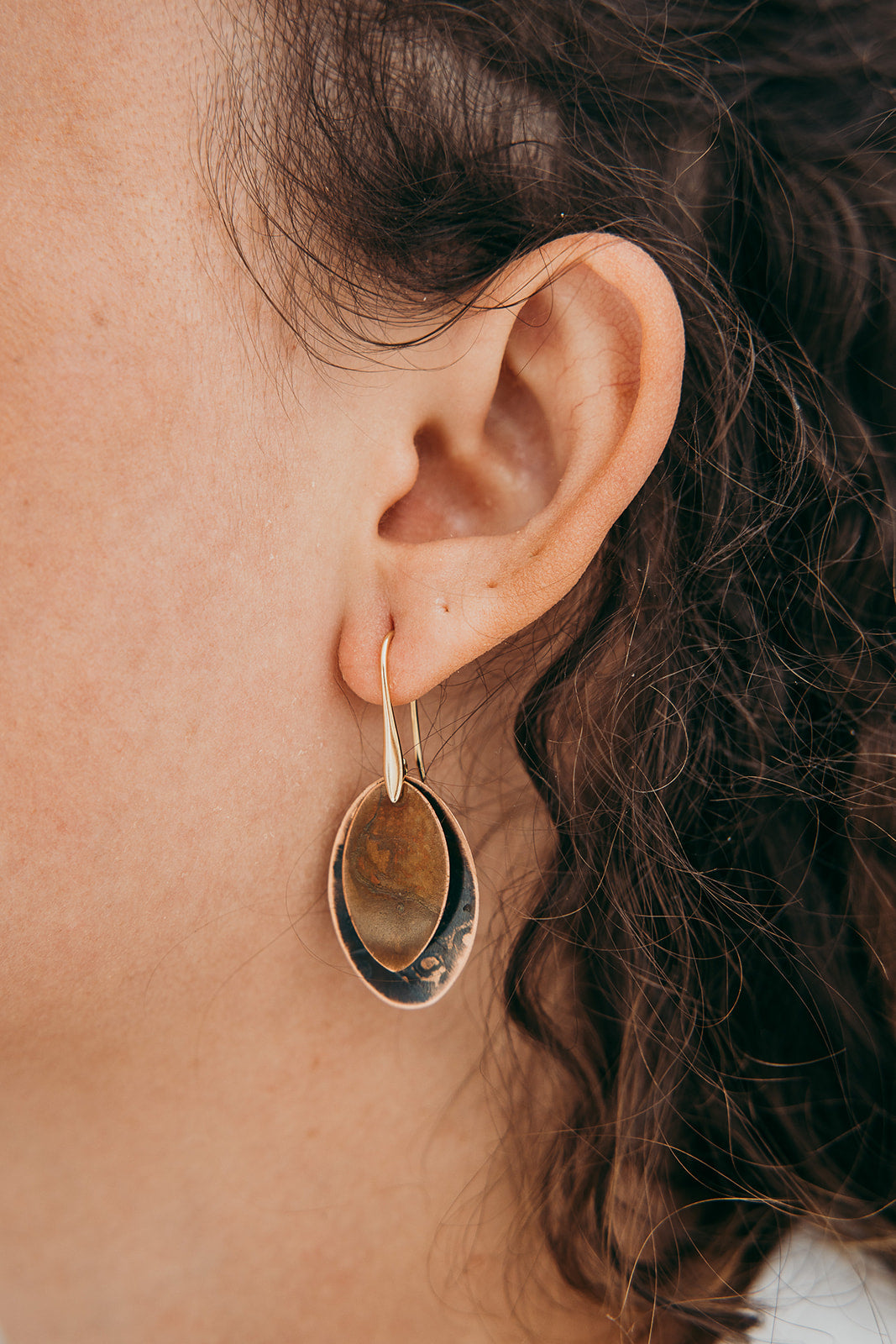 Brincos Seed mini duplos. Cortados e oxidados manualmente. Gancho aberto com banho de ouro.