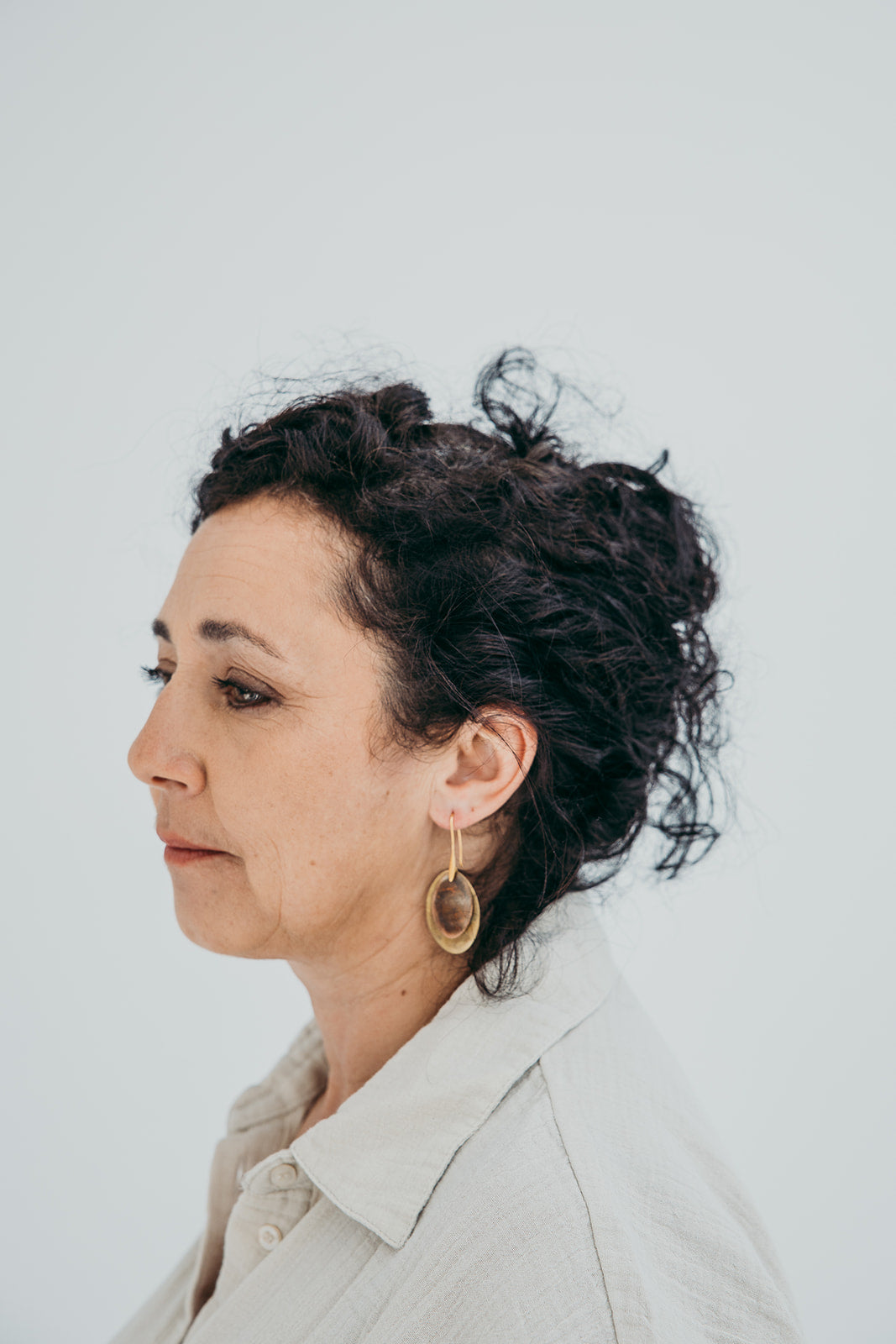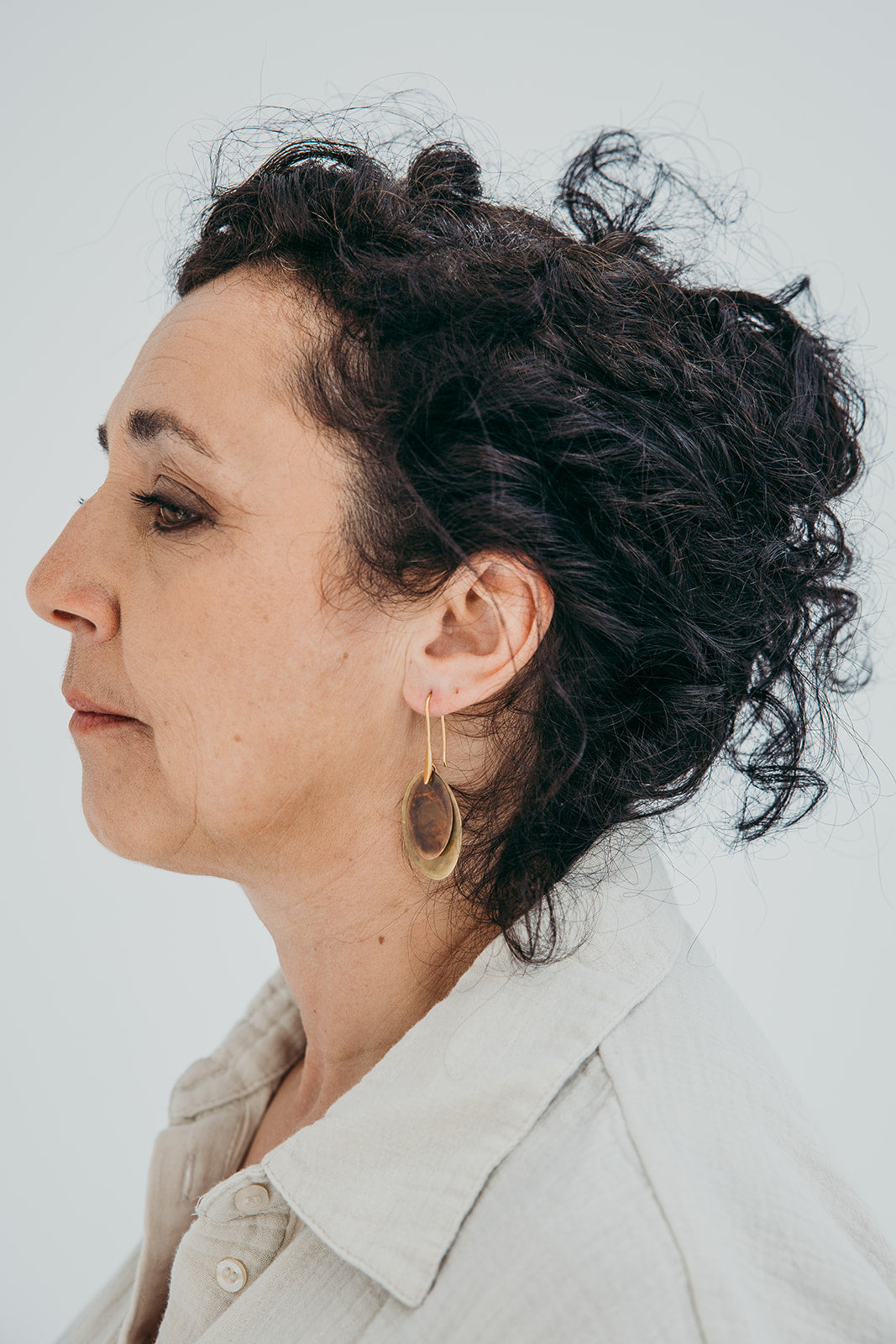 A imagem principal do produto mostra a peça disponível para compra, mas procuramos sempre incluir uma fotografia de contexto, com a peça usada por uma modelo ou em cenário. Essa foto pode não corresponder exatamente à peça que que receberá, podendo ser de outro metal ou de uma tonalidade diferente de oxidação; serve apenas como exemplo de como a peça fica no uso.