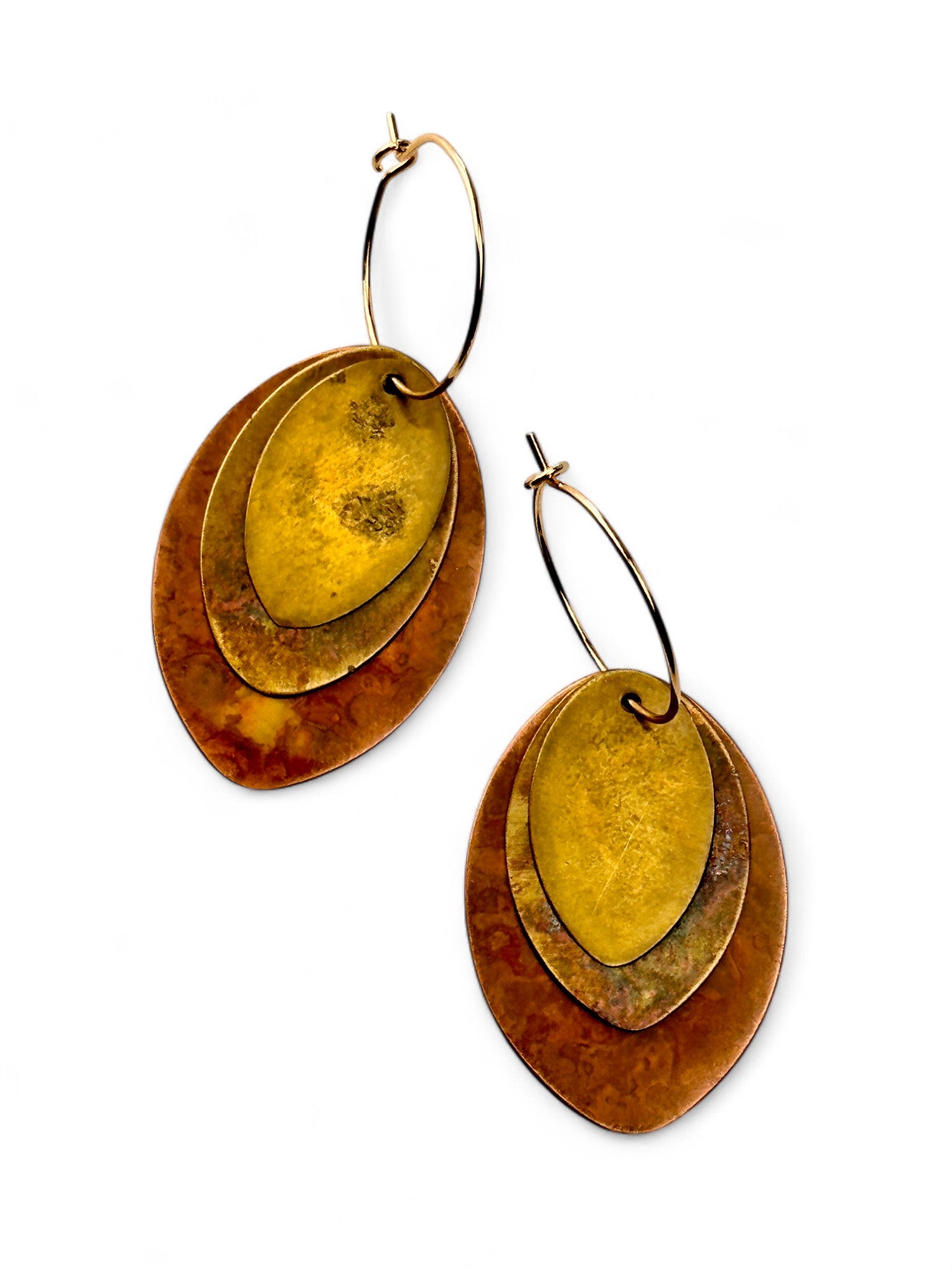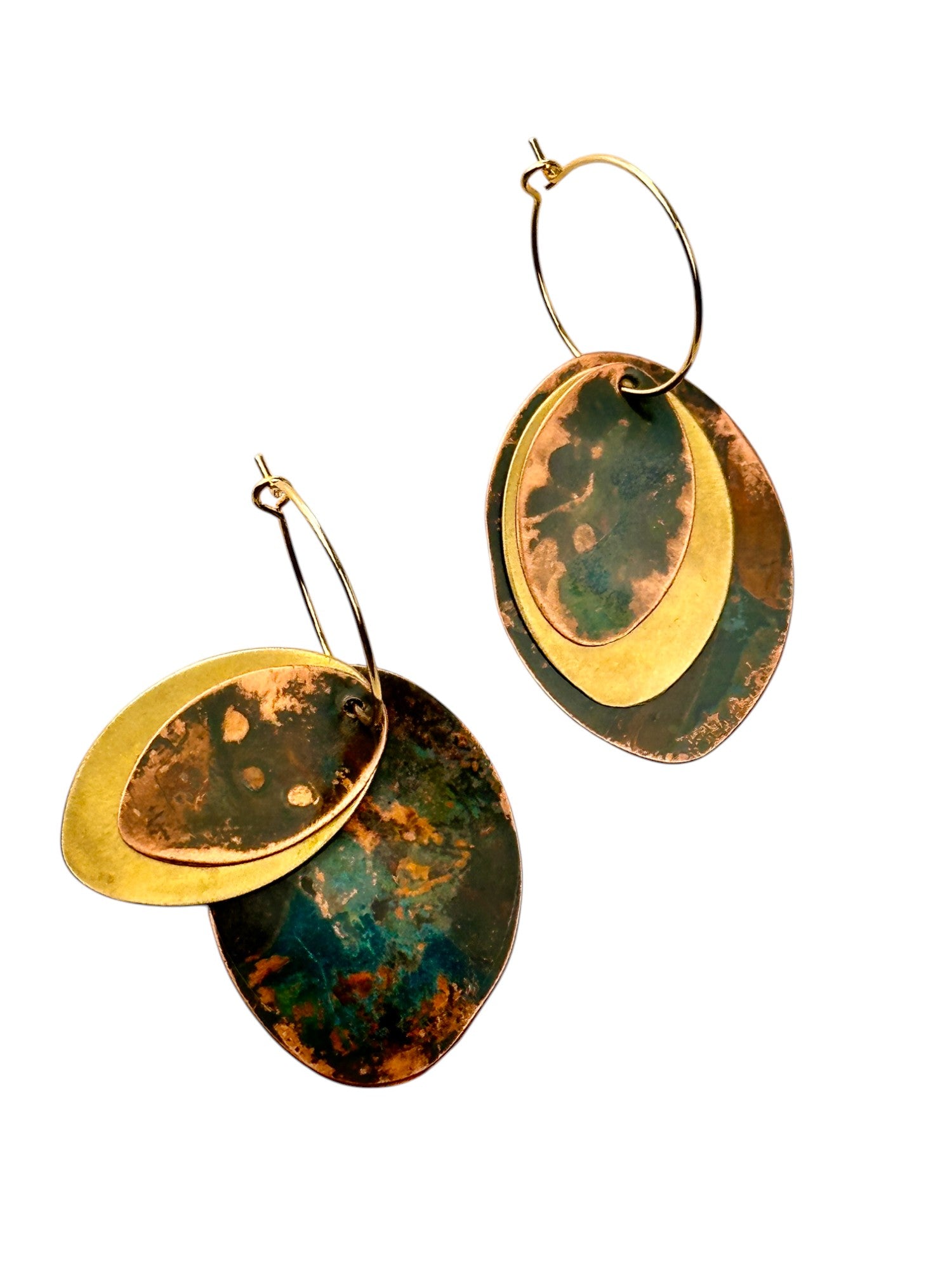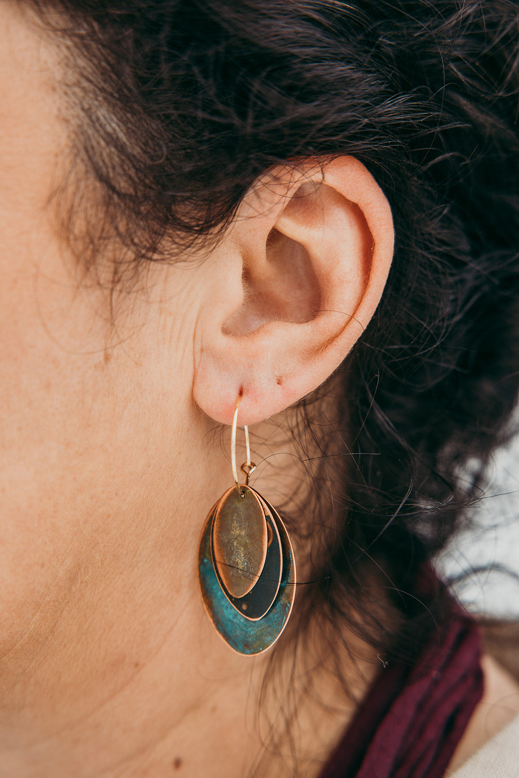Argolas com 3 chapas oxidadas e argolas fechadas com banho de ouro