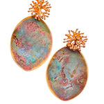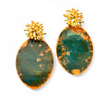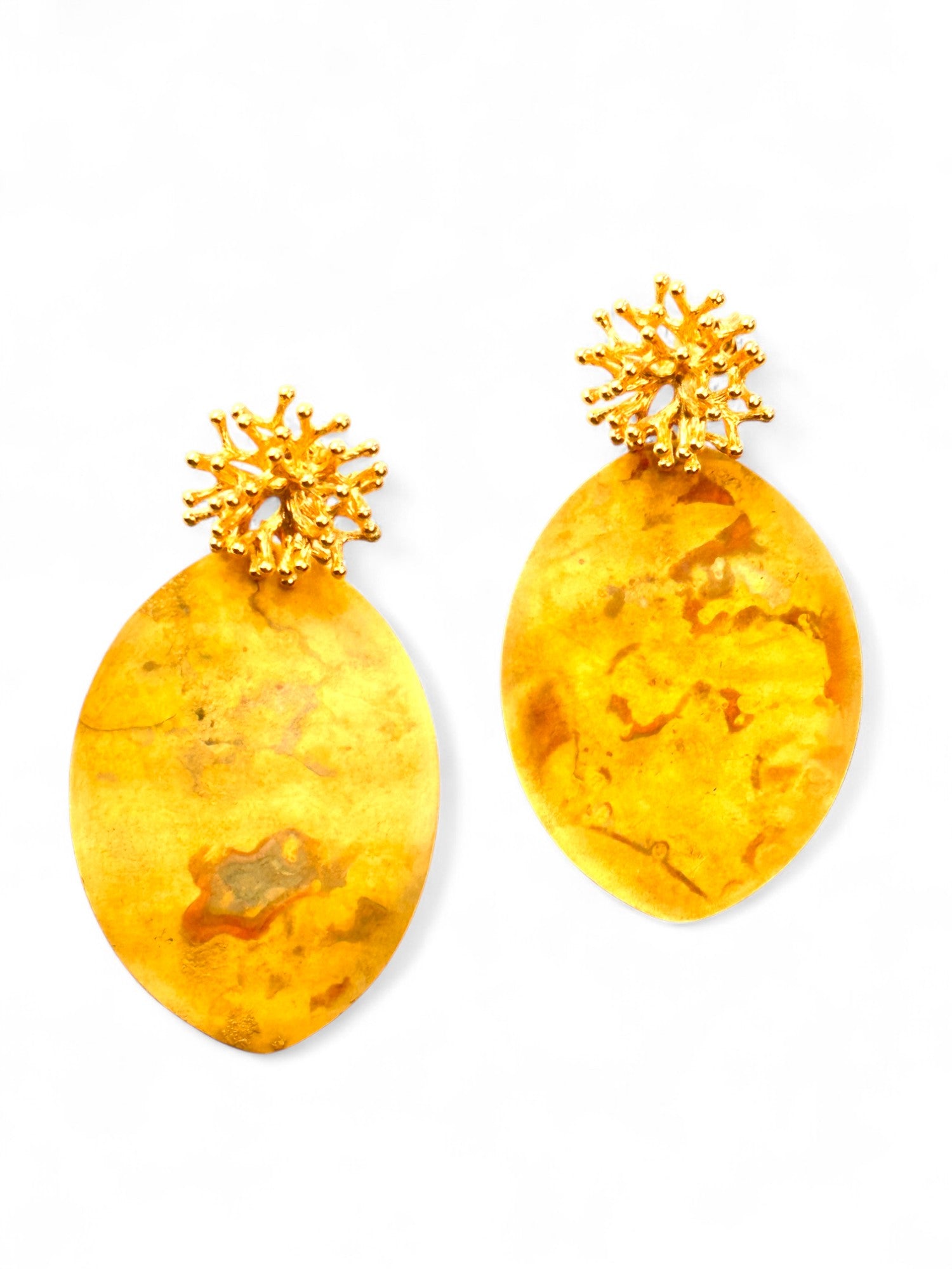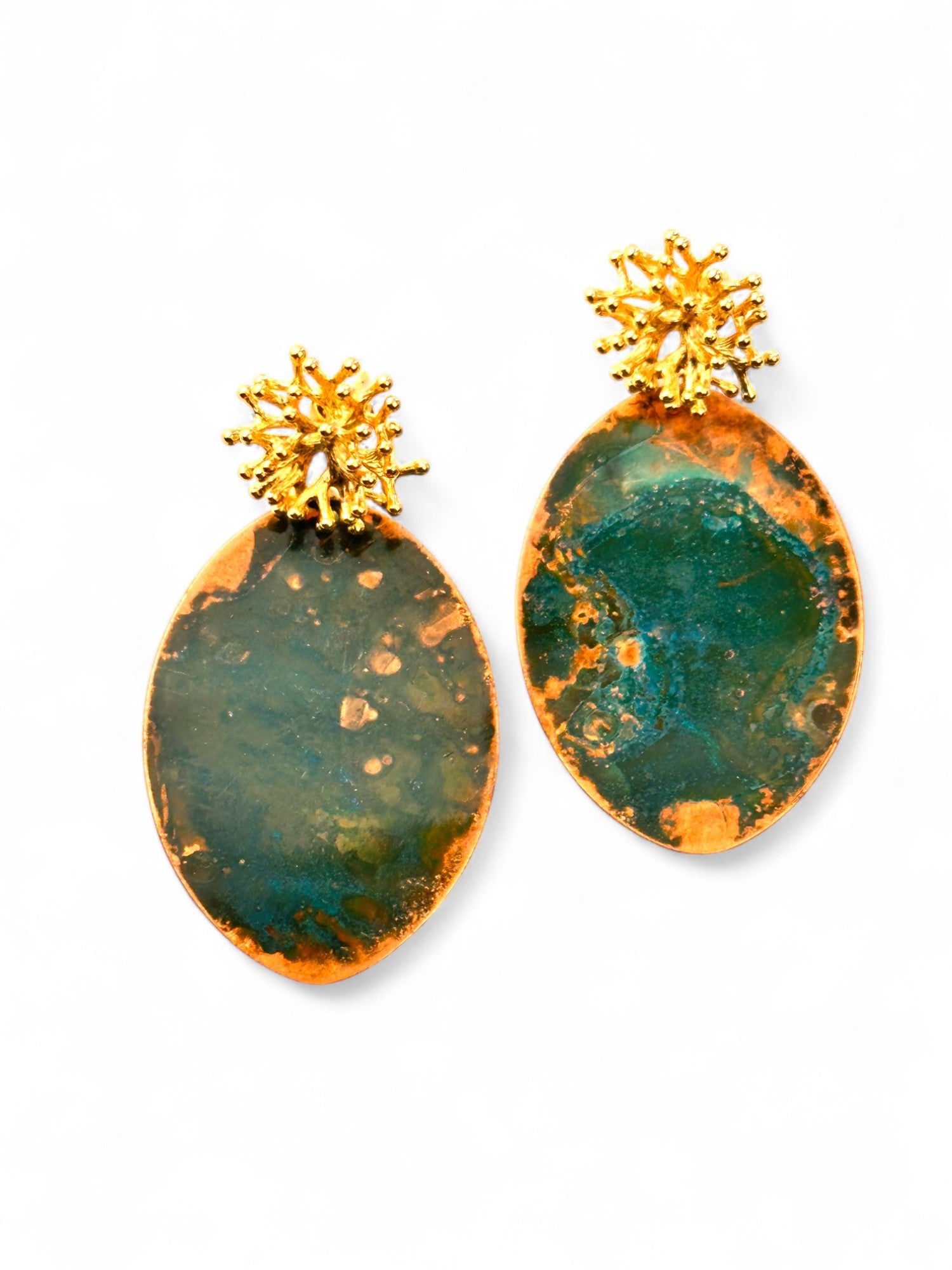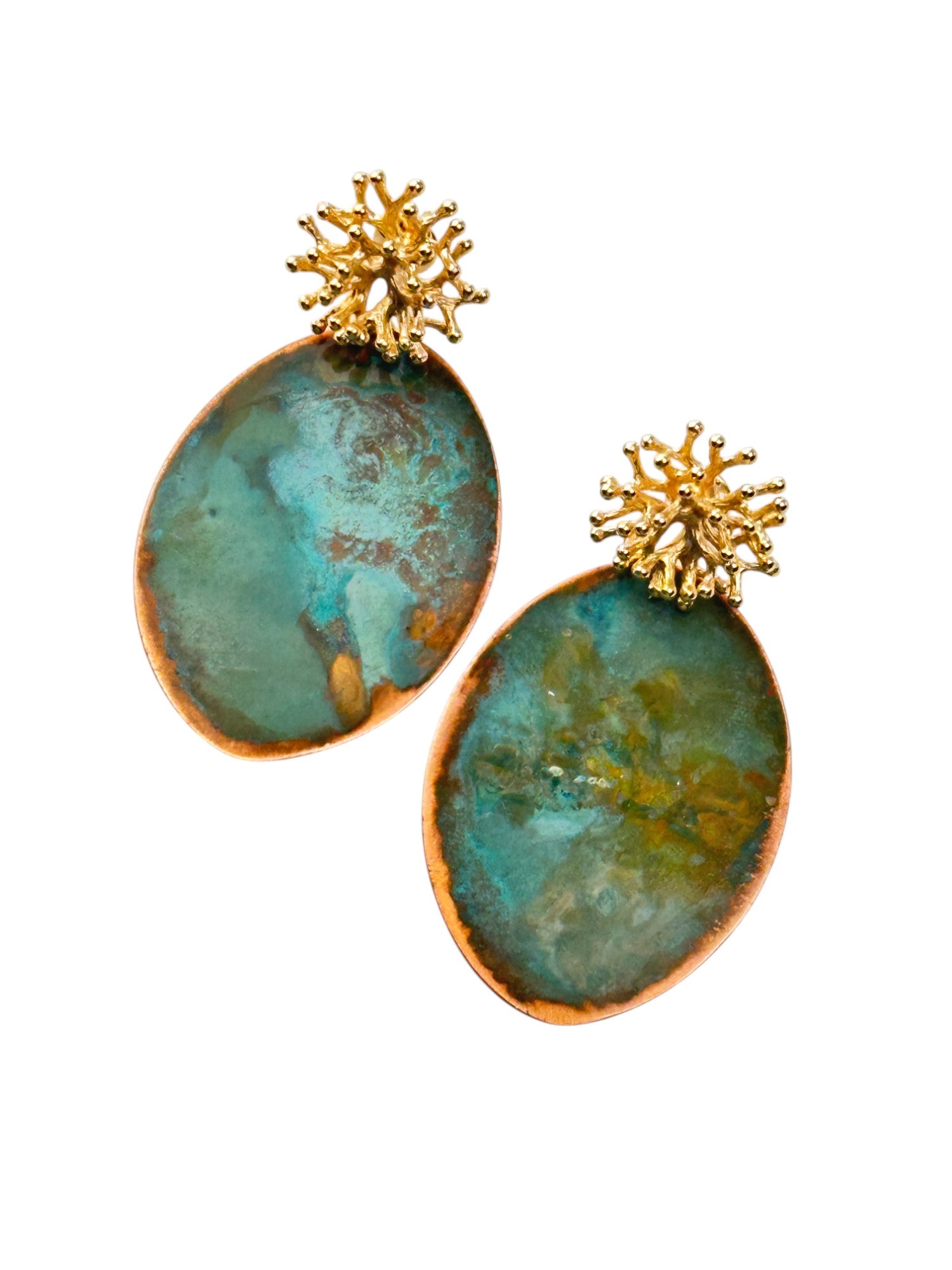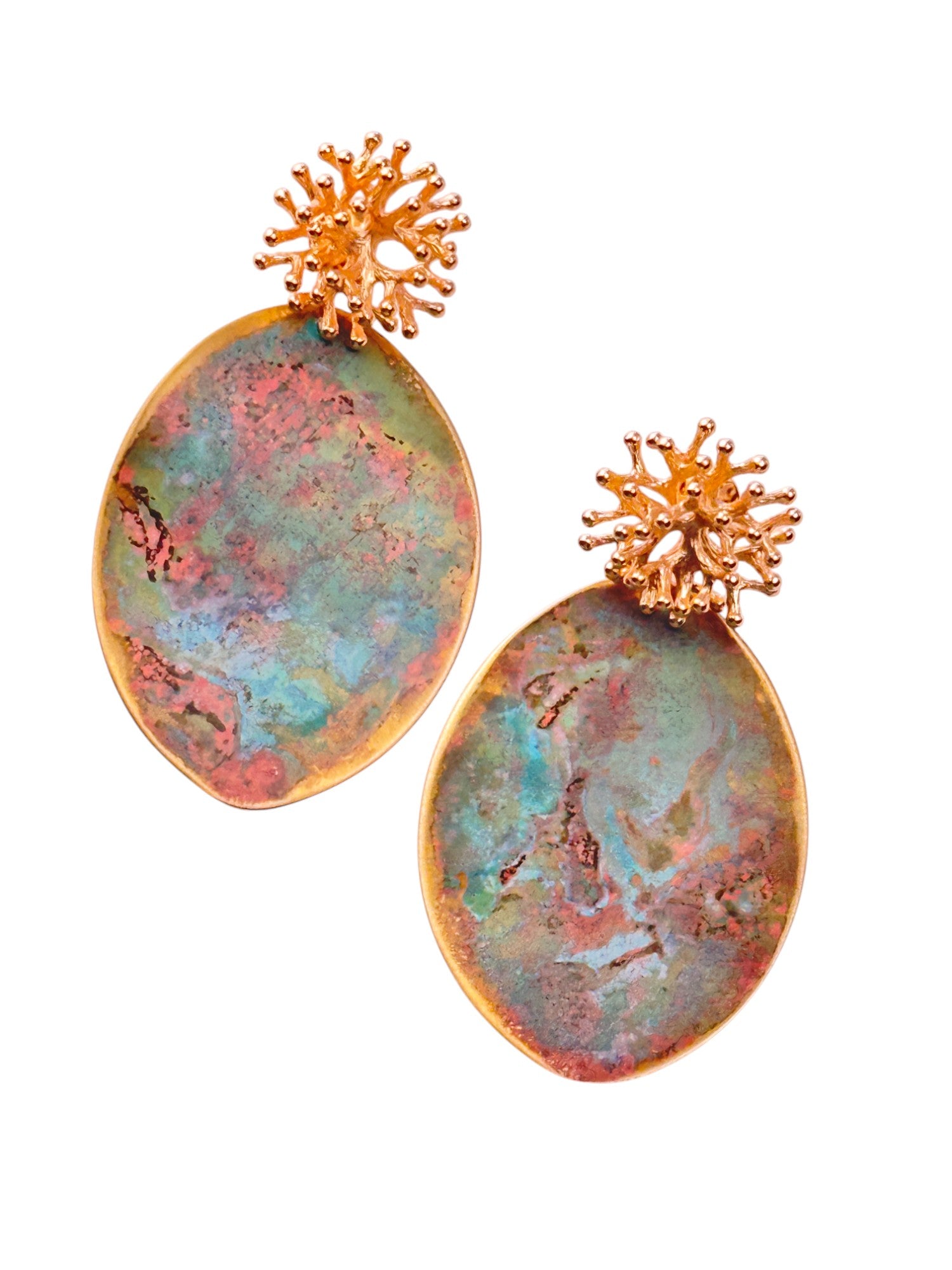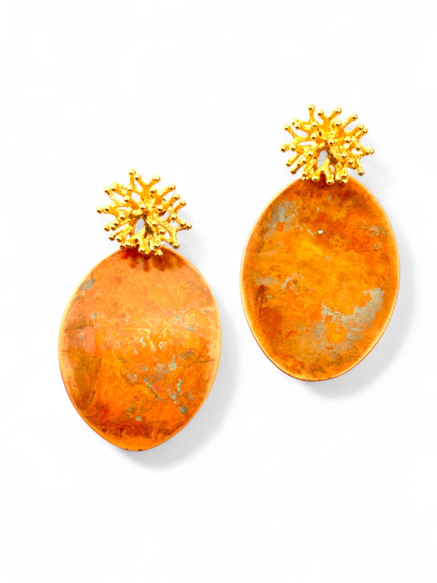 Brincos stud, Millepora grandes . Alongados, oxidados , com stud orgânico com banho de ouro.