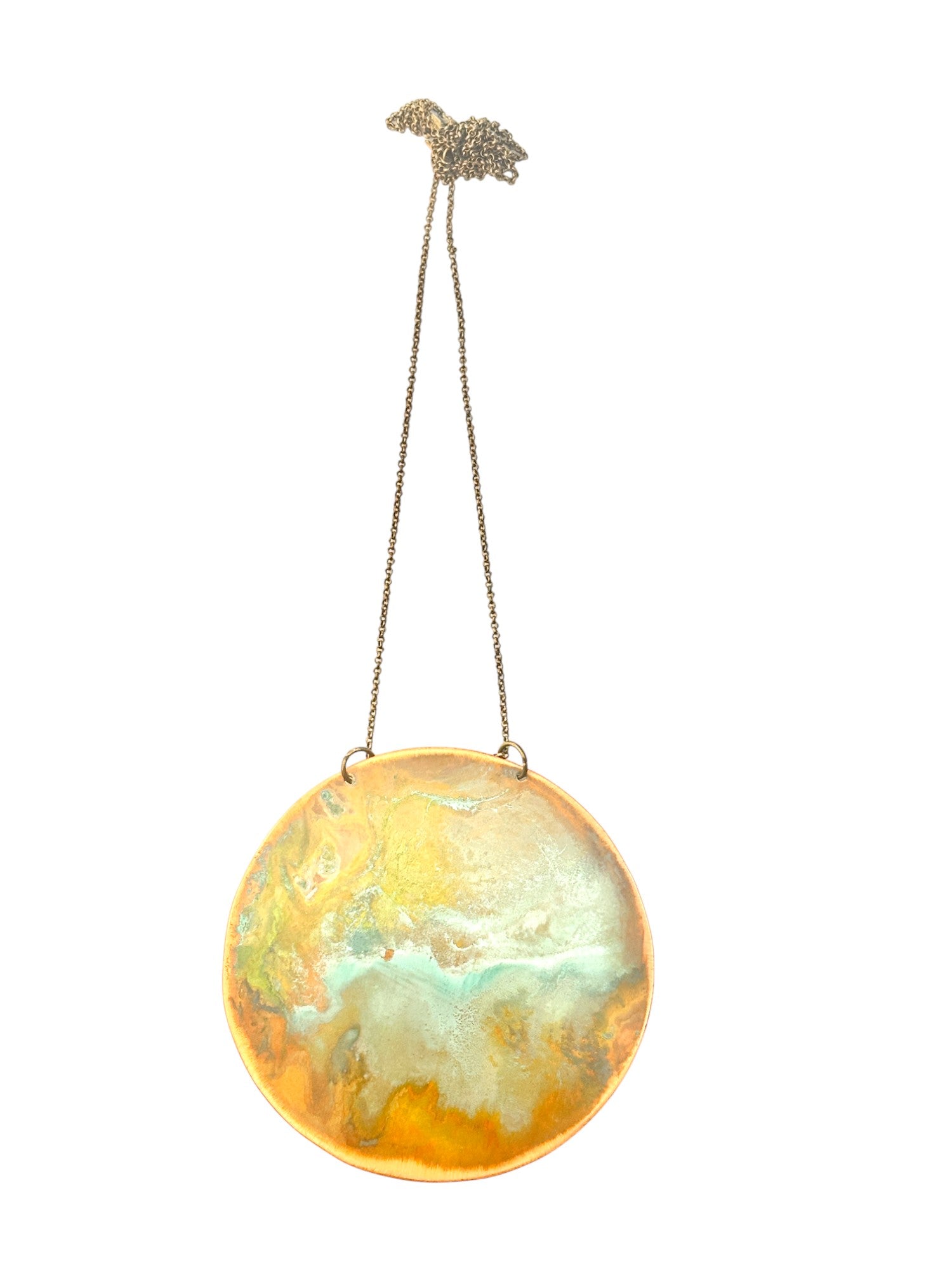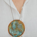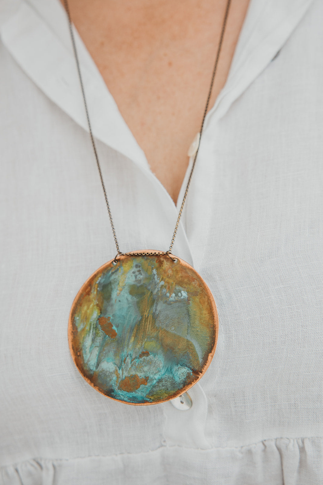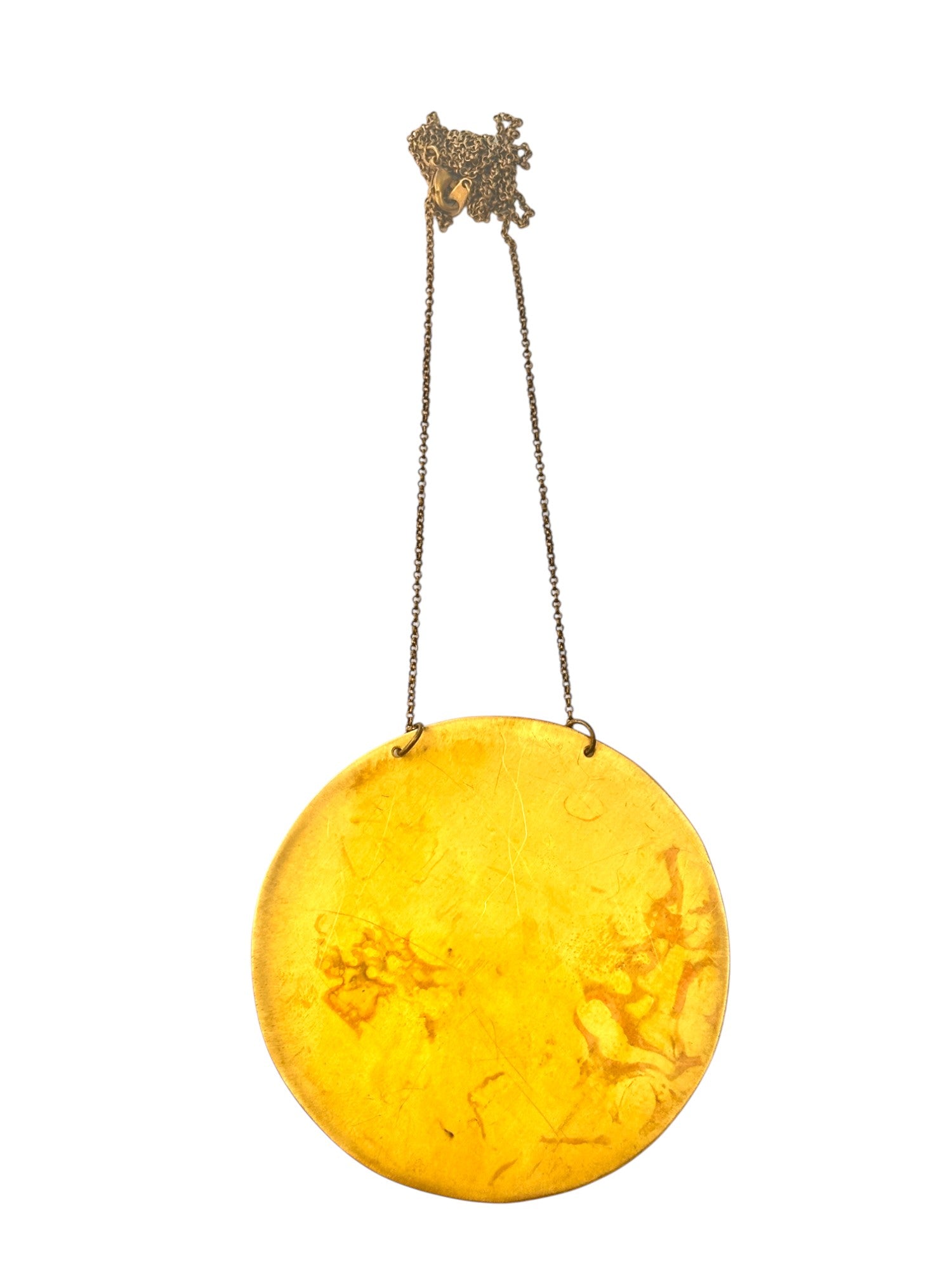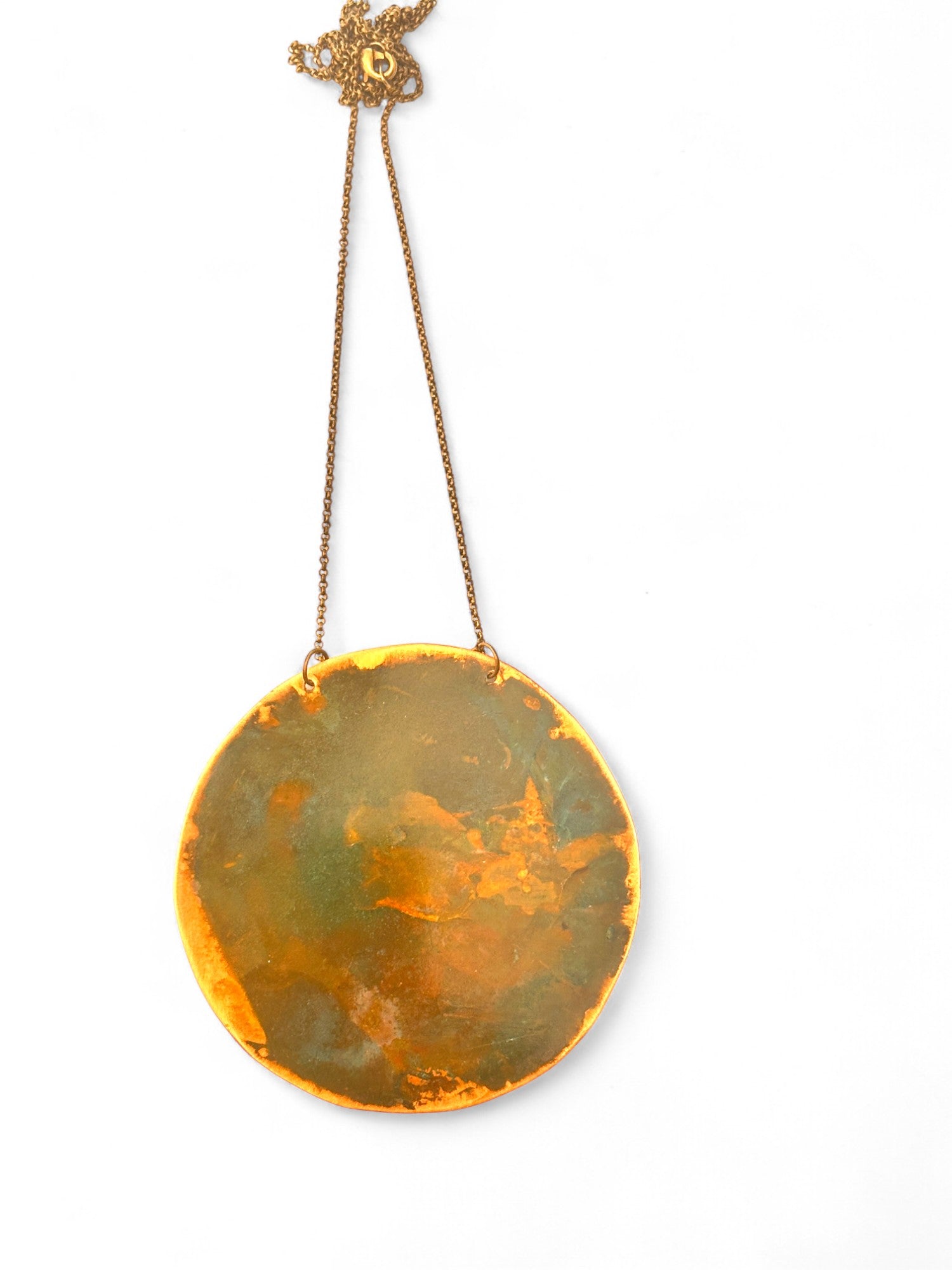 Colar com corrente de latão soldada de 70cm e disco maxi oxidado